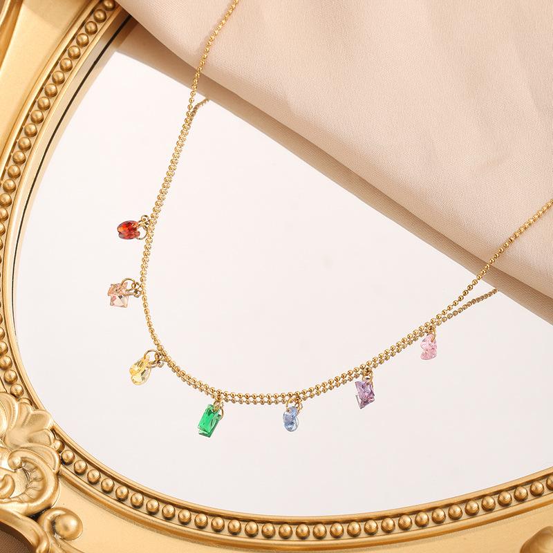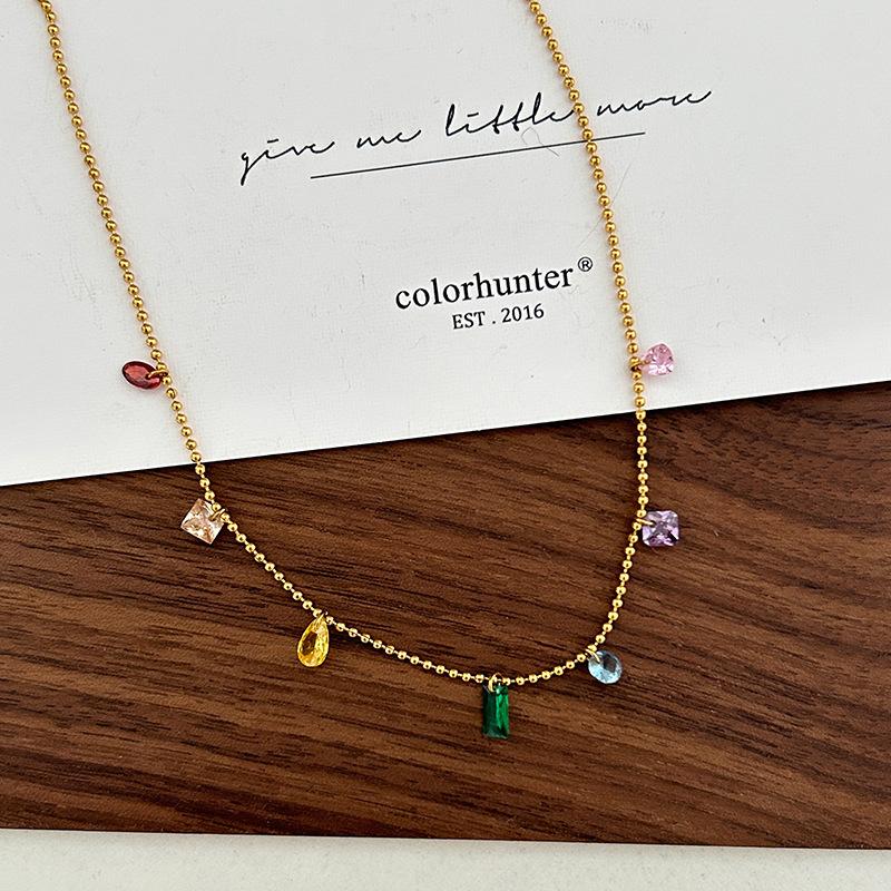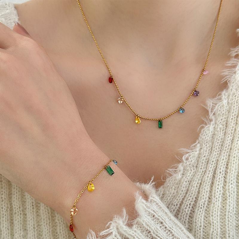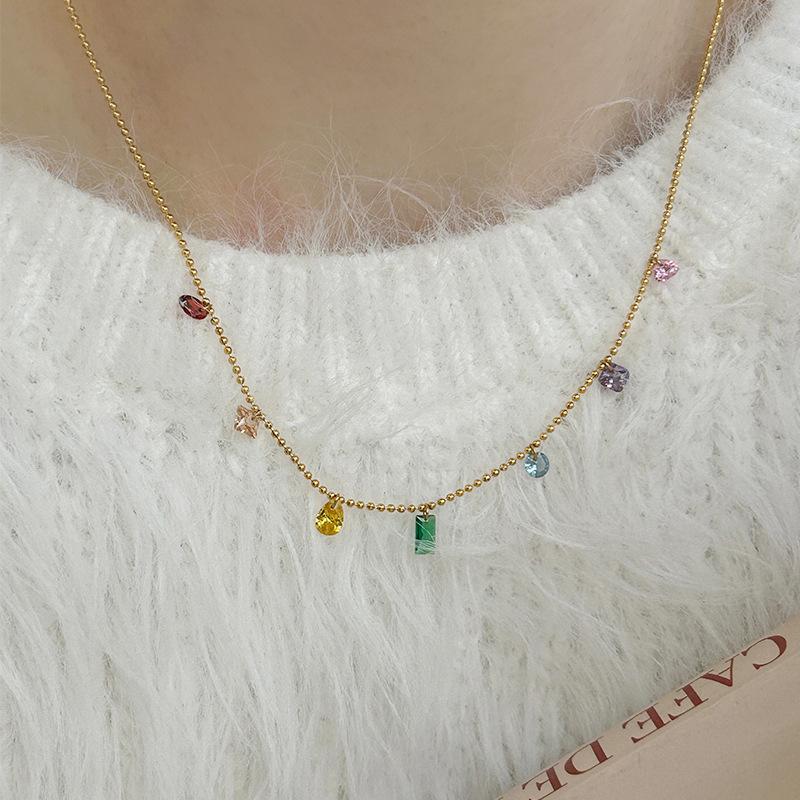 Dulce Fantasía Fresca Colorido Collar de Gema Colorida Diseño Nicho Femenino Super Brillante Moda para Niña Cadena Clavícula Combinable