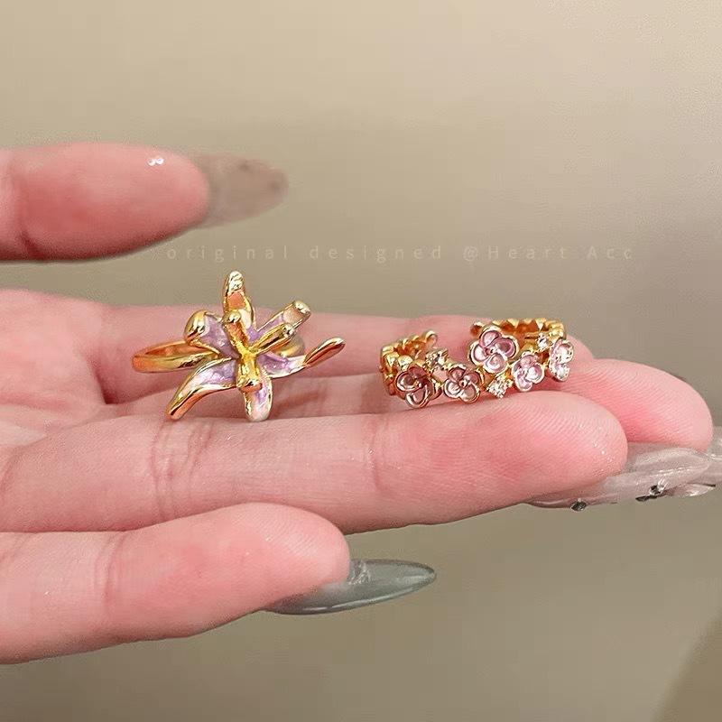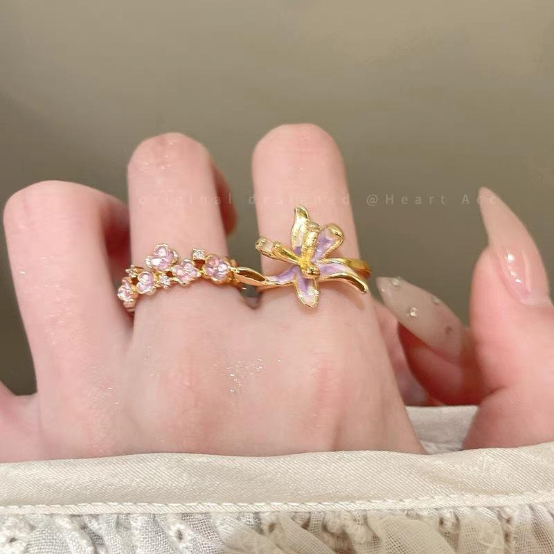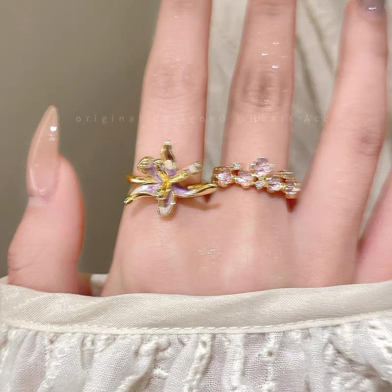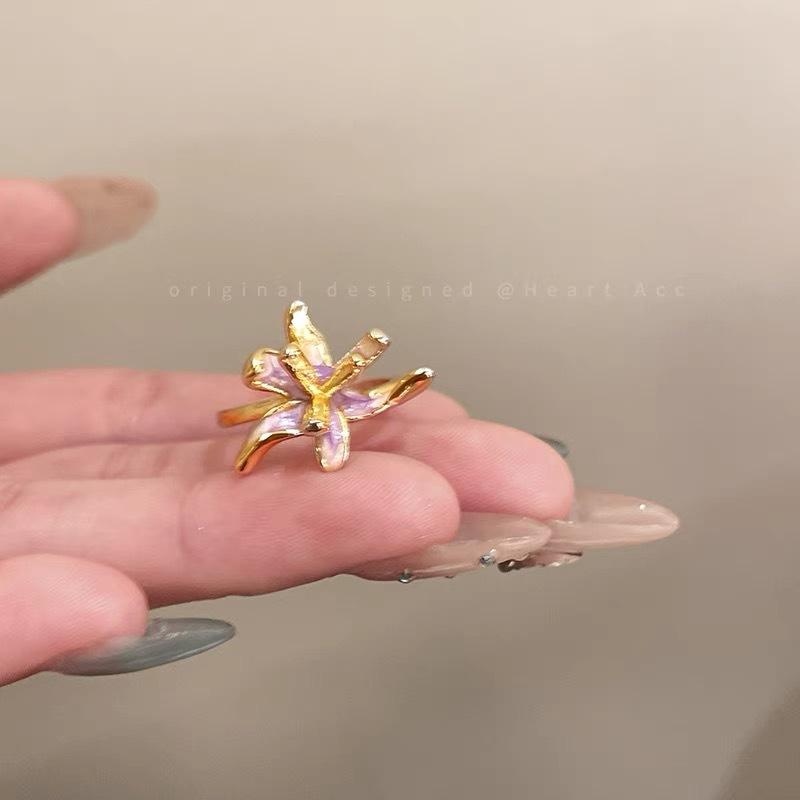 Anillo de Moda Estilo Francés Flor Cola de Oropéndola Gota de Esmalte Nicho Diseño Sentido Temperamento Personalidad Exquisito Lujo Ligero Retro Combinable