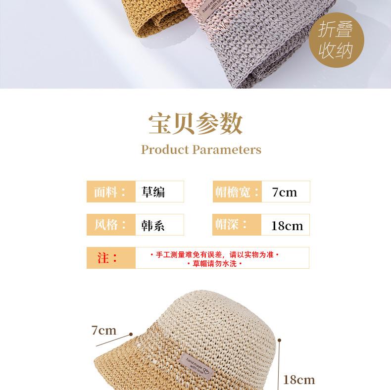 Sombrero de paja transpirable de estilo japonés para verano, ideal para vacaciones en la playa, con protección solar, de pescador, plegable, para mujer.