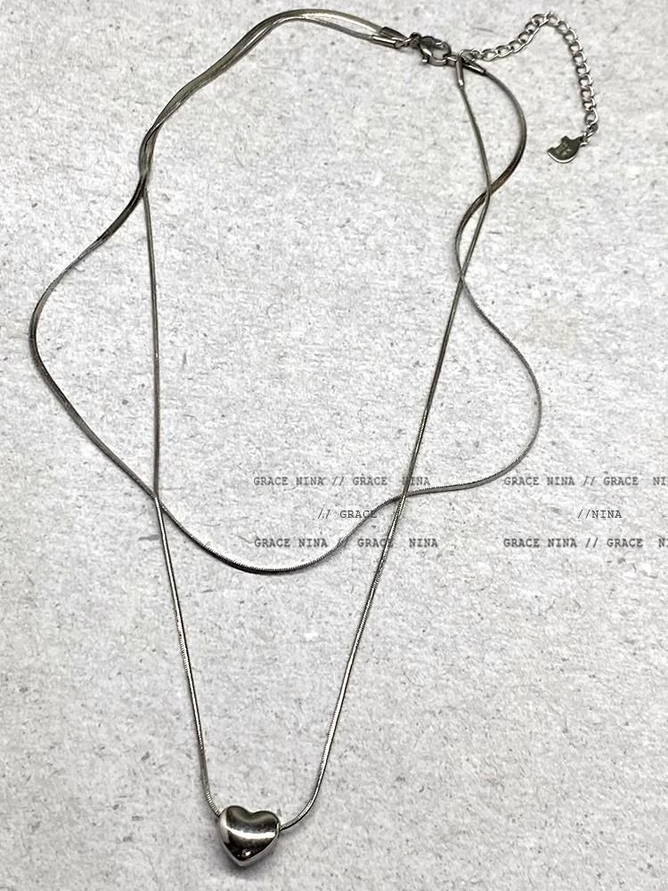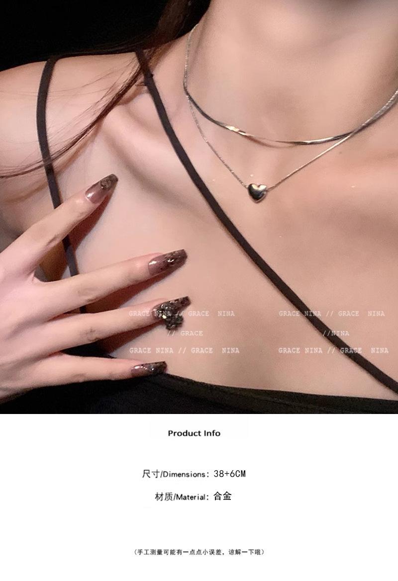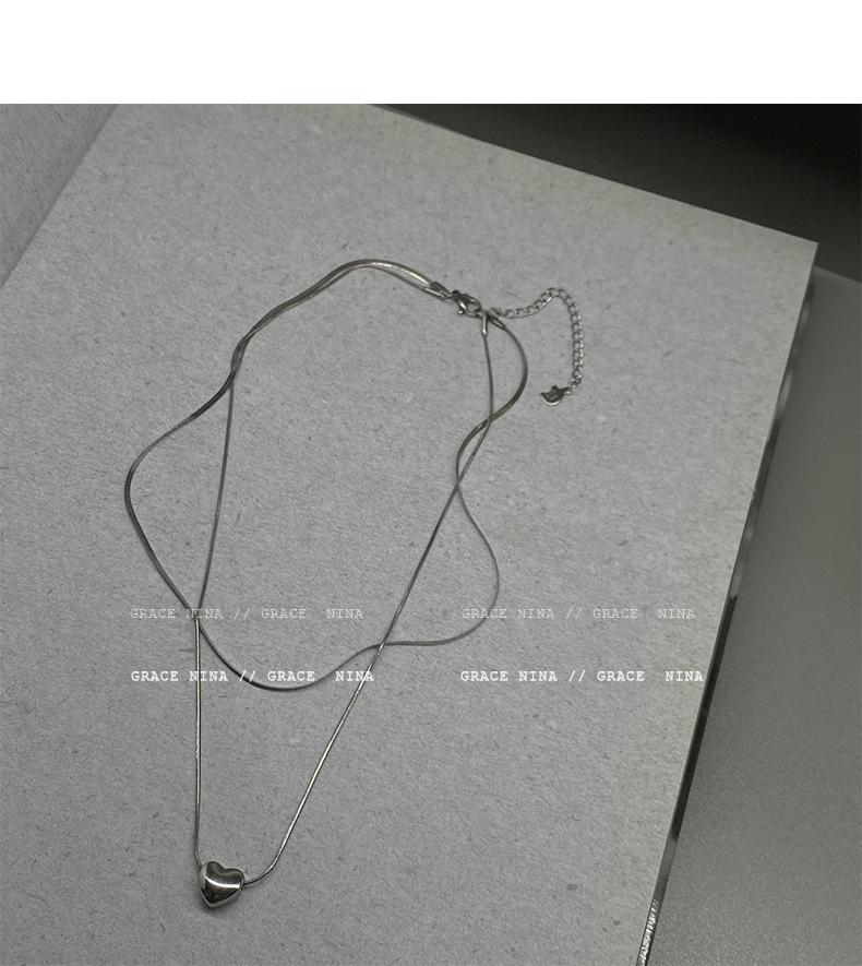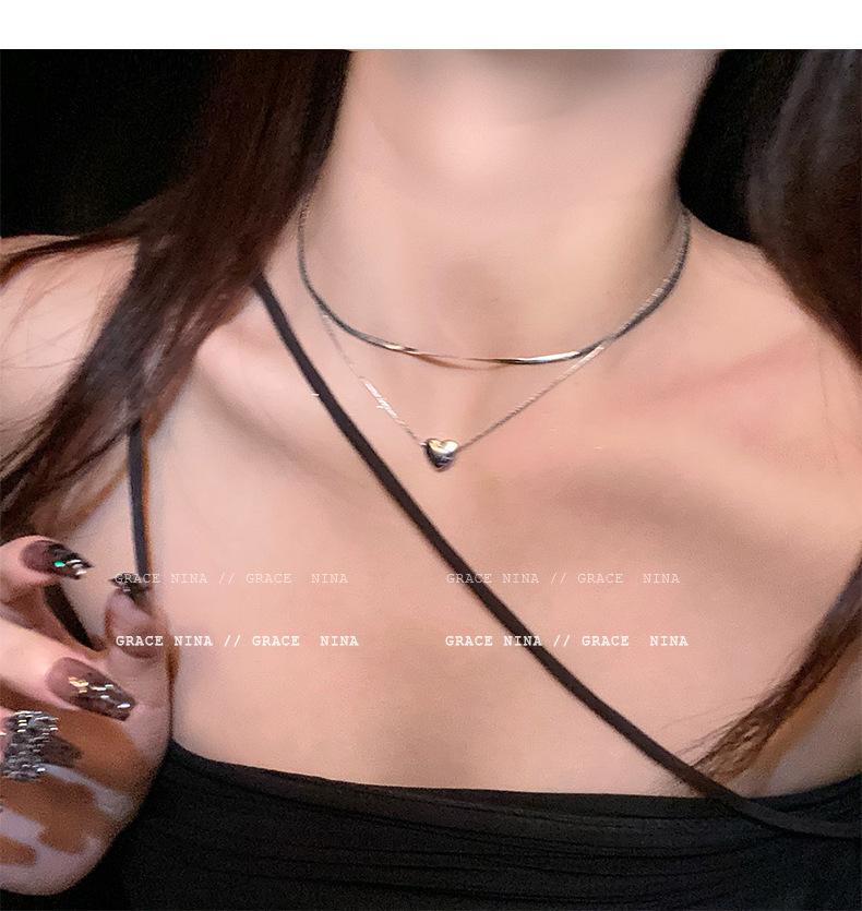 Collar de corazón plateado de doble capa estilo frío para mujer diseño nicho de lujo ligero apilamiento cadena clavícula accesorios temperamento chica caliente