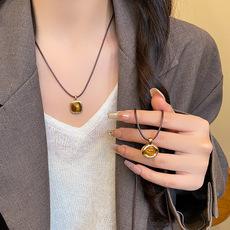 Collar con colgante de piedra ojo de tigre de imitación Maillard para mujer, lujo ligero de alta gama, cadena larga para suéter, accesorios retro de moda para otoño e invierno