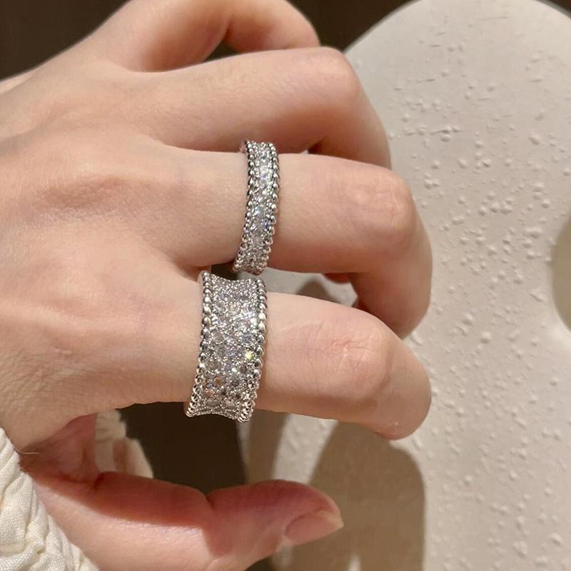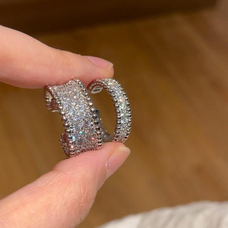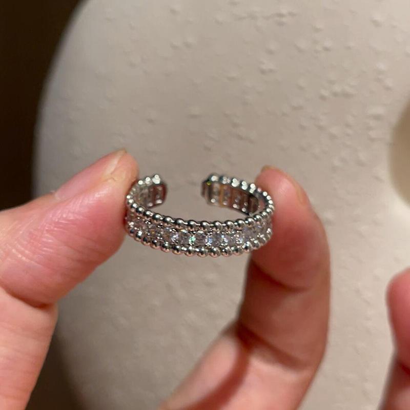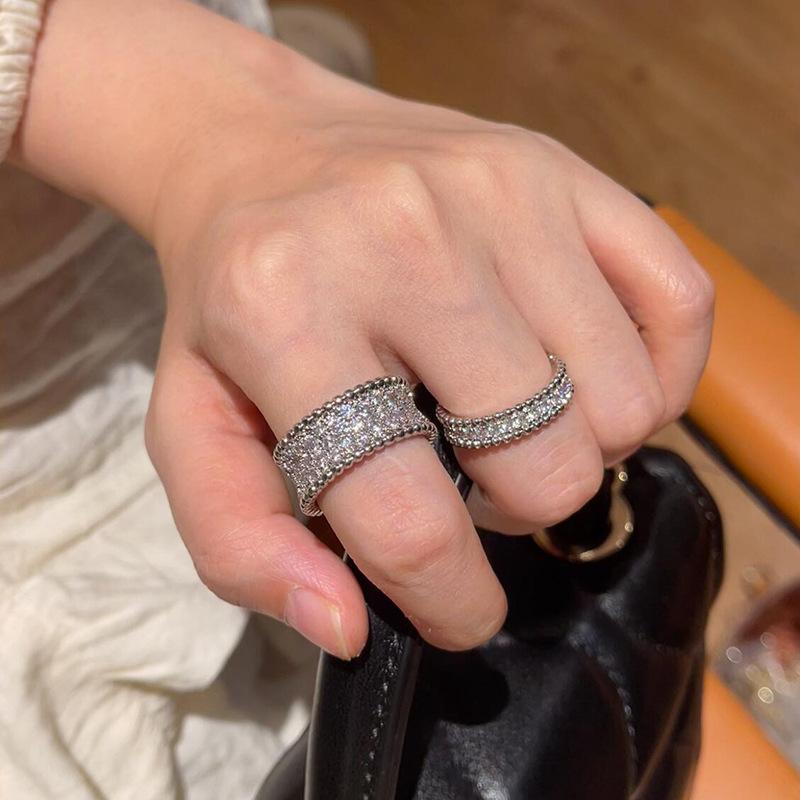 Anillo de Circonita Estilo Nuevo Europeo y Americano para Mujer, Lujo Ligero, Moda, Borde de Cuentas, Abierto Ajustable, Anillo de Dedo Ginestar Personalizado