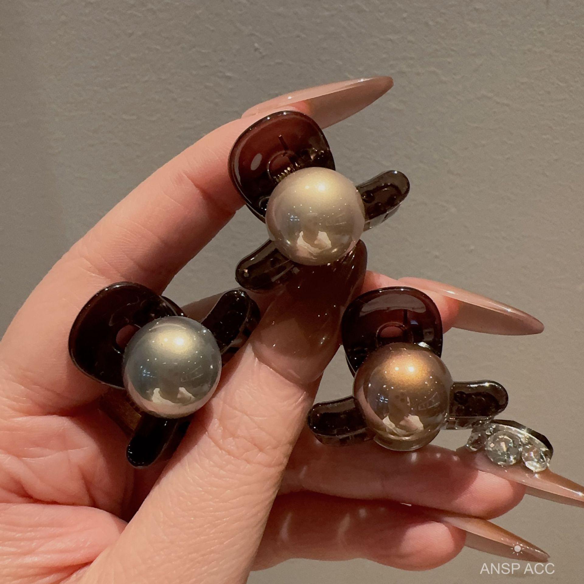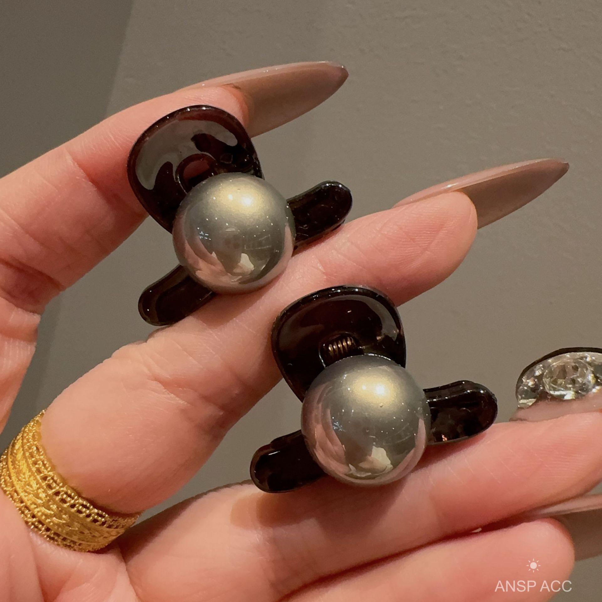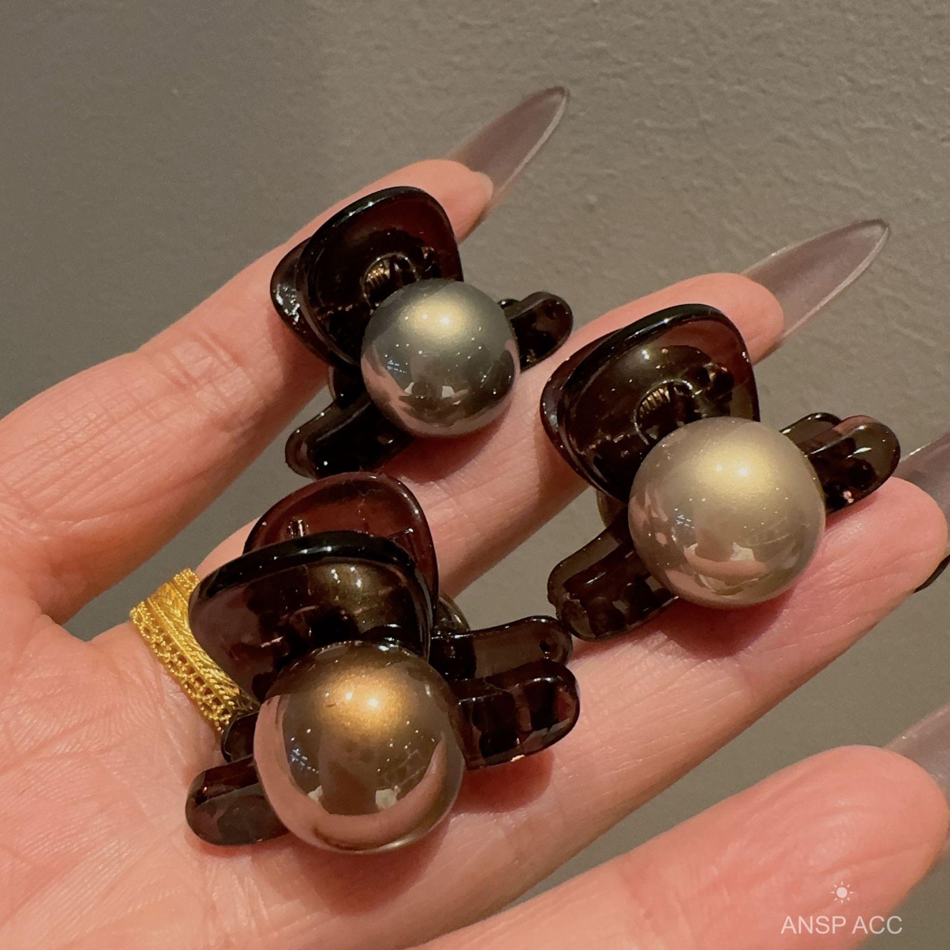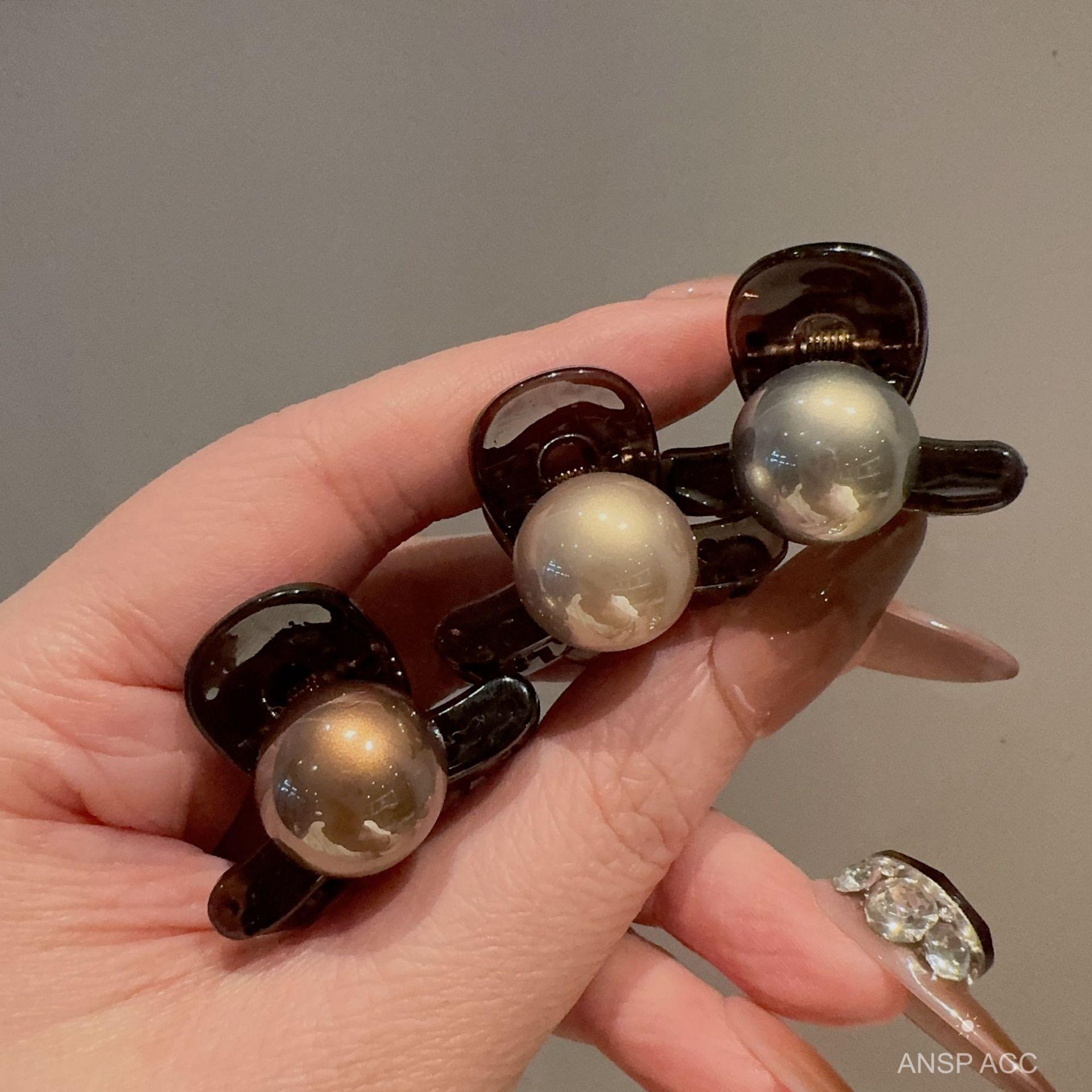 2024 Nuevo Mini Clip Perla Reflejo Marrón Grisáceo Estilo Coreano Moda Pequeño Casual Más Fácil de Combinar Clip para Flequillo