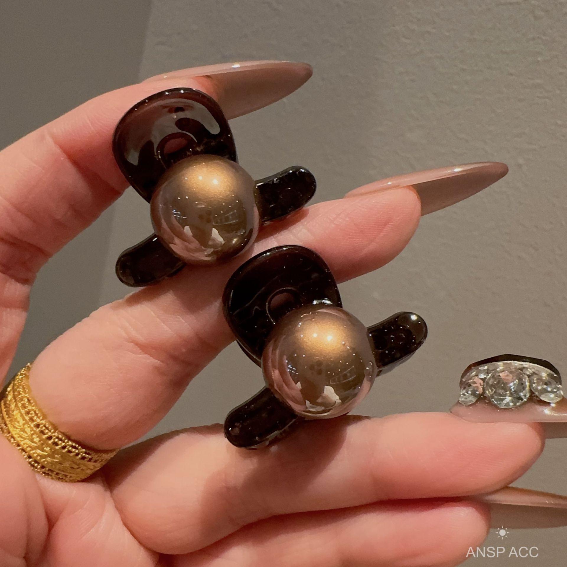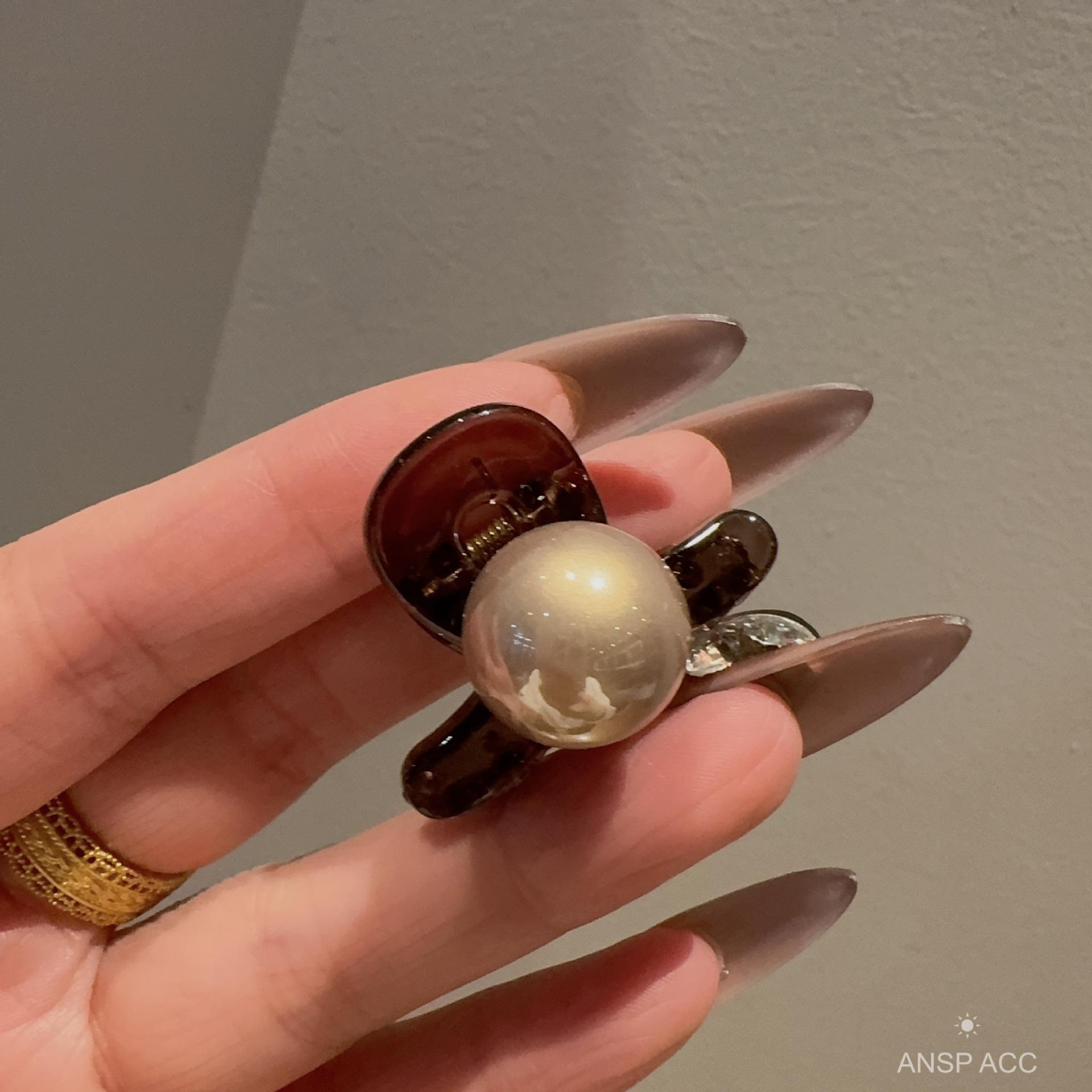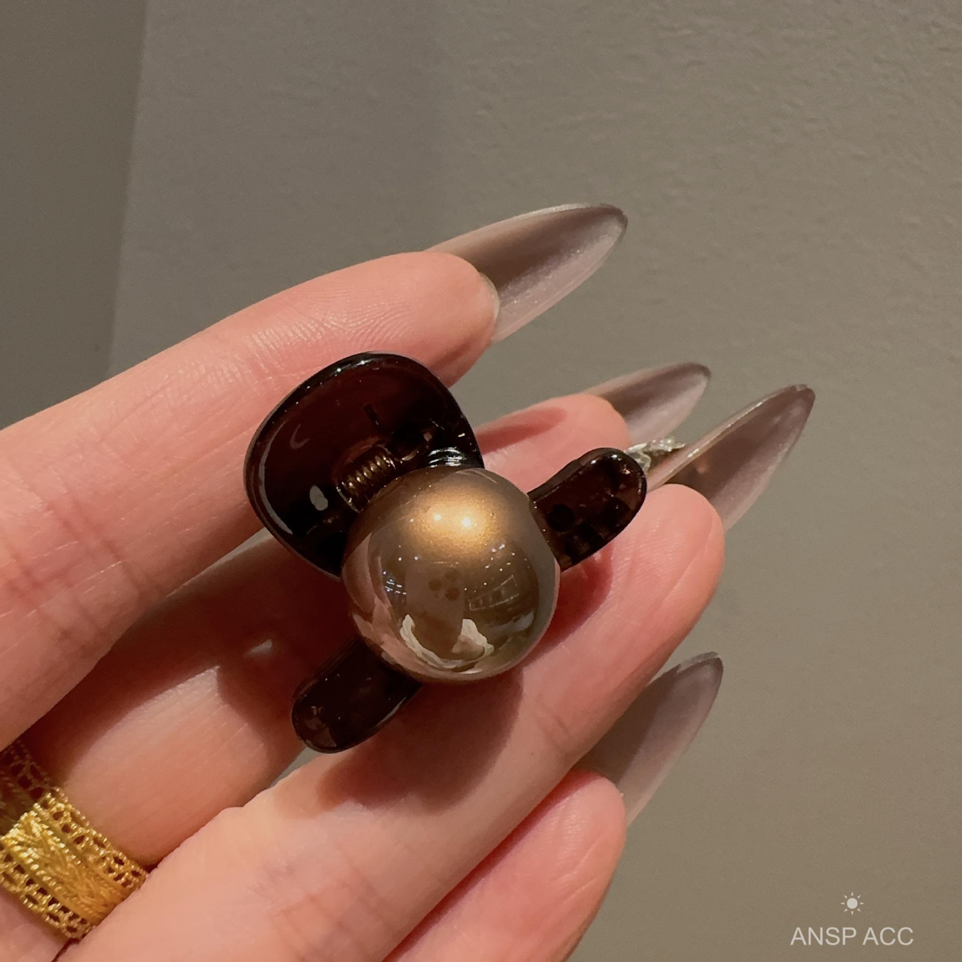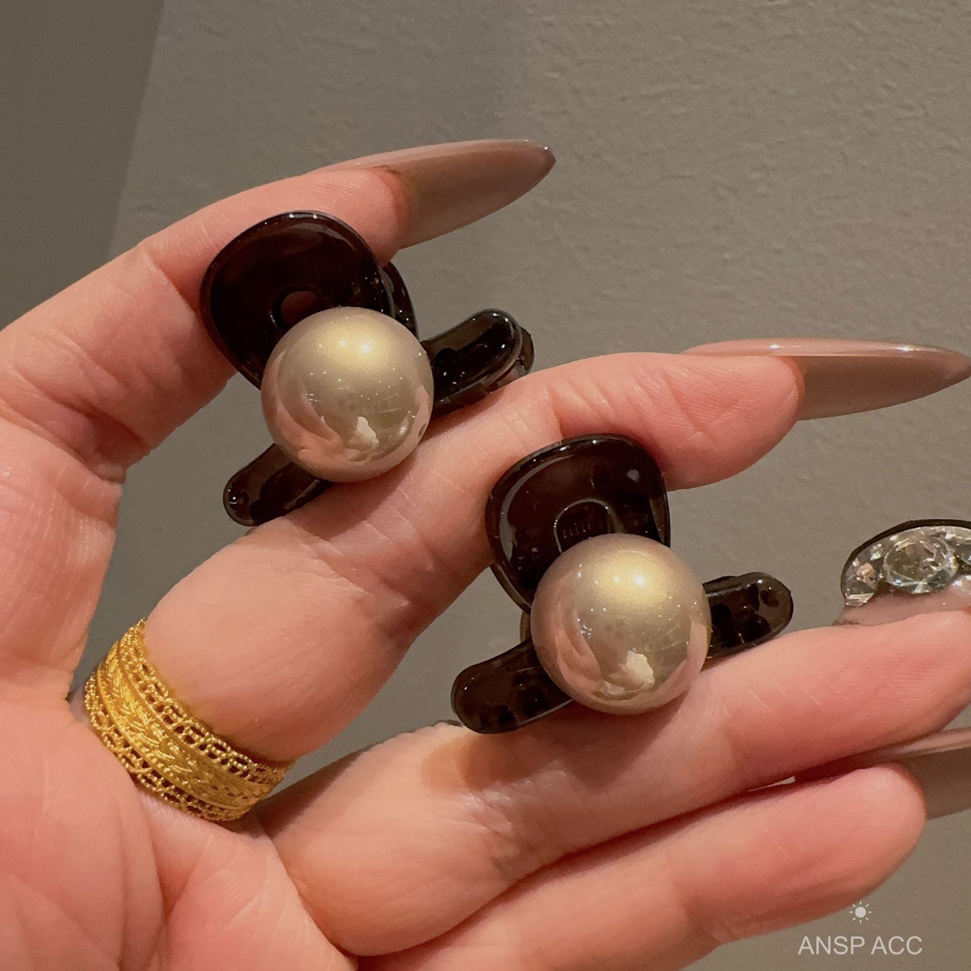 2024 Nuevo Mini Clip Perla Reflejo Marrón Grisáceo Estilo Coreano Moda Pequeño Casual Más Fácil de Combinar Clip para Flequillo