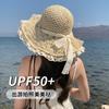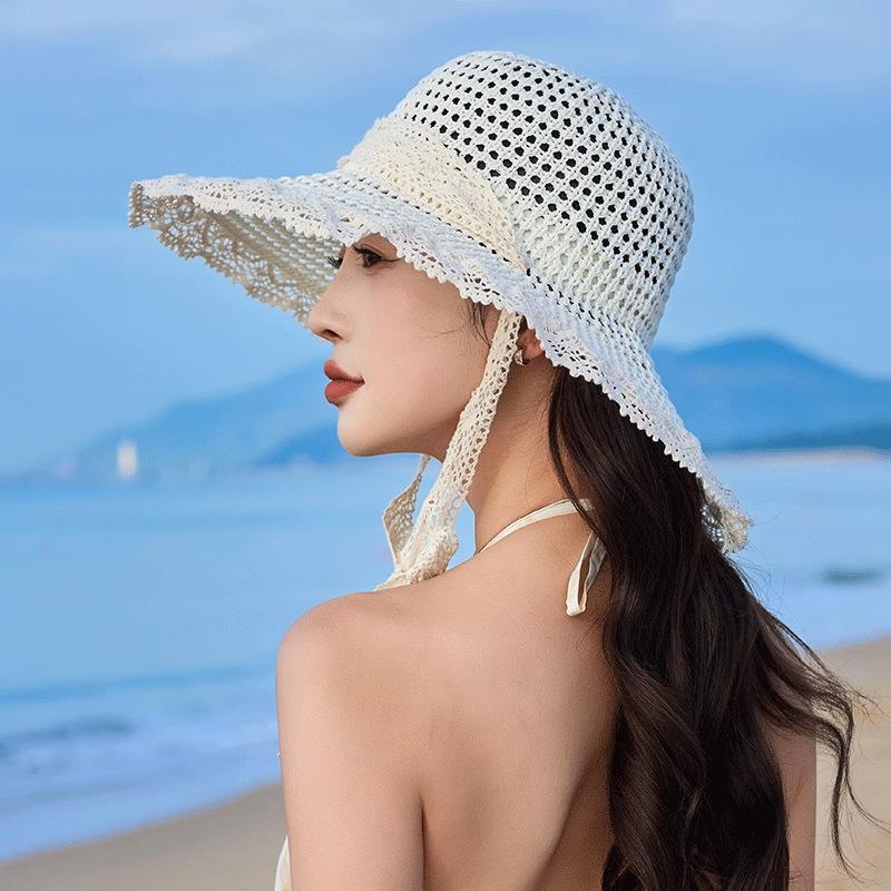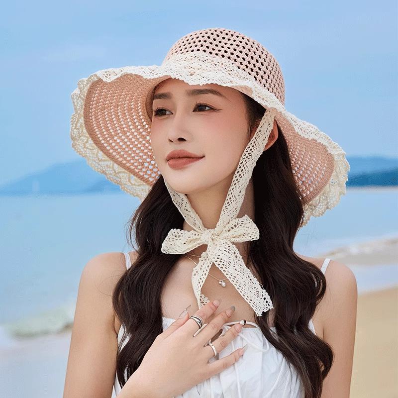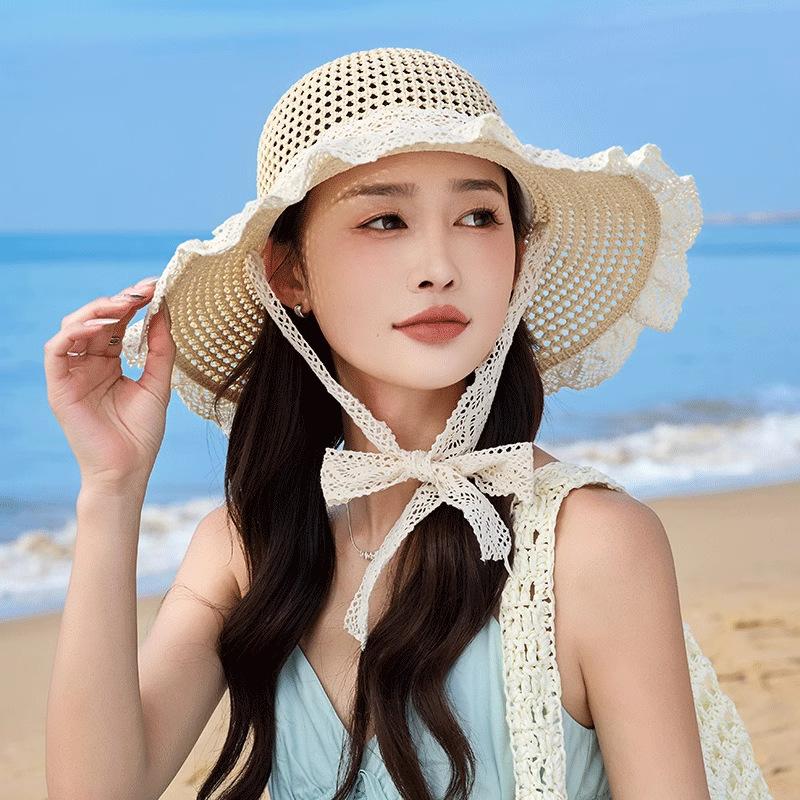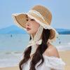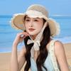 2025 Nuevo Sombrero de Paja con Cordones de Paja Calado para Mujer Sombrero de Sol de Verano para Viaje Playa Orilla del Mar Sombrero de Sol