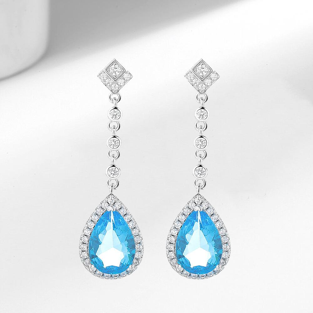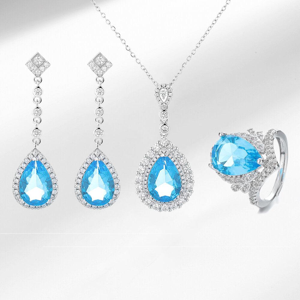 Anillo, collar y pendientes de moda europea y americana con temperamento natural de aguamarina, traje de circonita cúbica, el más vendido, joyería para mujer