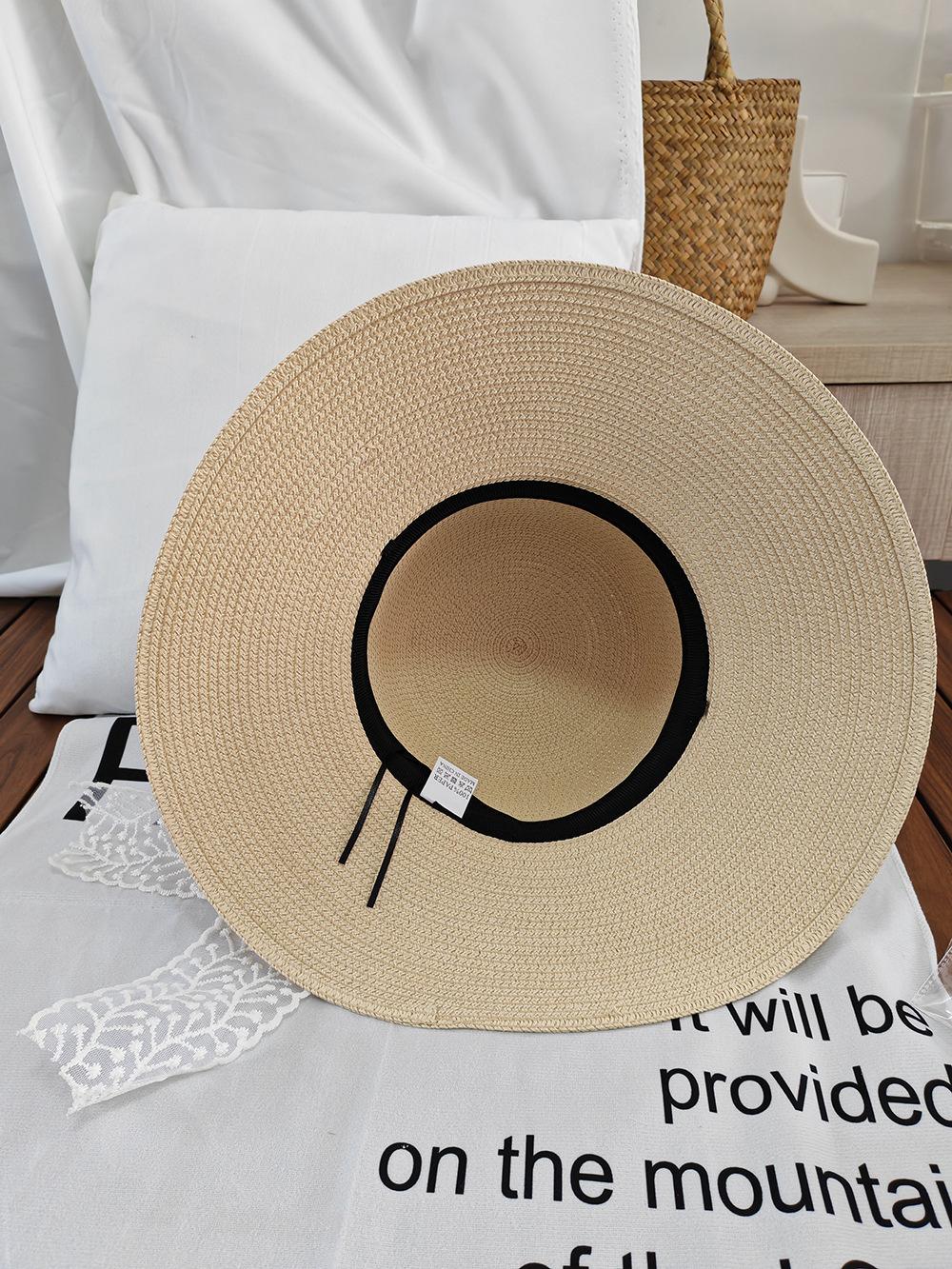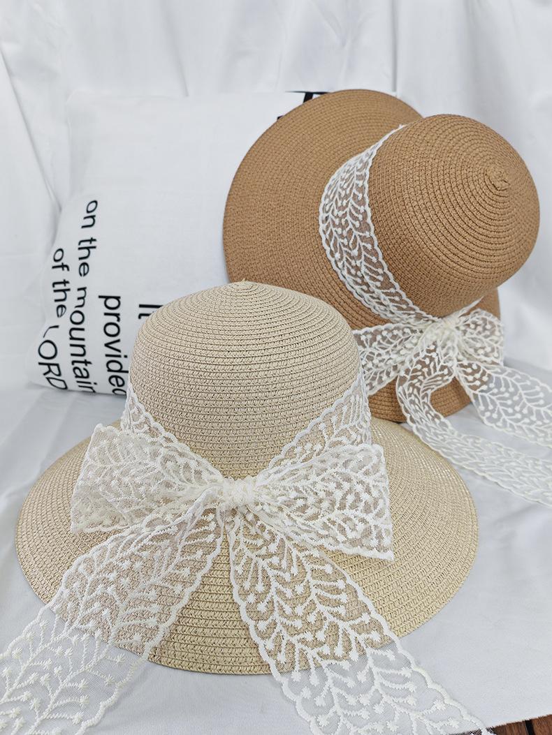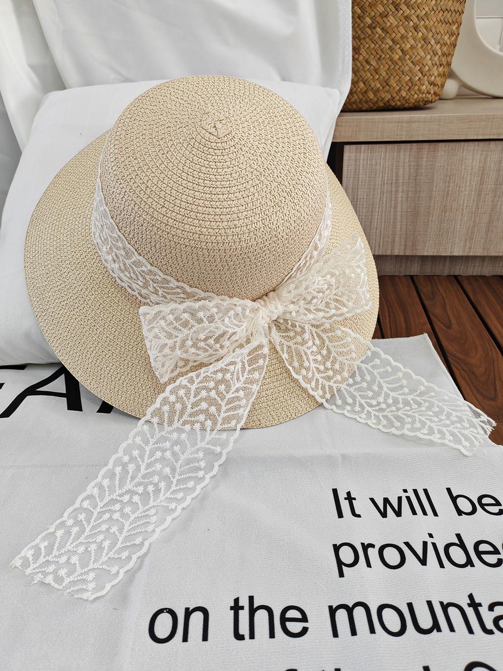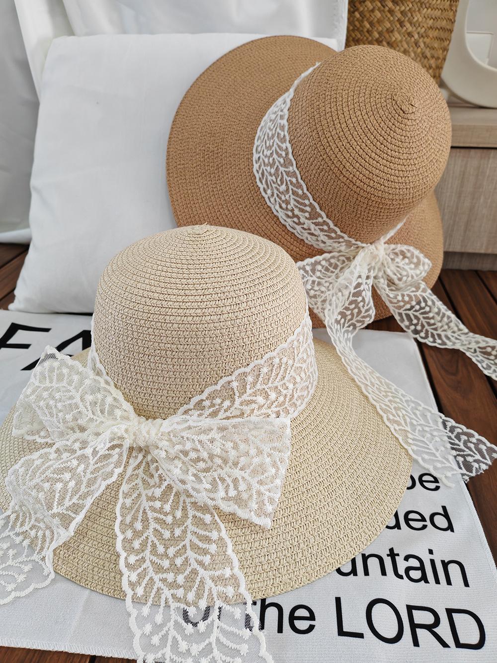 Sombrero de Paja Nuevo 2024 para Mujer de Ala Ancha Sombrilla de Playa Sombrero de Playa de Moda Combinable Lazo de Encaje Sombrero para el Sol