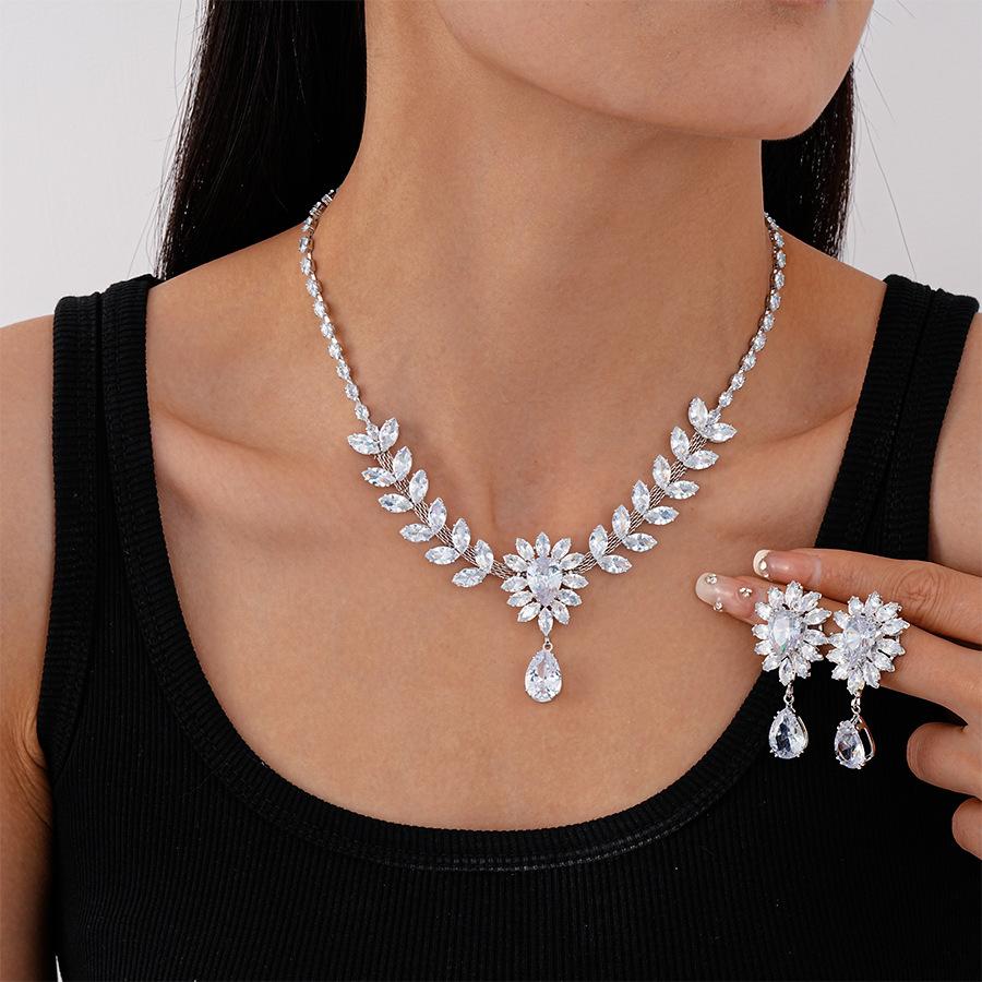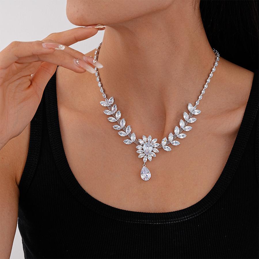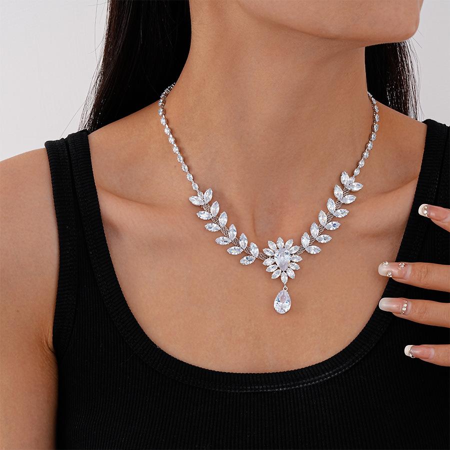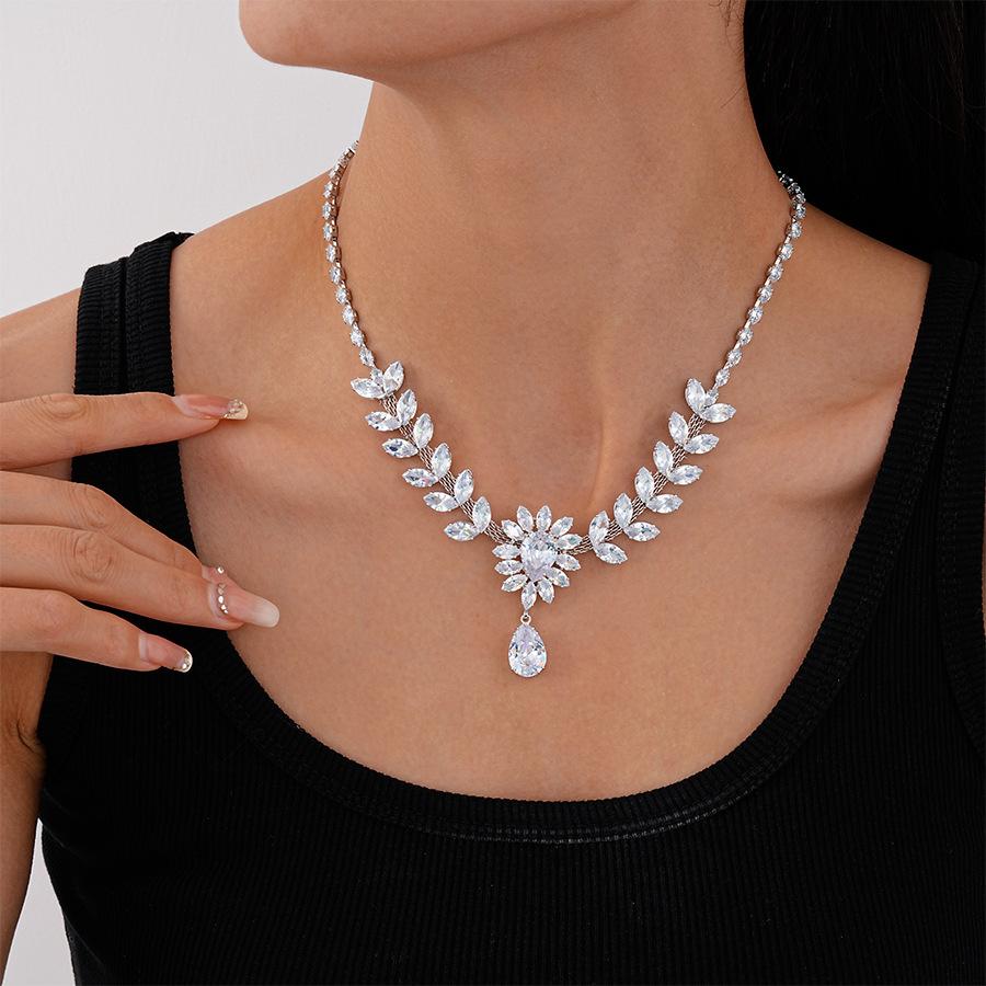 Collar con colgante de gota de agua y flor de oreja de trigo con circonita europea y americana, moderno, de lujo, elegante y de alta gama para mujer.