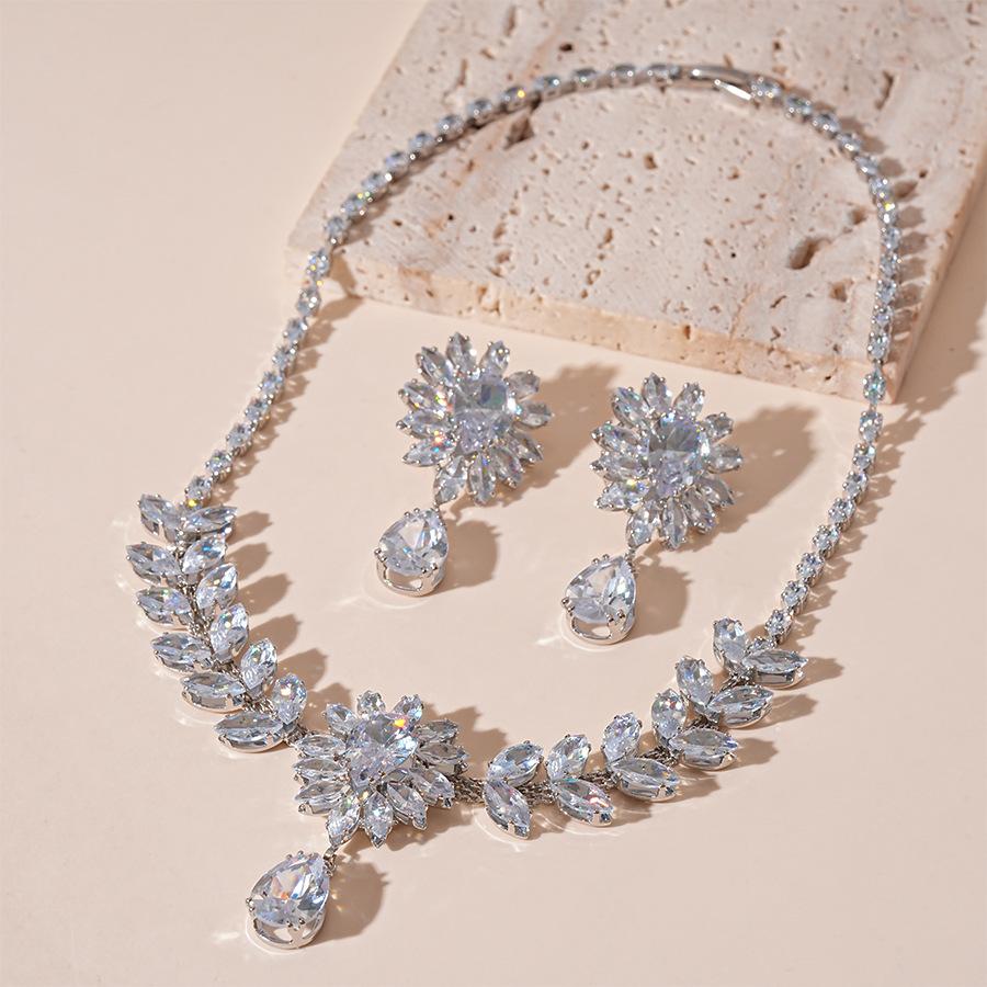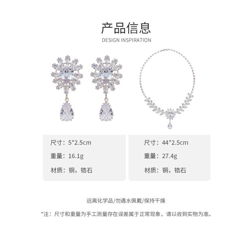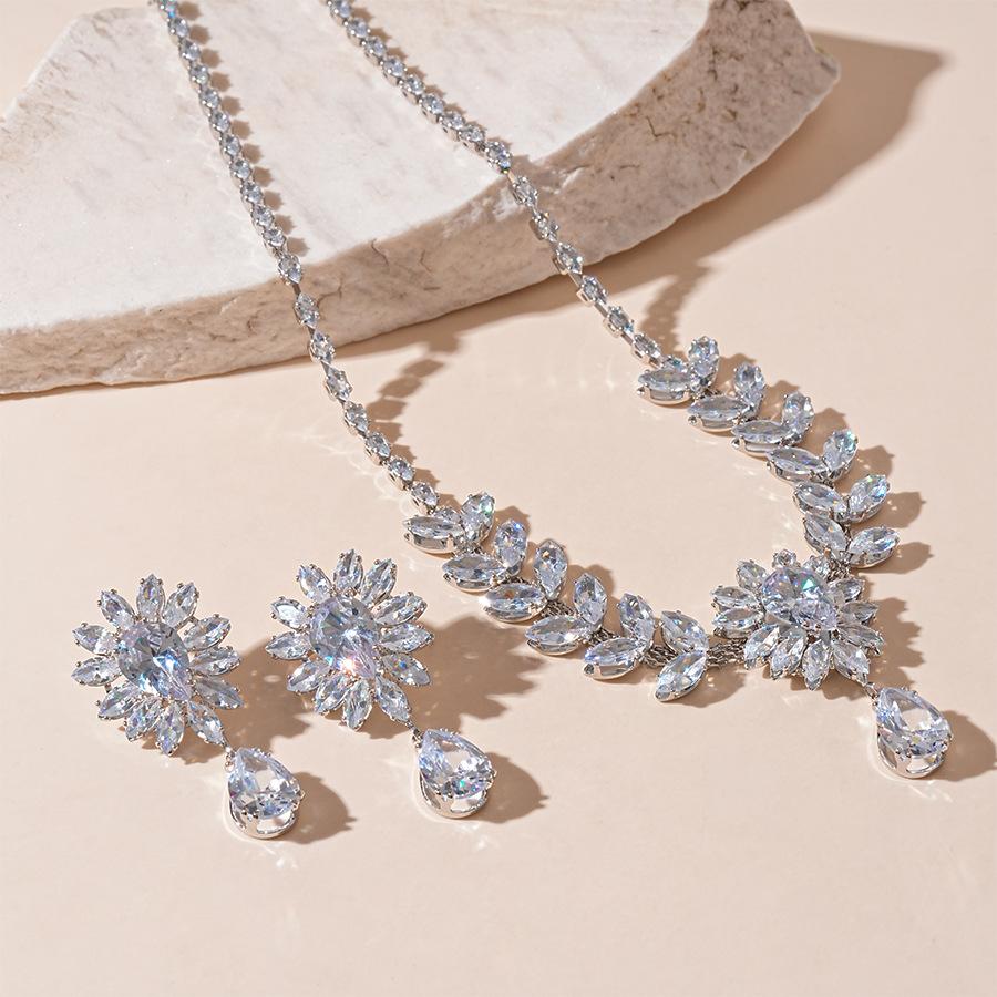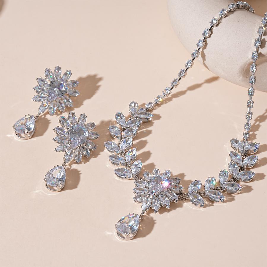 Collar con colgante de gota de agua y flor de oreja de trigo con circonita europea y americana, moderno, de lujo, elegante y de alta gama para mujer.
