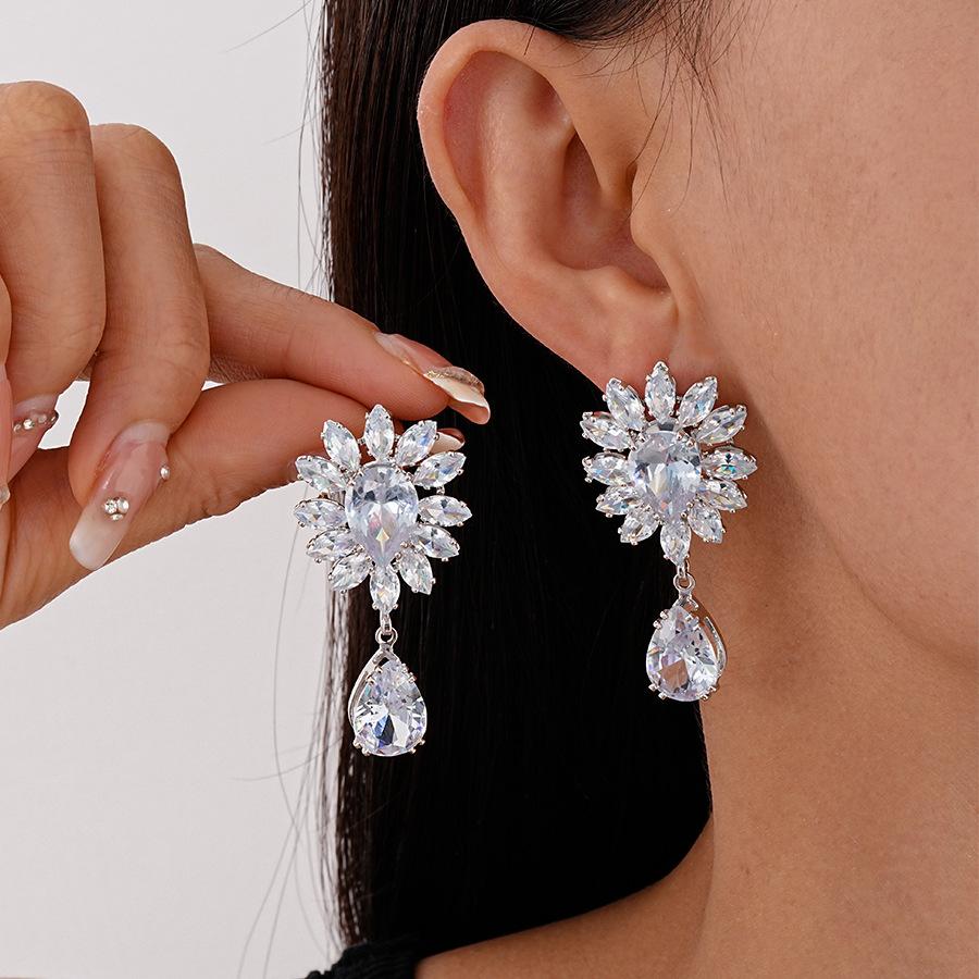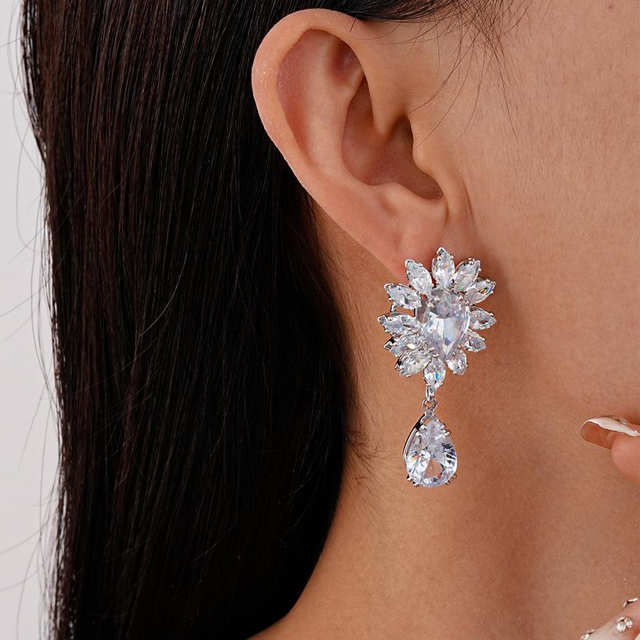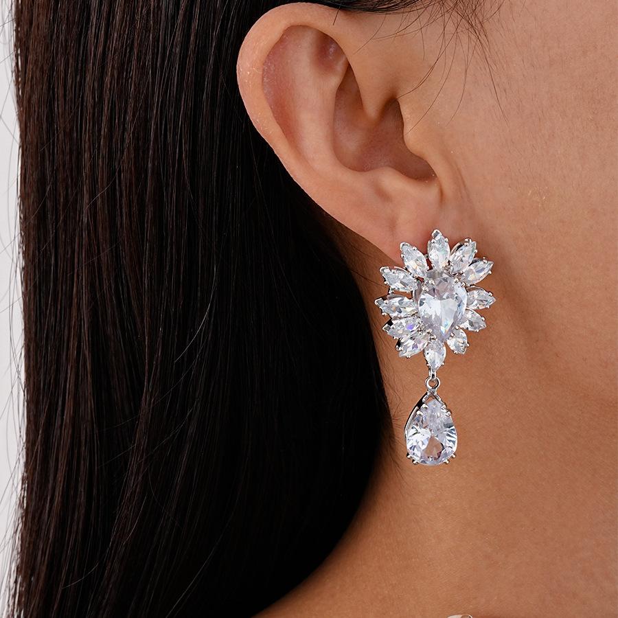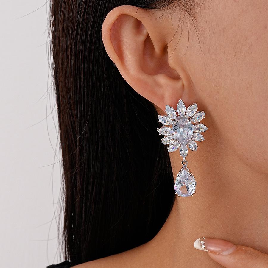 Silver-silver zircon drop earrings
