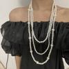 Collar de cadena para clavícula con perlas de cristal artificial dorado de alta calidad, estilo retro Guofeng, redondo y brillante