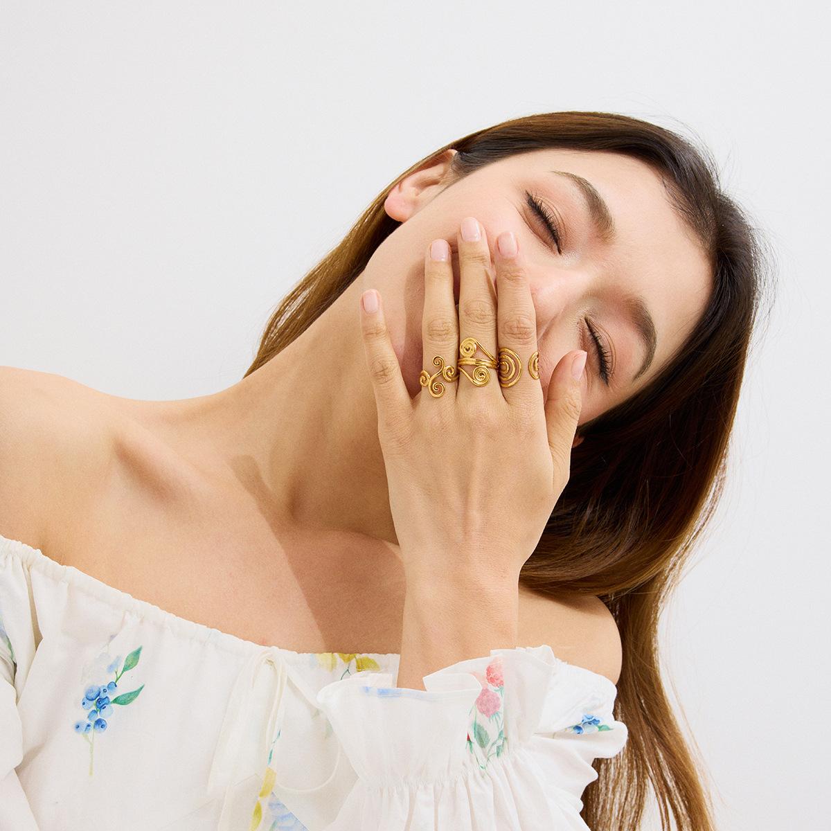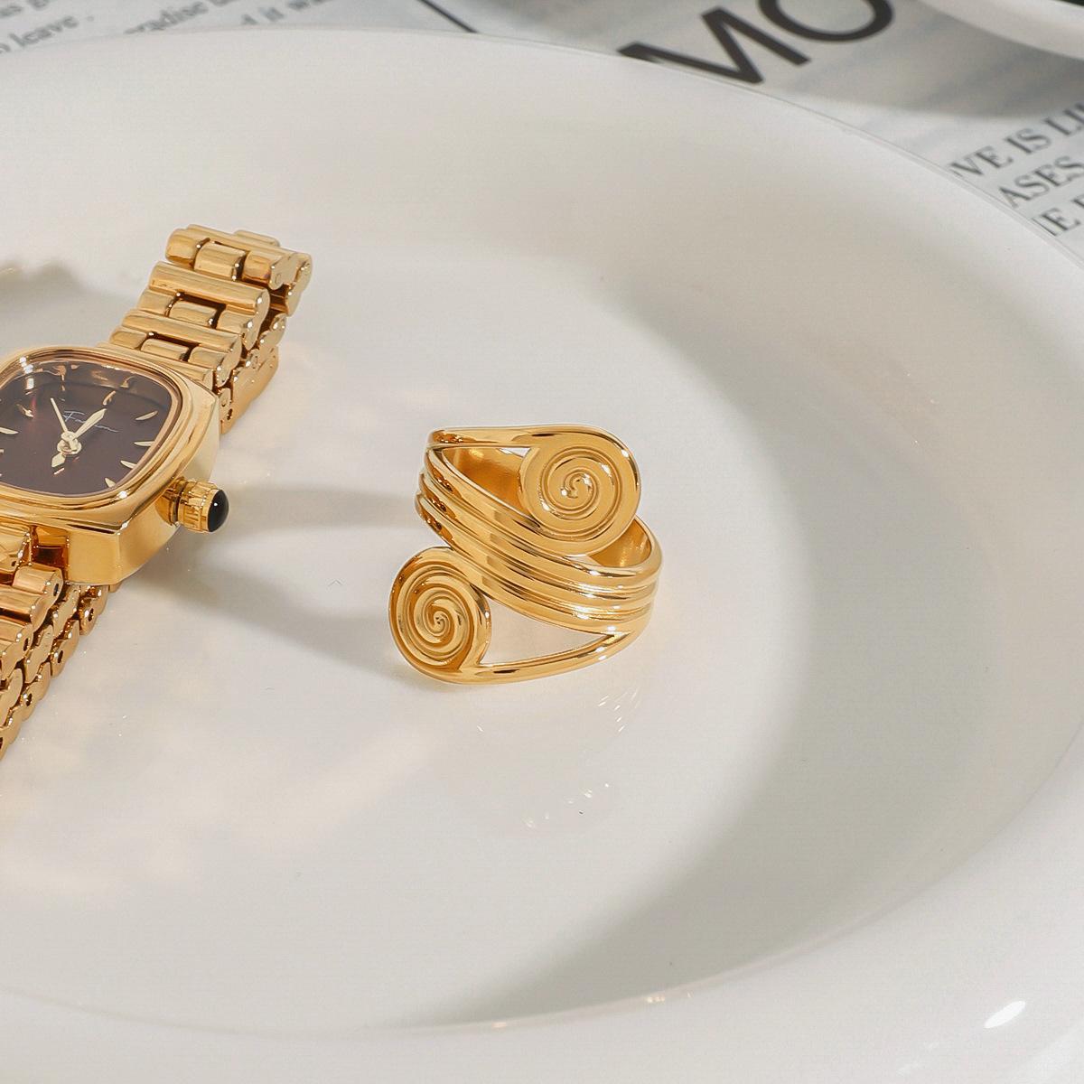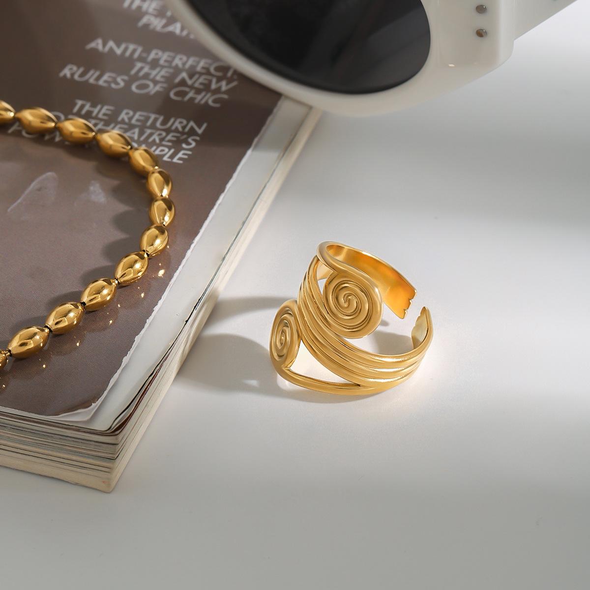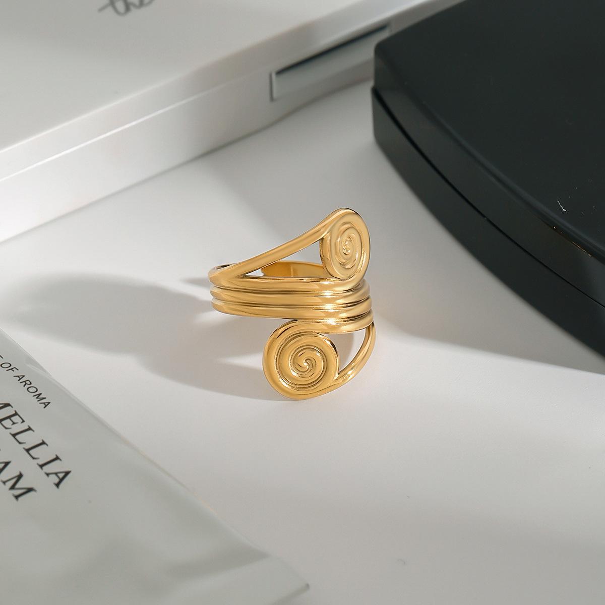 Jieding Anillo espiral europeo y americano acero de titanio joyería que no se desvanece lujo ligero joyería de alta gama anillos de acero inoxidable transfronterizo