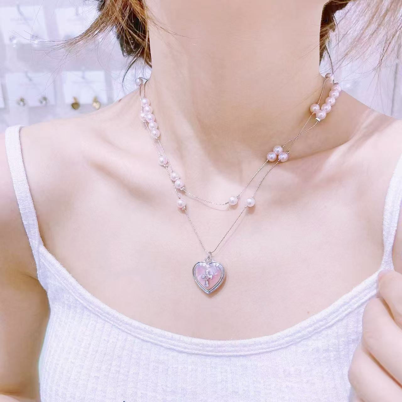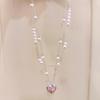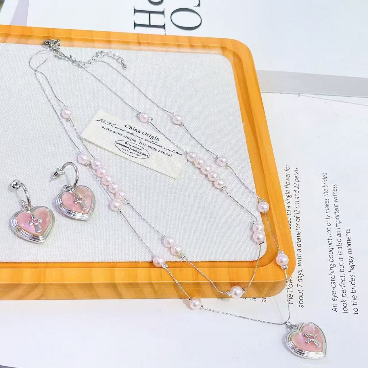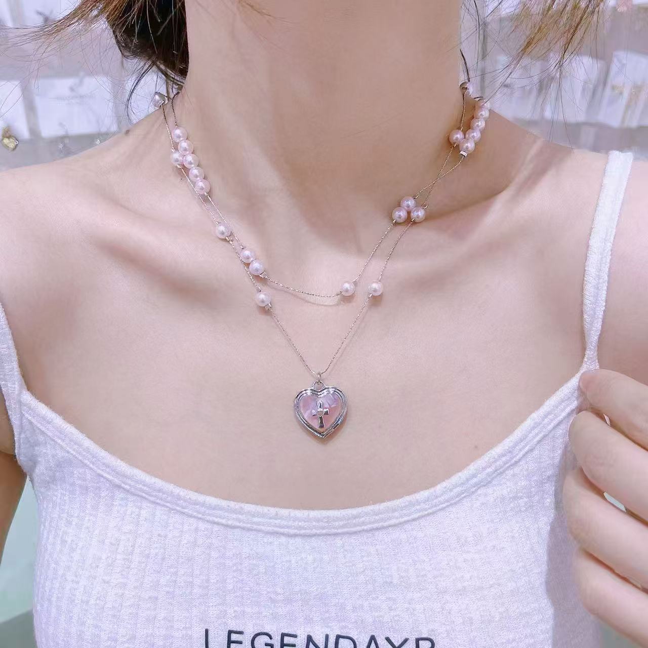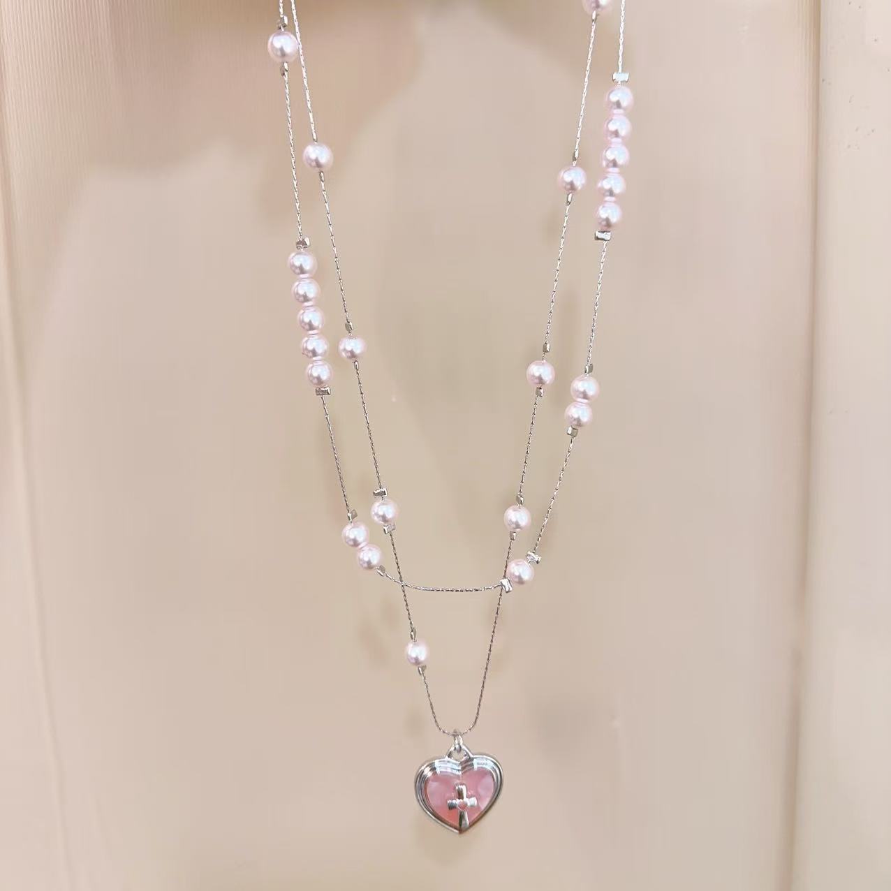 Dulce Collar con Colgante de Amor Rosa para Mujer, Elegante de Doble Capa, Moda para Dama, Perla, Lujo Ligero, Aretes, Cadena para el Cuello, Trendy