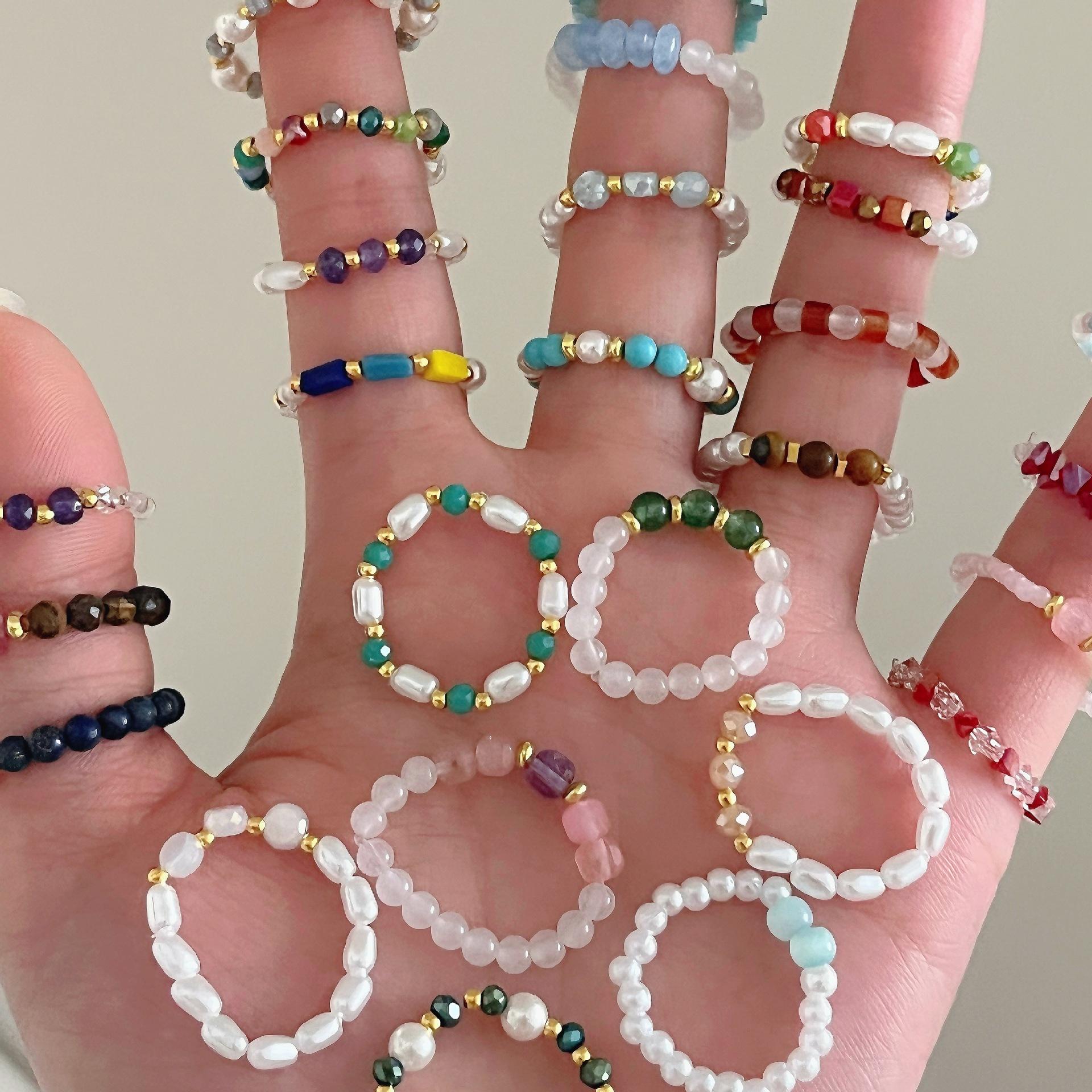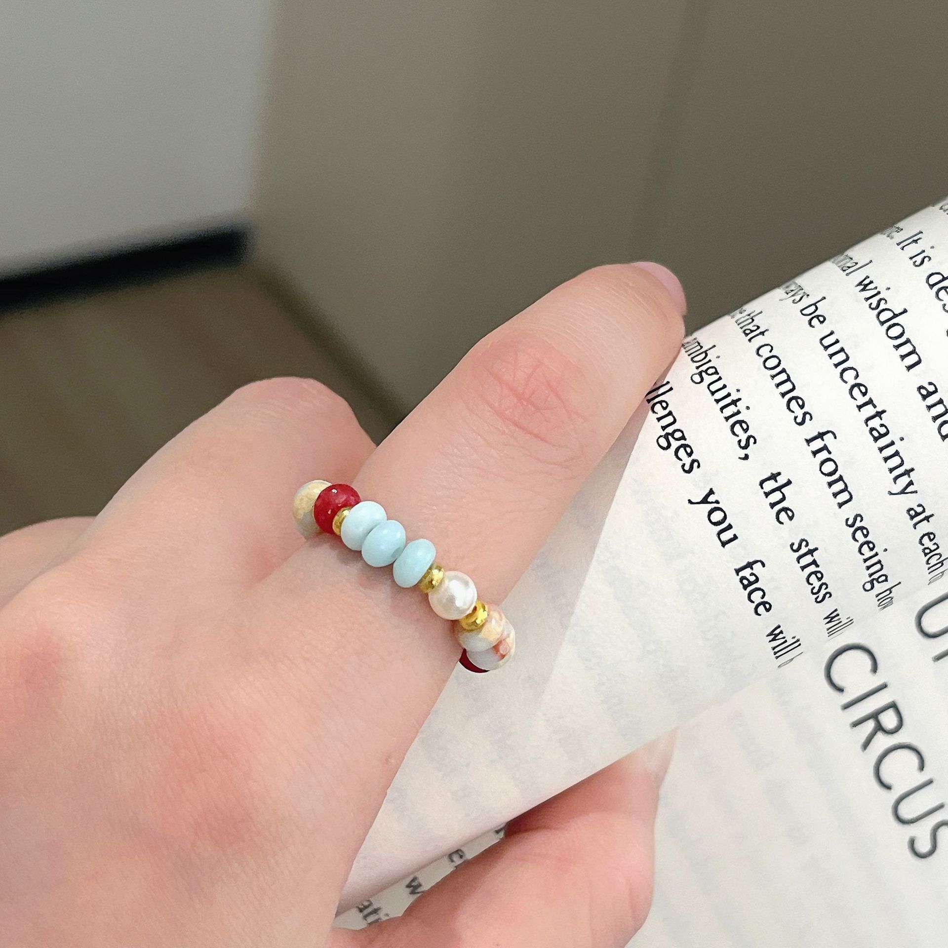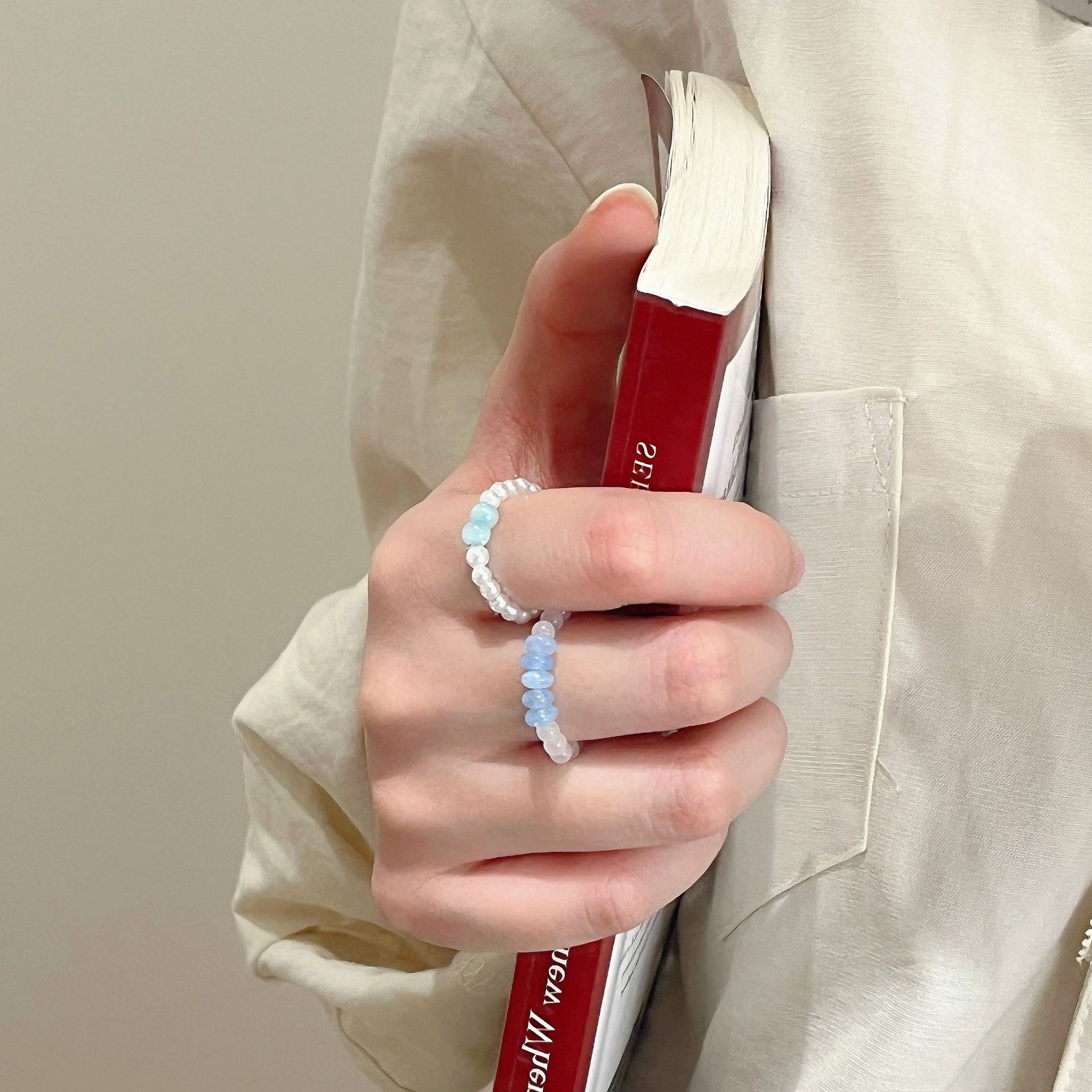 Anillo de Cuentas de Perlas de Cristal para Mujer Estilo Coreano Ins Diseño Nicho Dedo Índice Color Inquitting Sentido de Alta Gama Anillo Apilado