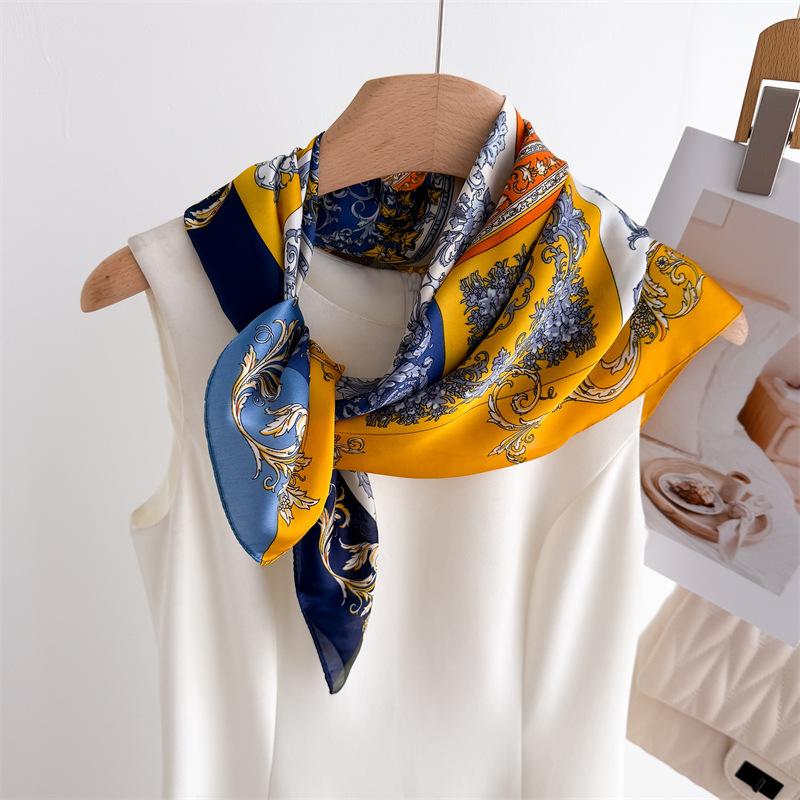 Bufanda cuadrada de seda con estampado elegante, estilo retro europeo y americano, chal de alta calidad, cuello que combina con todo, bufanda cuadrada pequeña para mujer