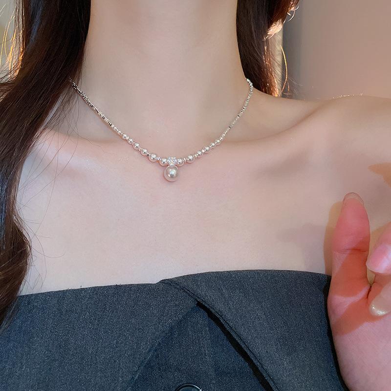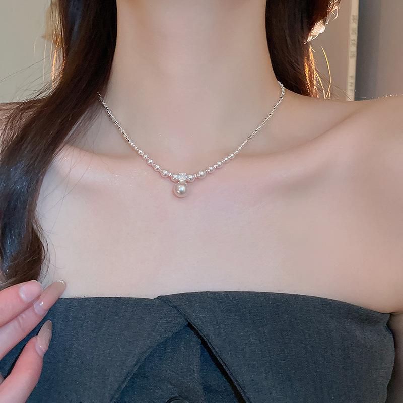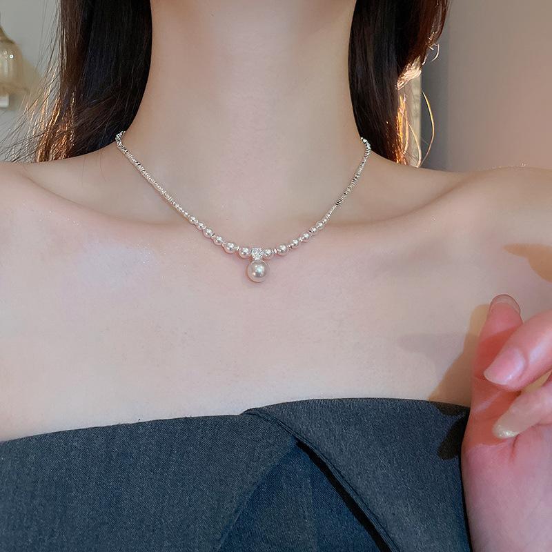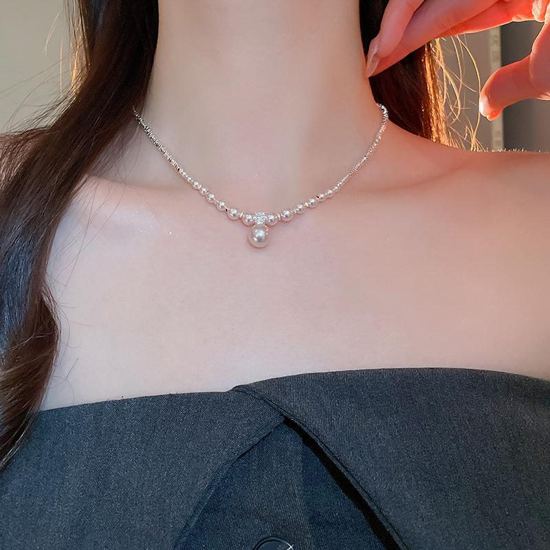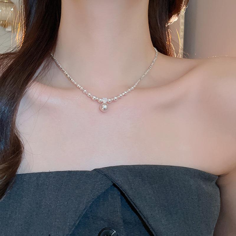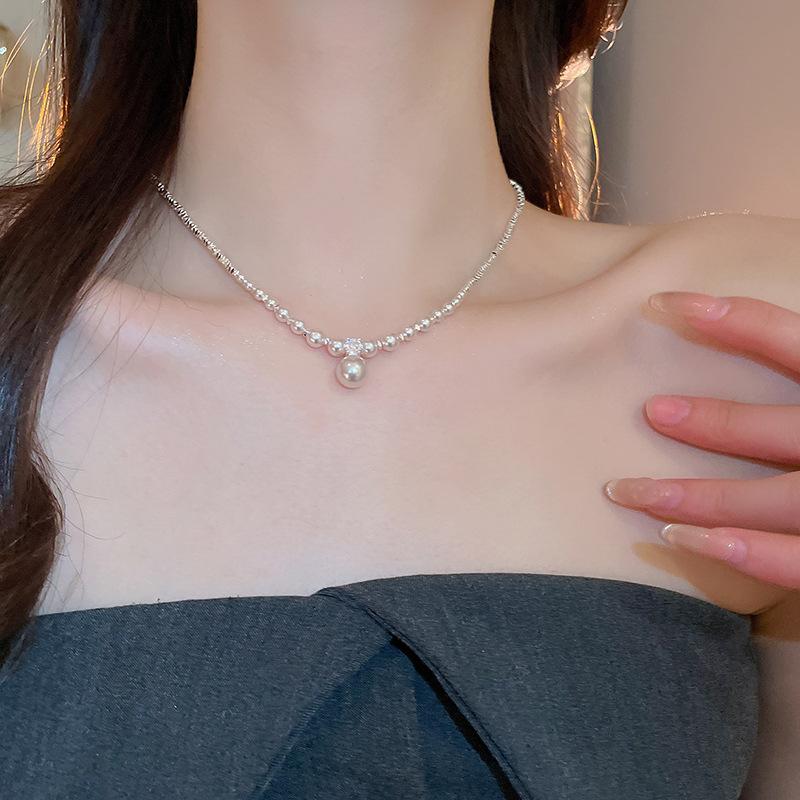 Zircón Plata Rota Piedra Negra Perla Collar con Cuentas Temperamento Viento Frío Cadena Clavícula Nicho Superior Cadena de Cuello