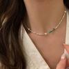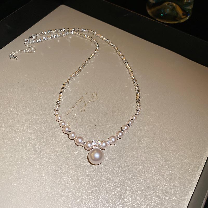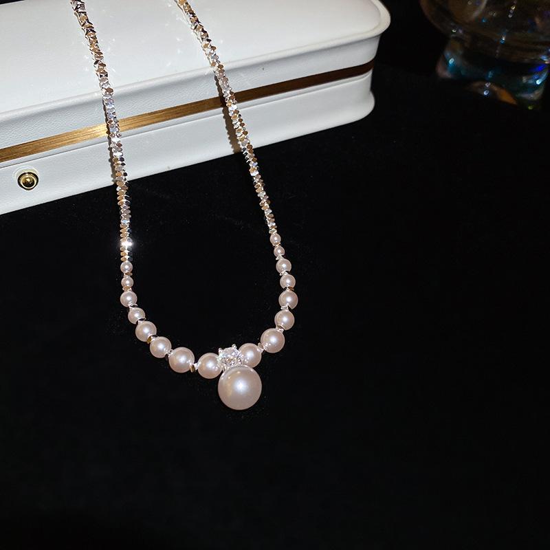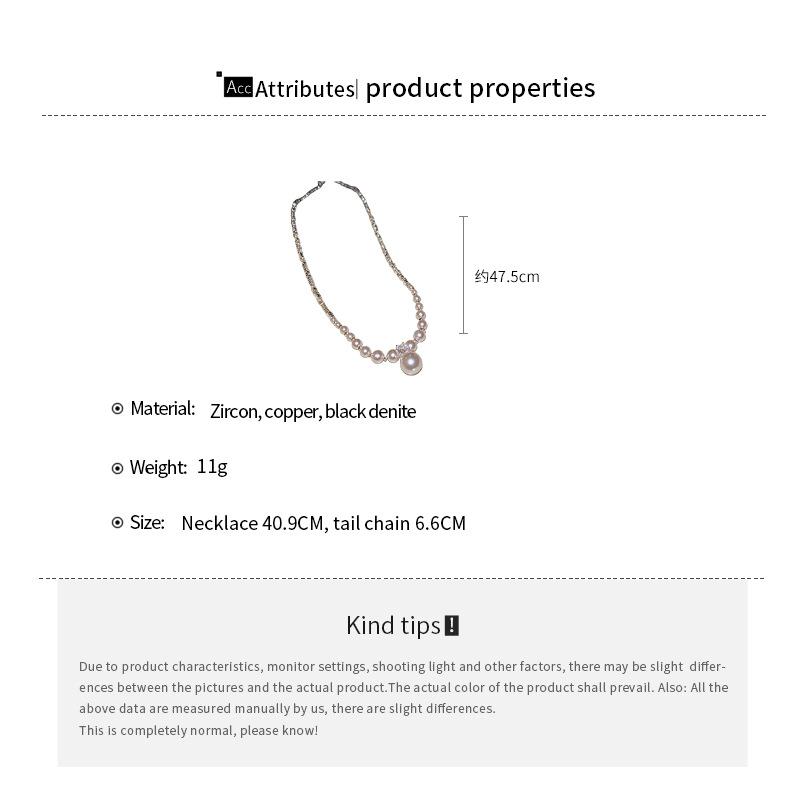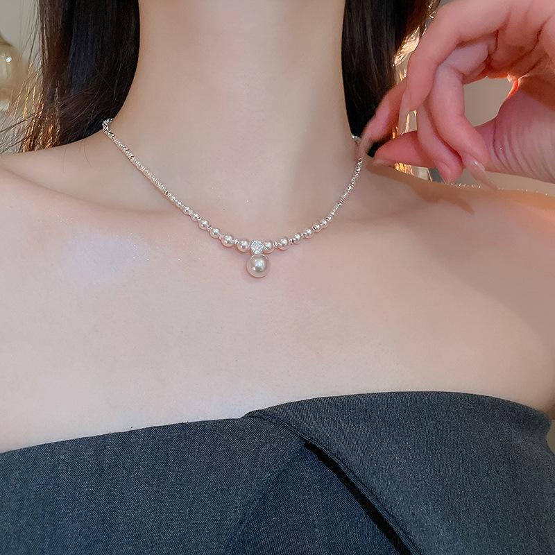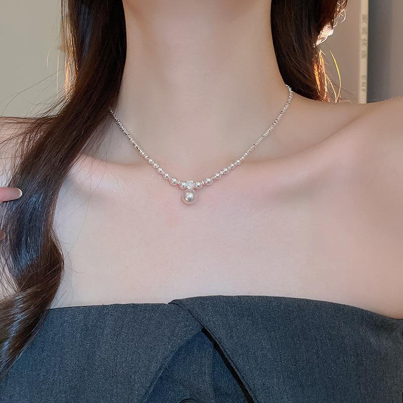 Zircón Plata Rota Piedra Negra Perla Collar con Cuentas Temperamento Viento Frío Cadena Clavícula Nicho Superior Cadena de Cuello