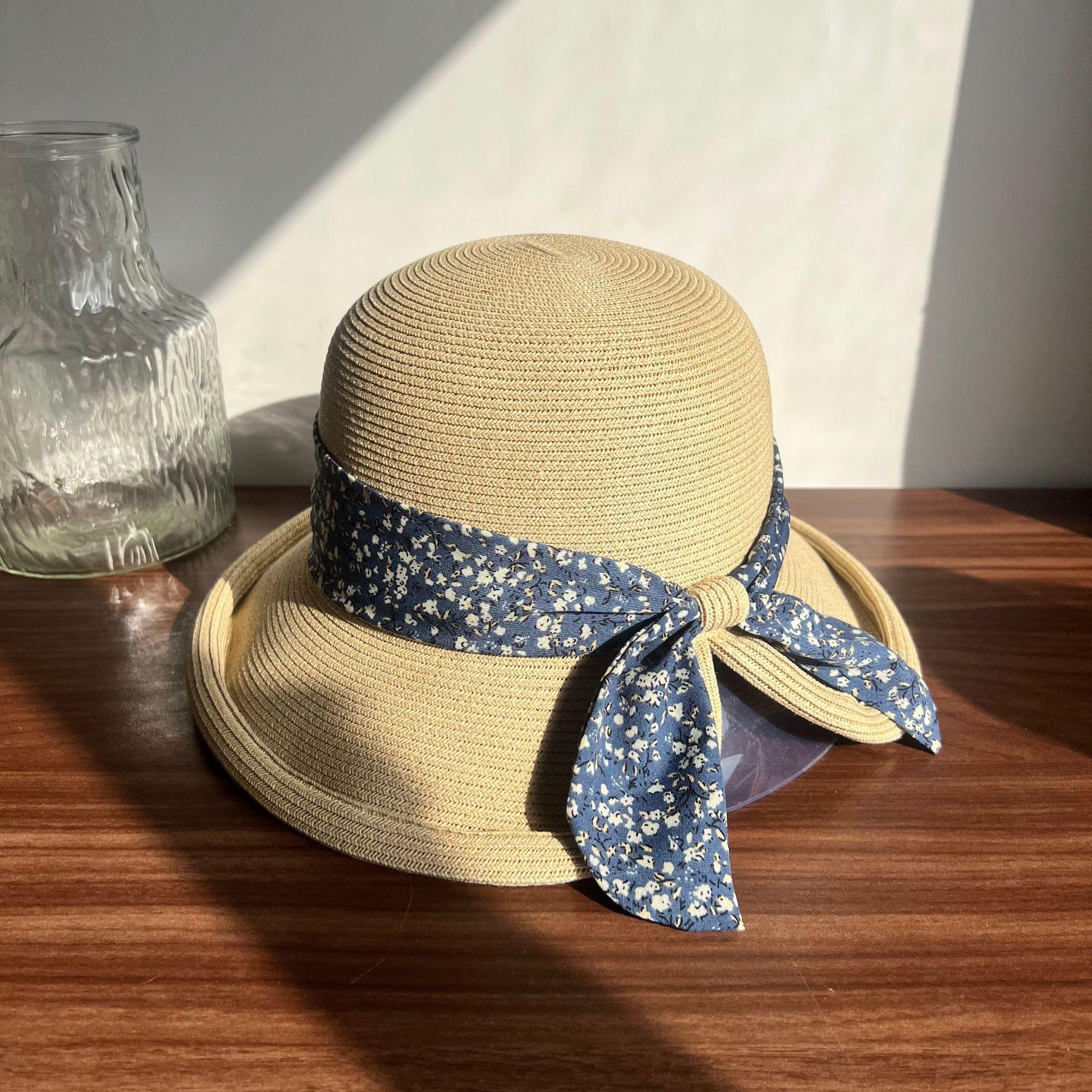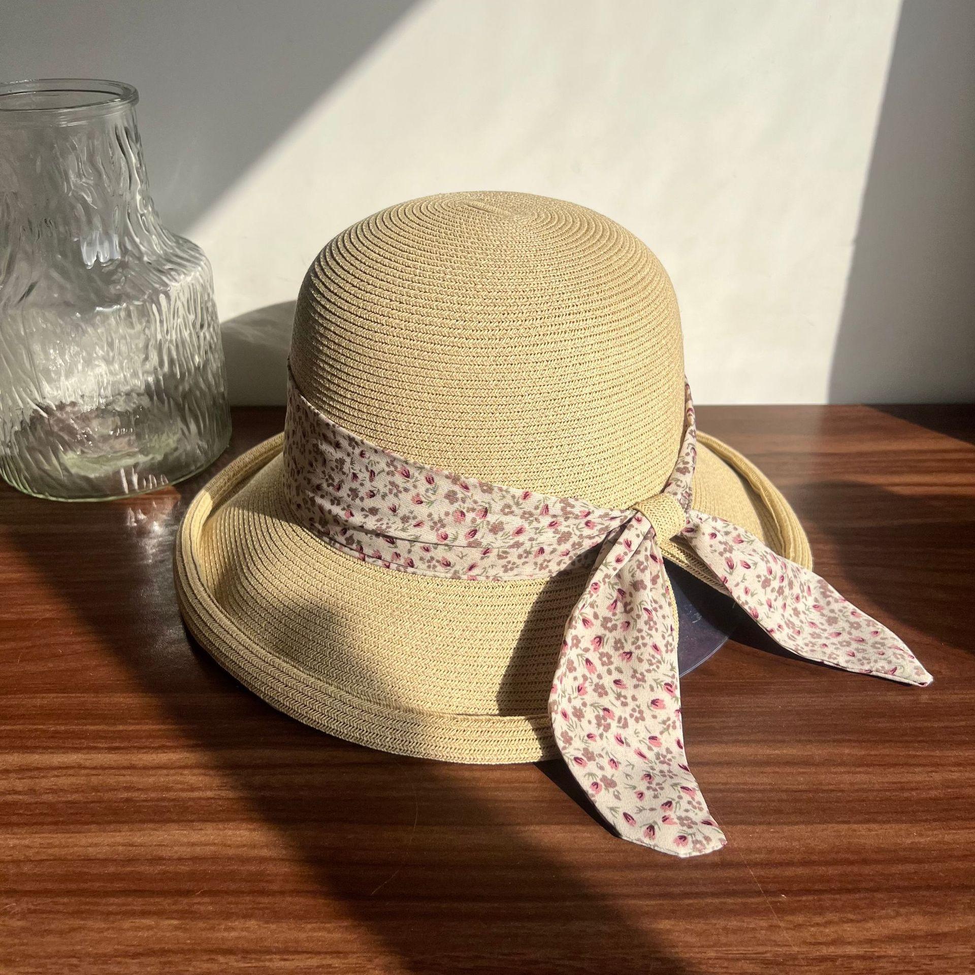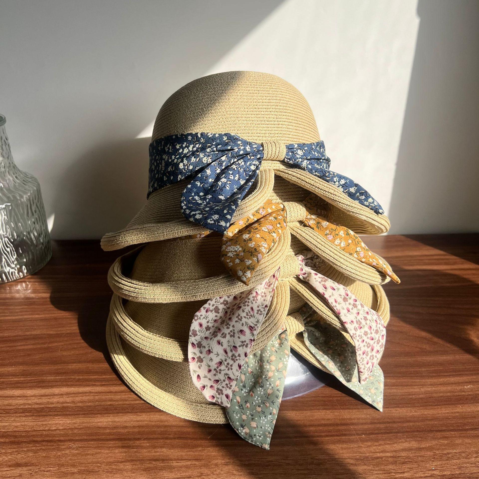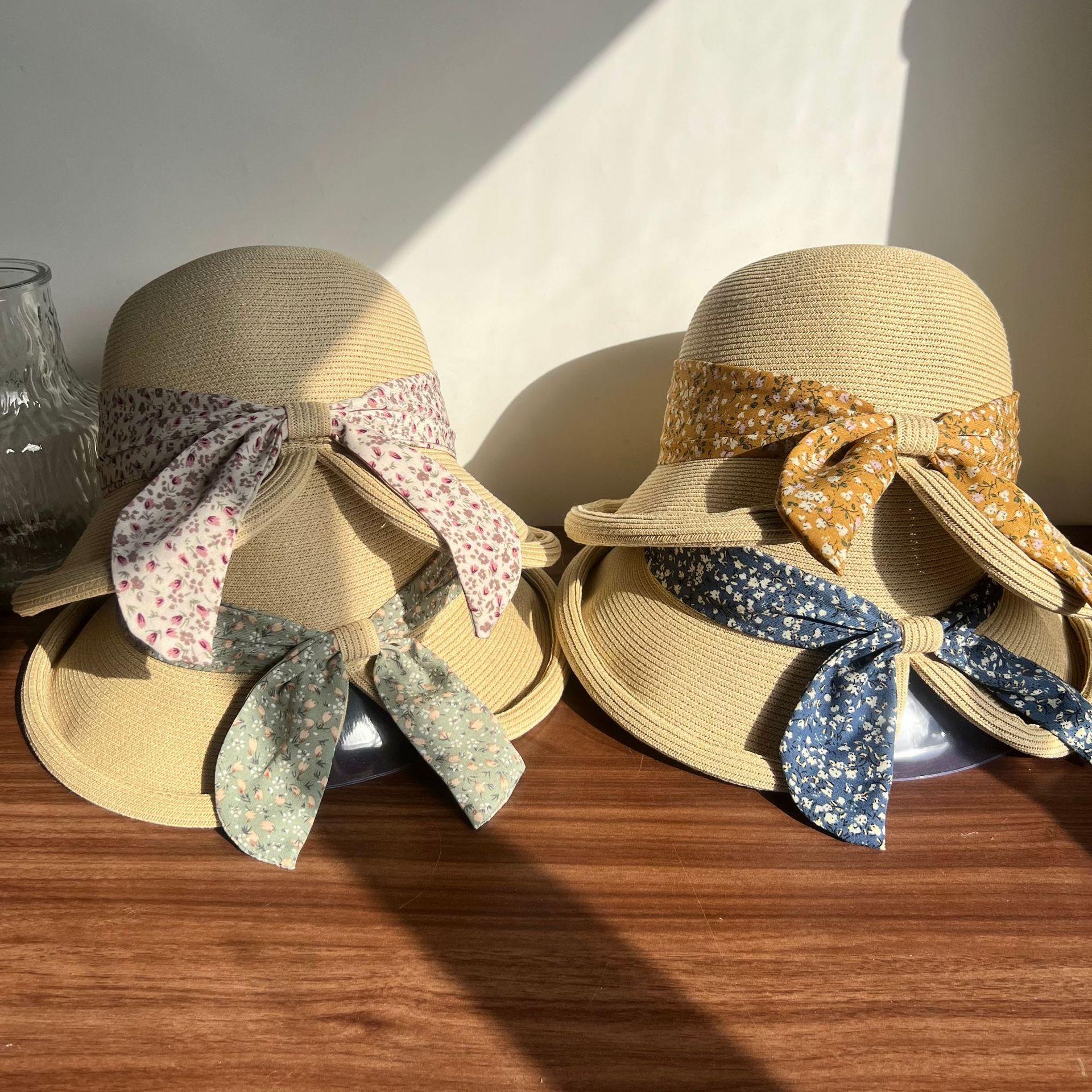 Sombrero de Paja Elegante con Lazo Estilo Hepburn para Mujer Verano Viaje Vacaciones Estilo Pastoral Protector Solar Sombrero de Pescador