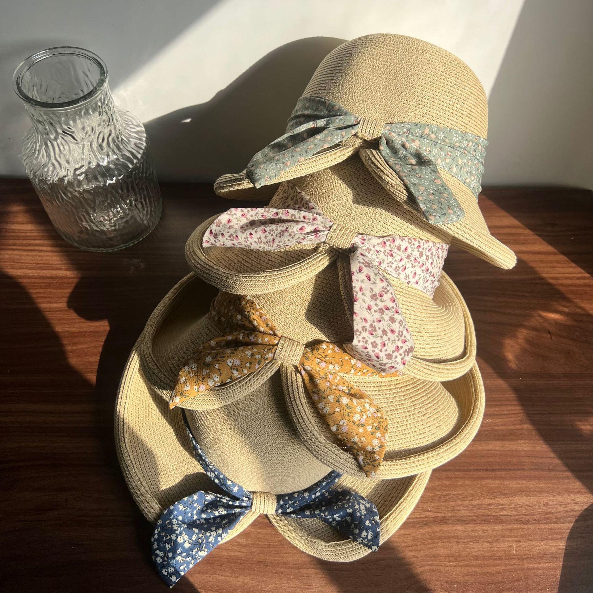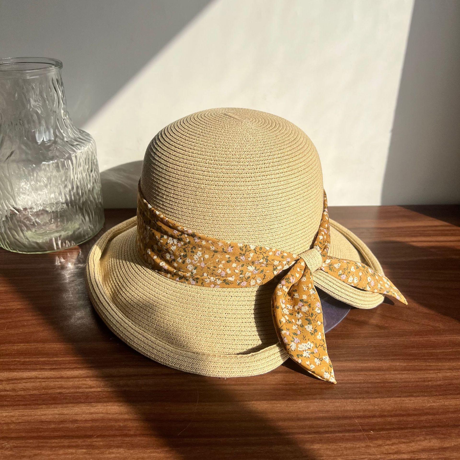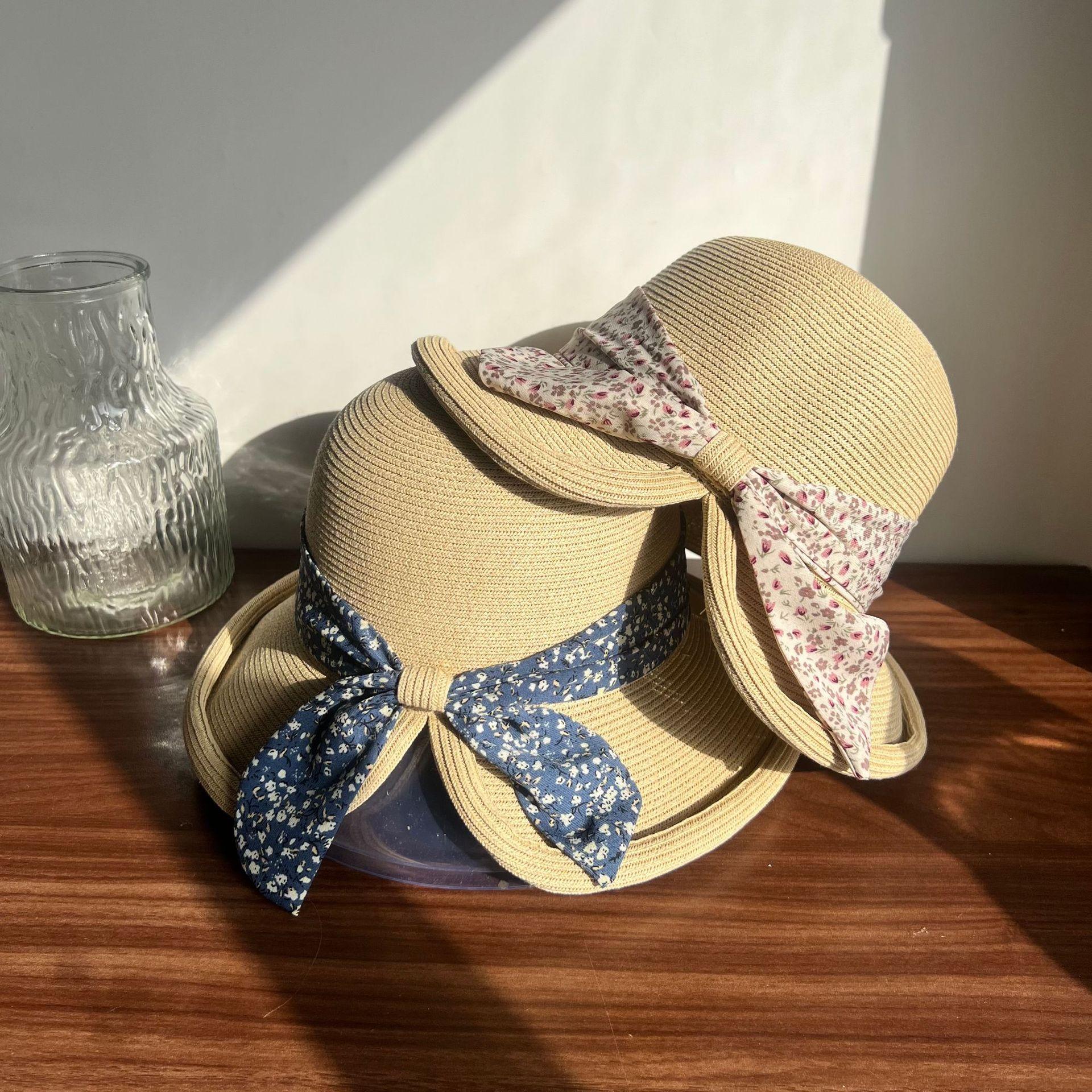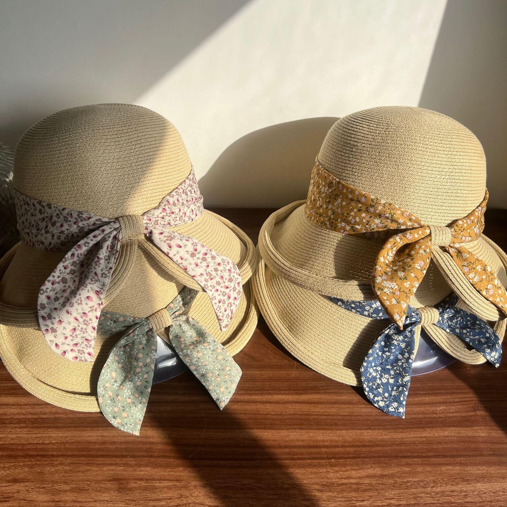 Sombrero de Paja Elegante con Lazo Estilo Hepburn para Mujer Verano Viaje Vacaciones Estilo Pastoral Protector Solar Sombrero de Pescador