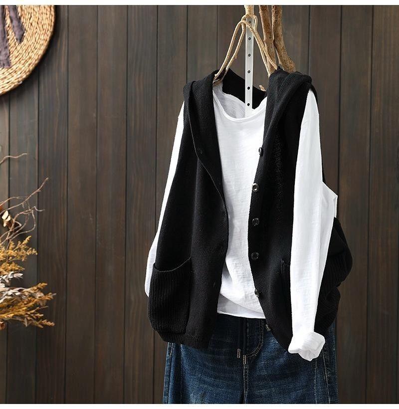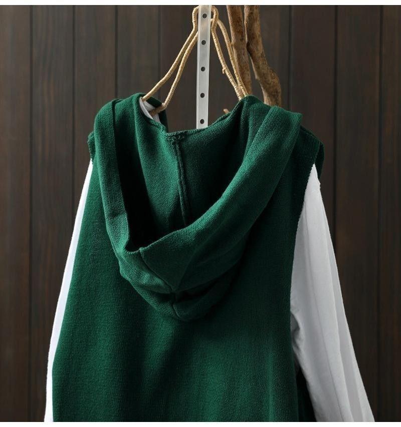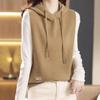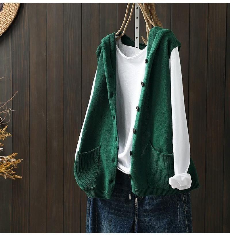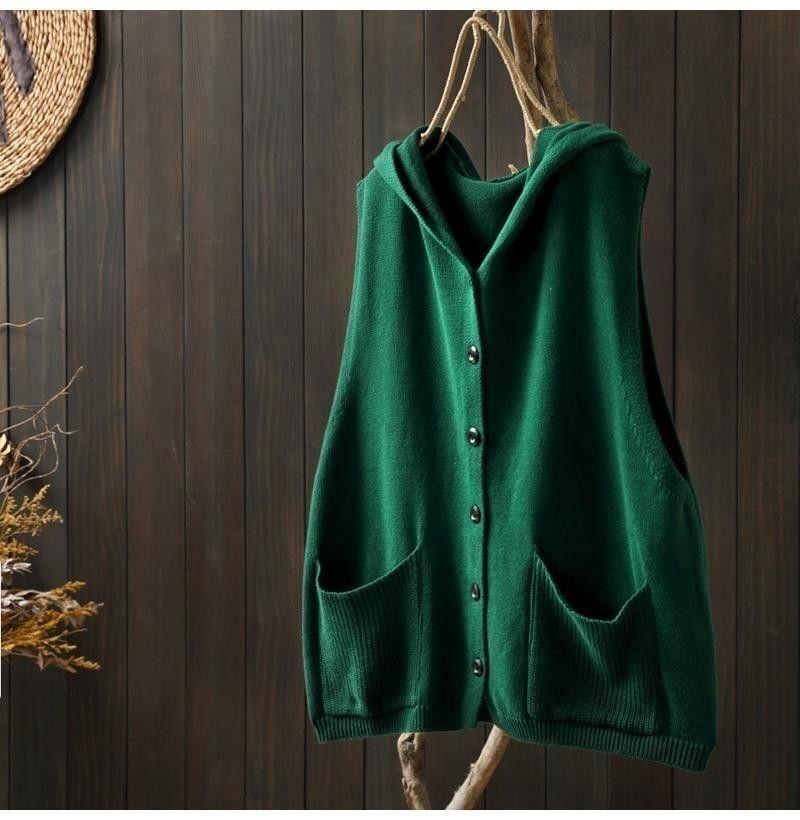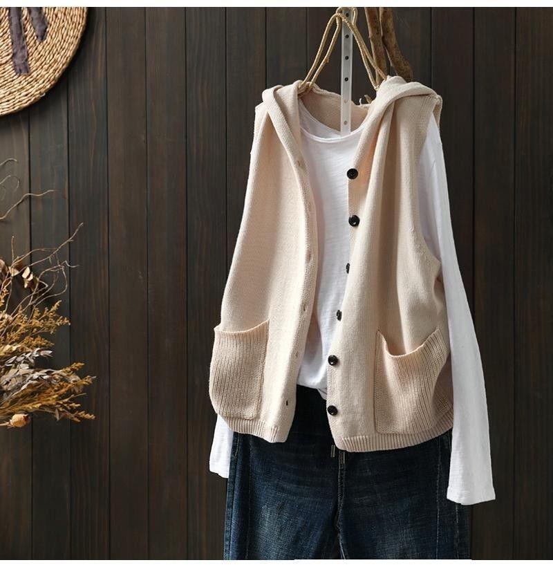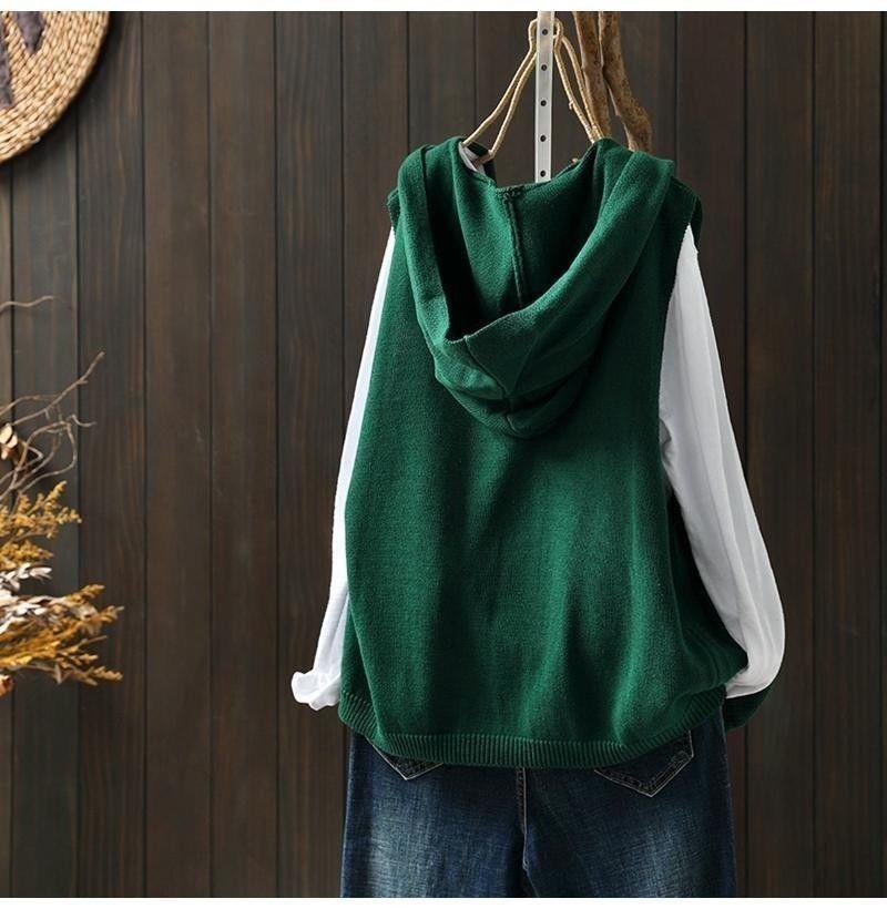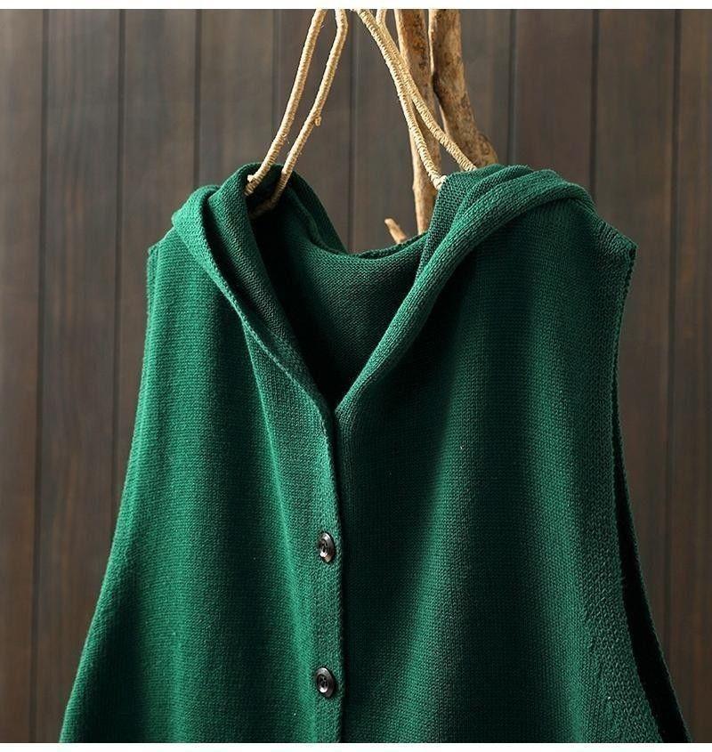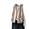 Chaleco de Punto con Capucha para Mujer 2025 Otoño e Invierno Nuevo Artístico Holgado Casual Doble Bolsillo Sin Mangas Exterior Chaleco