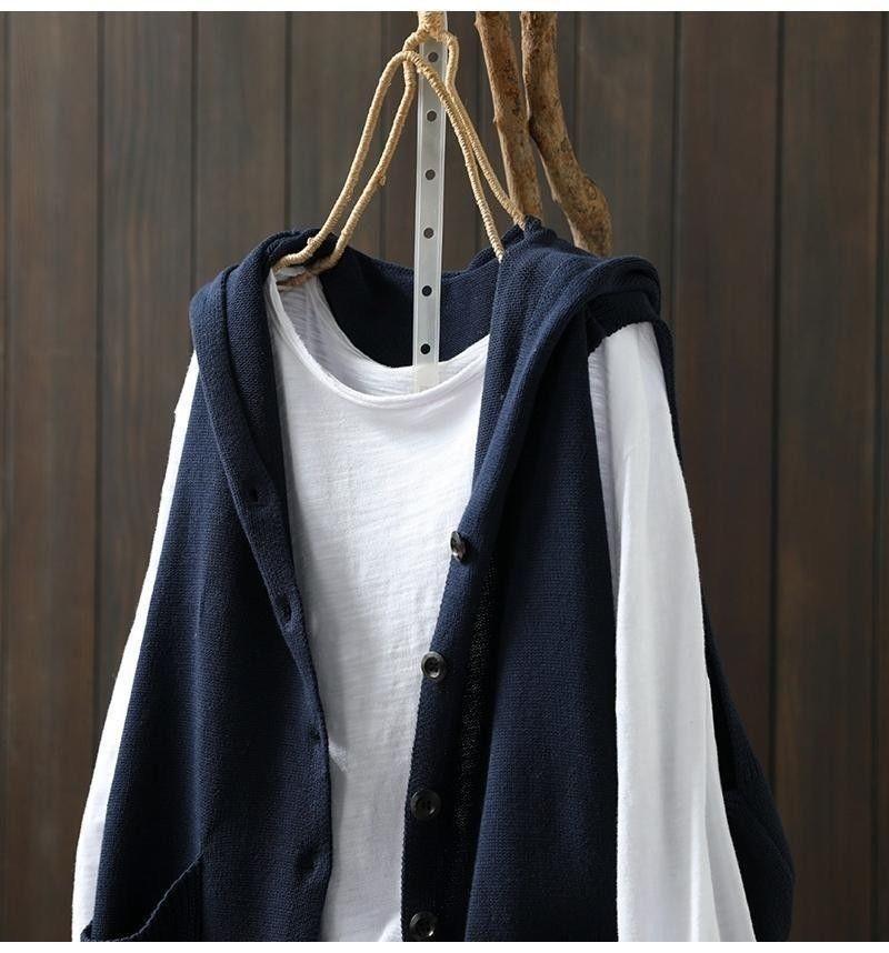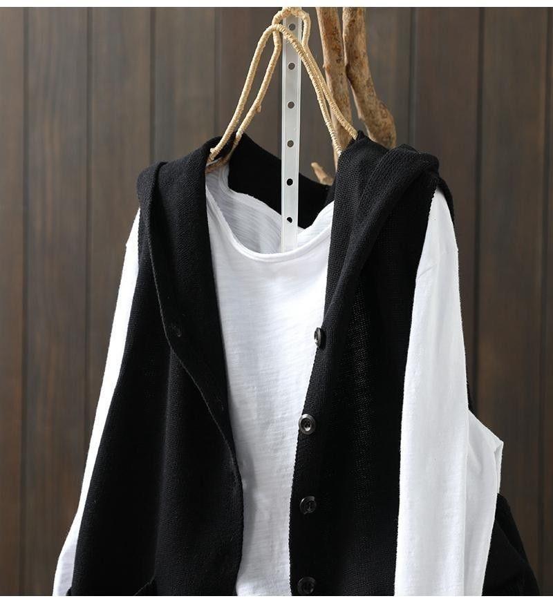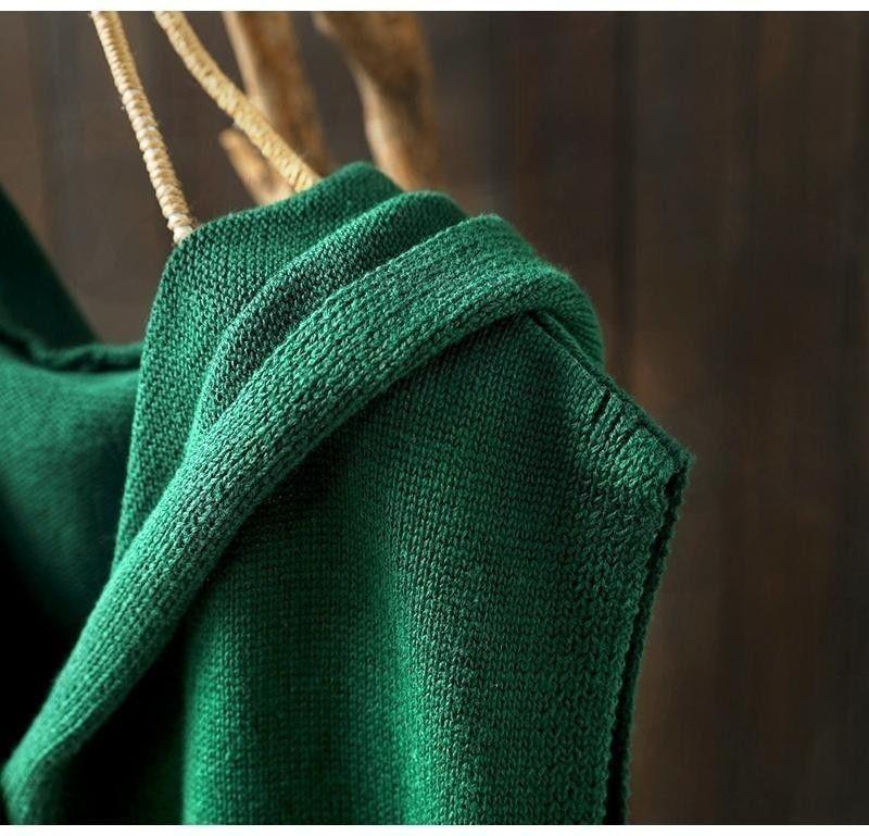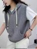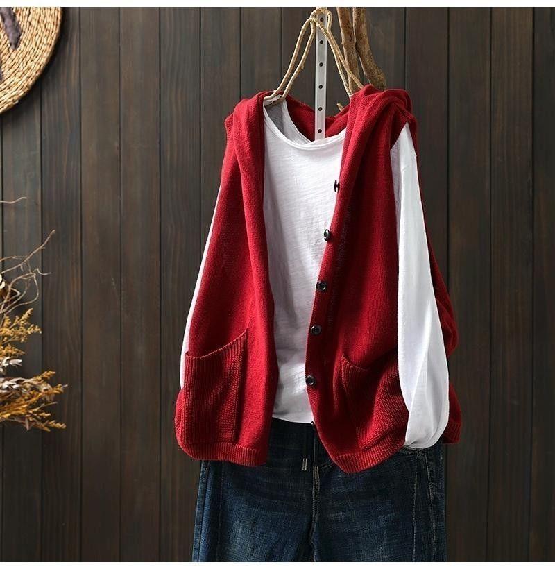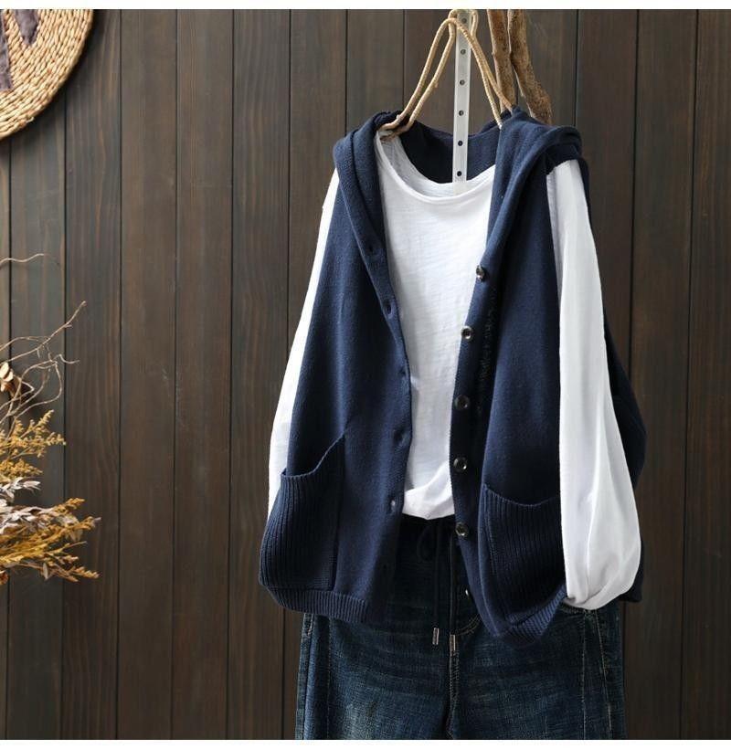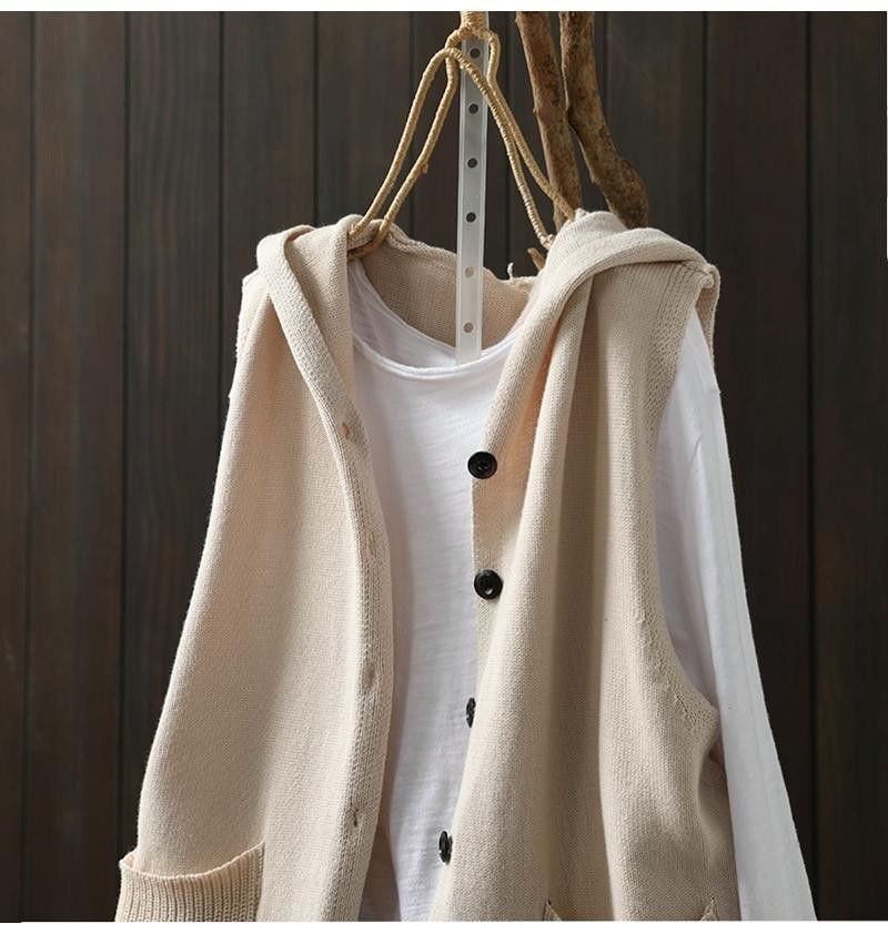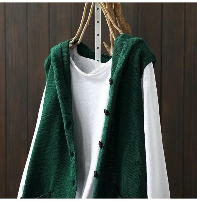 Chaleco de Punto con Capucha para Mujer 2025 Otoño e Invierno Nuevo Artístico Holgado Casual Doble Bolsillo Sin Mangas Exterior Chaleco