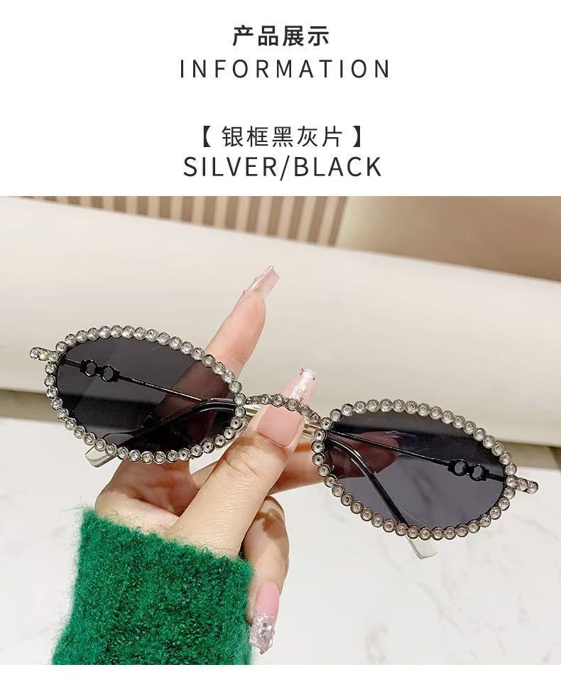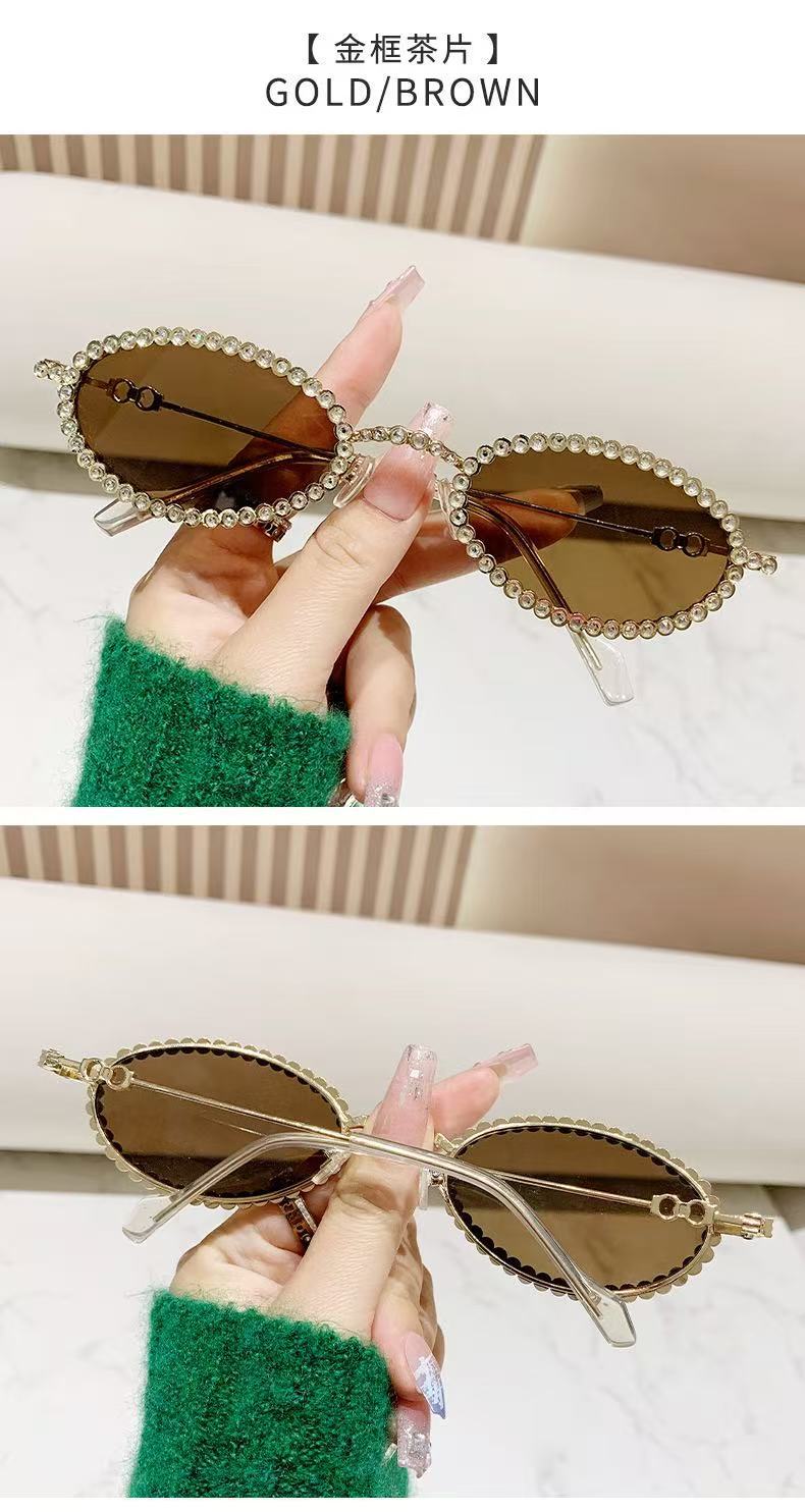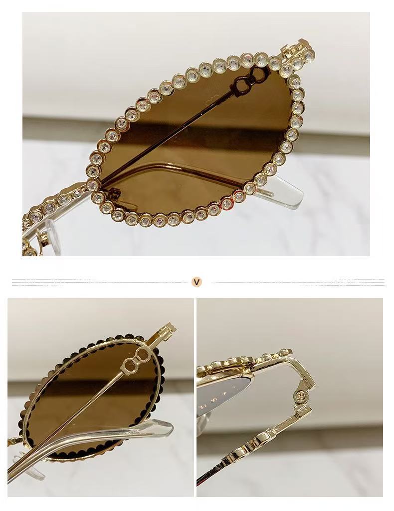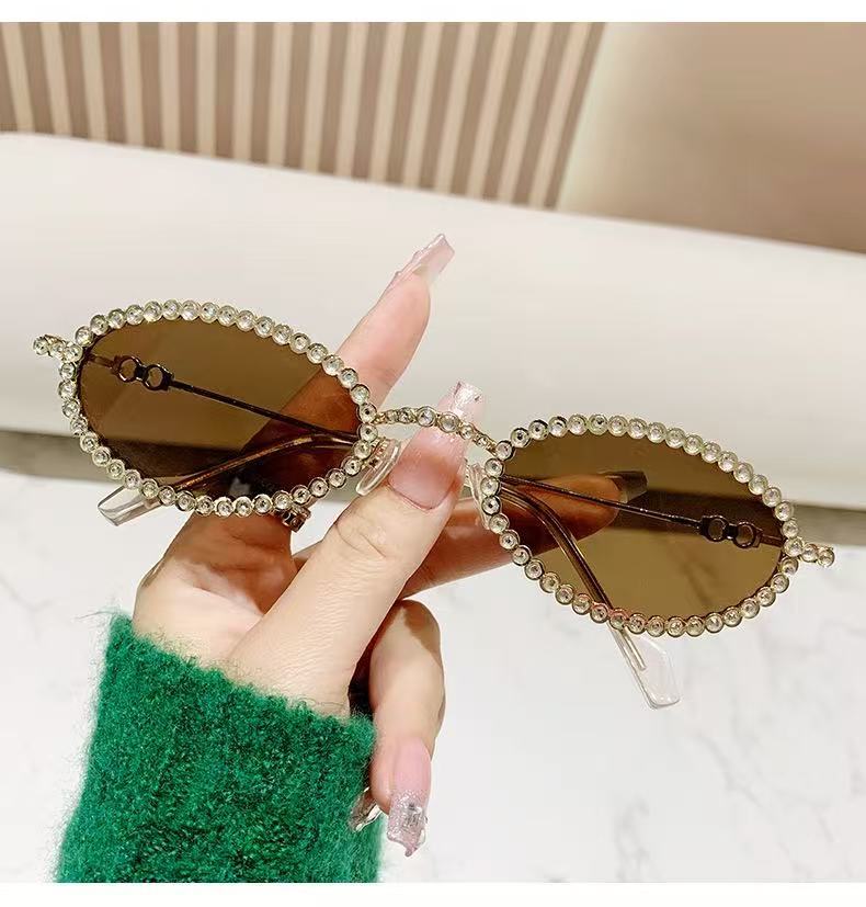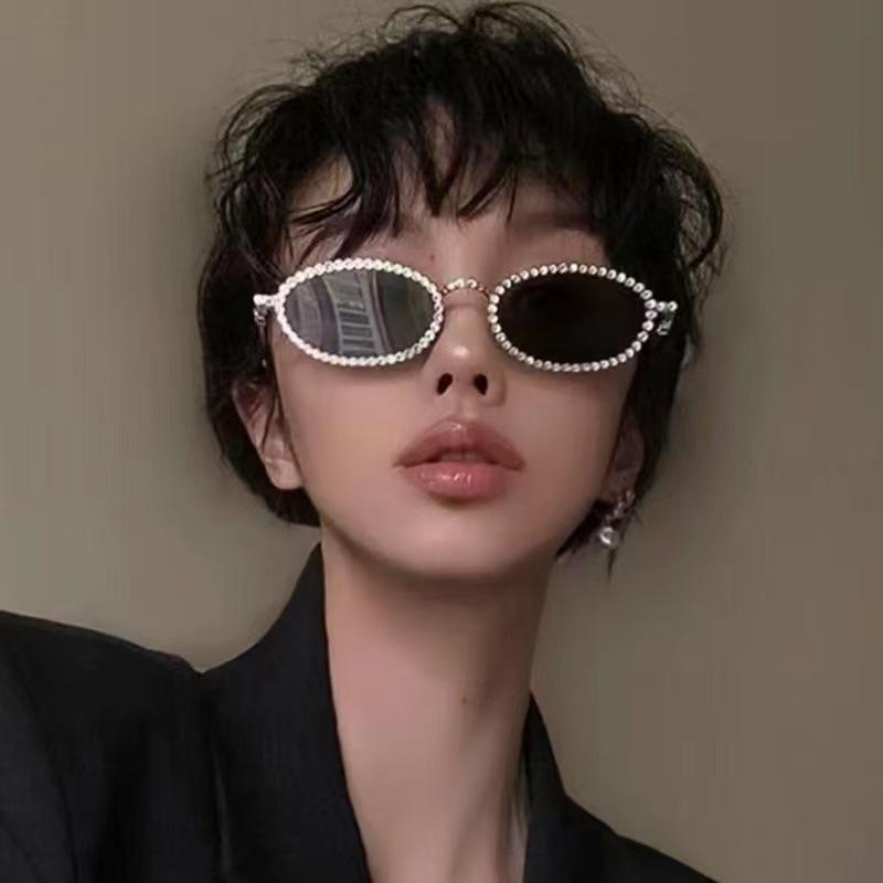 Gafas de Sol Sexy de Alta Gama con Montura Ovalada de Diamantes Completos para Mujer para Tomar Fotos con Forma Cóncava Gafas de Sol Retro de Diamantes