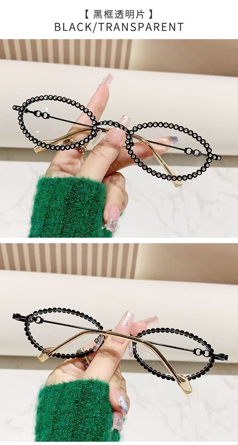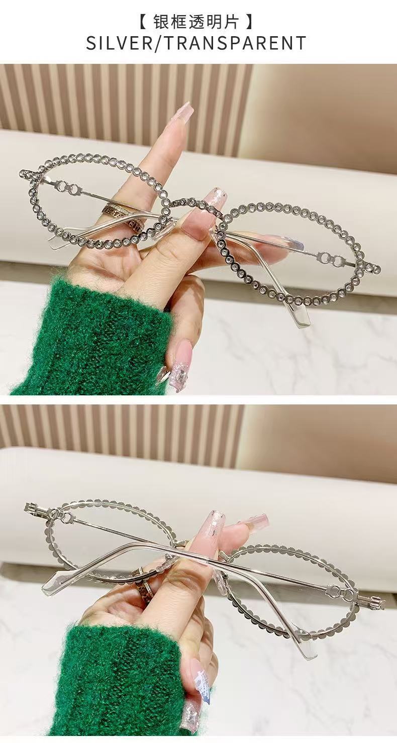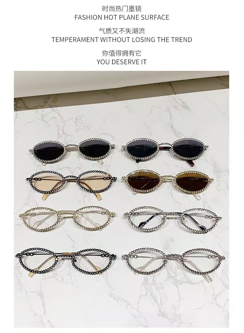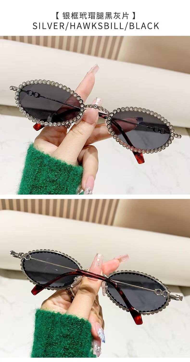 Gafas de Sol Sexy de Alta Gama con Montura Ovalada de Diamantes Completos para Mujer para Tomar Fotos con Forma Cóncava Gafas de Sol Retro de Diamantes