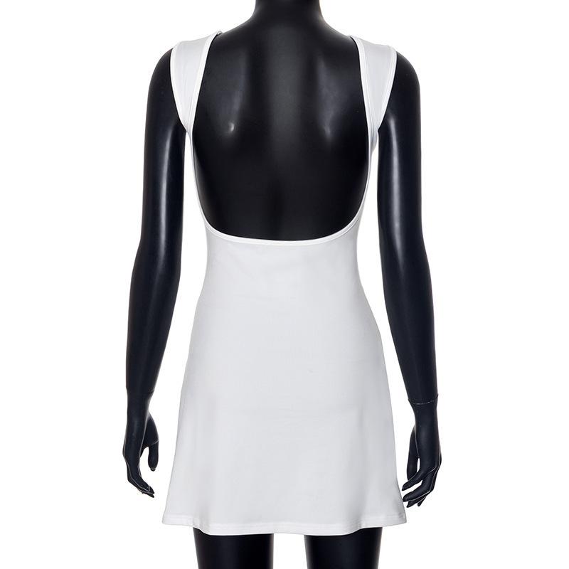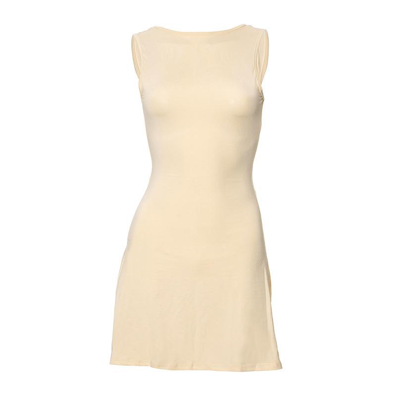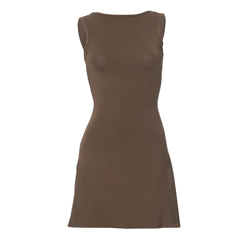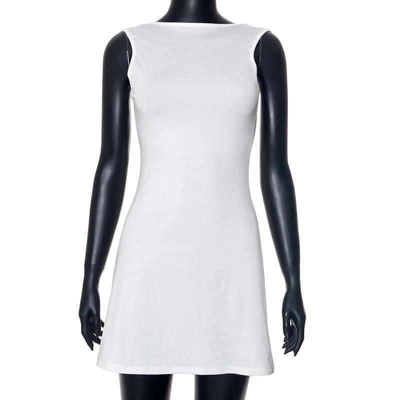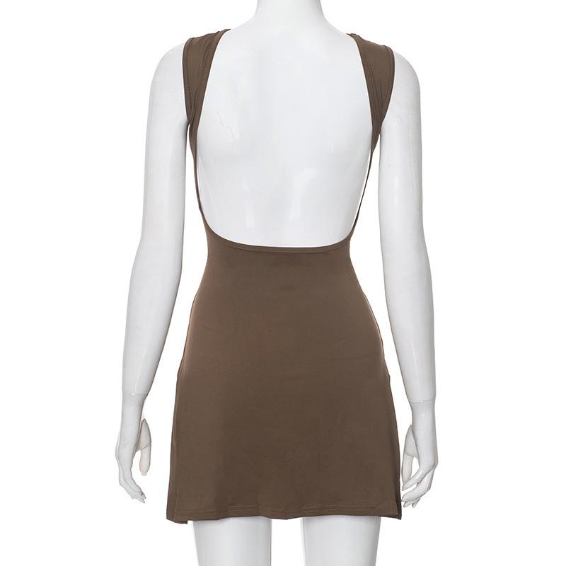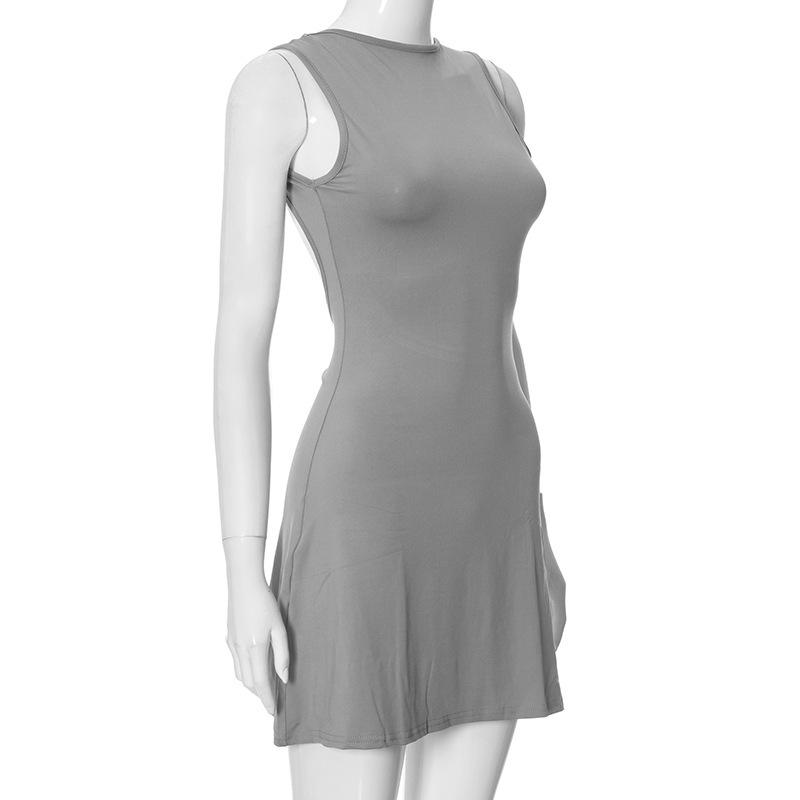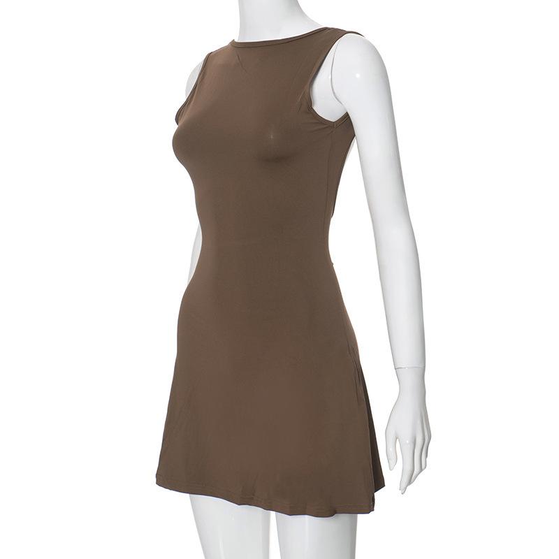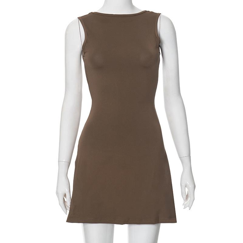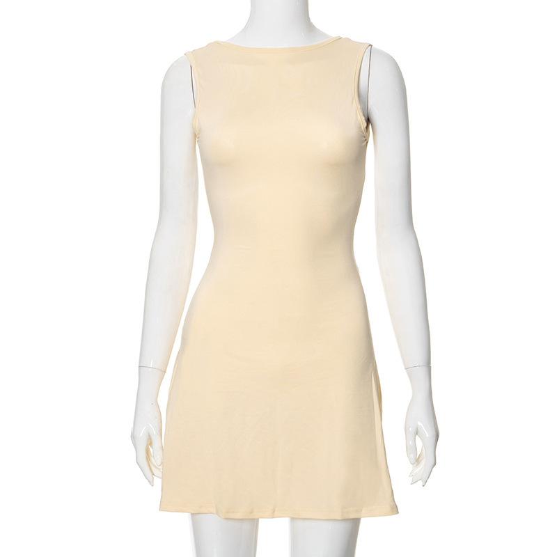 Europeo y Americano Nuevo Verano para Mujer Color Sólido Espalda Descubierta Cuello Redondo Sin Mangas Casual Elegante Vestido de Cadera Venta al por Mayor Transfronteriza