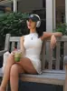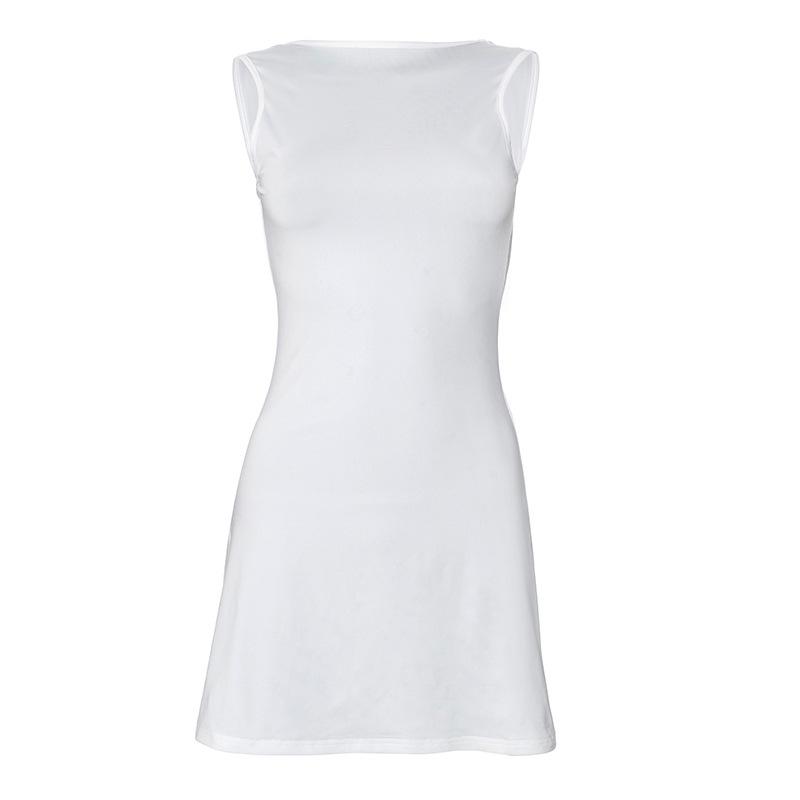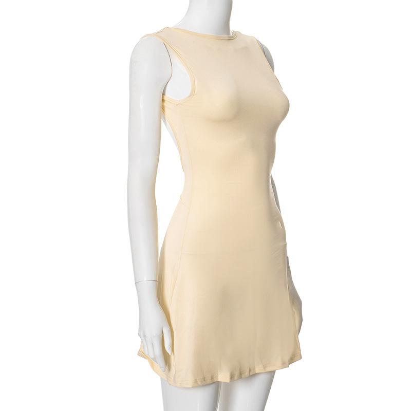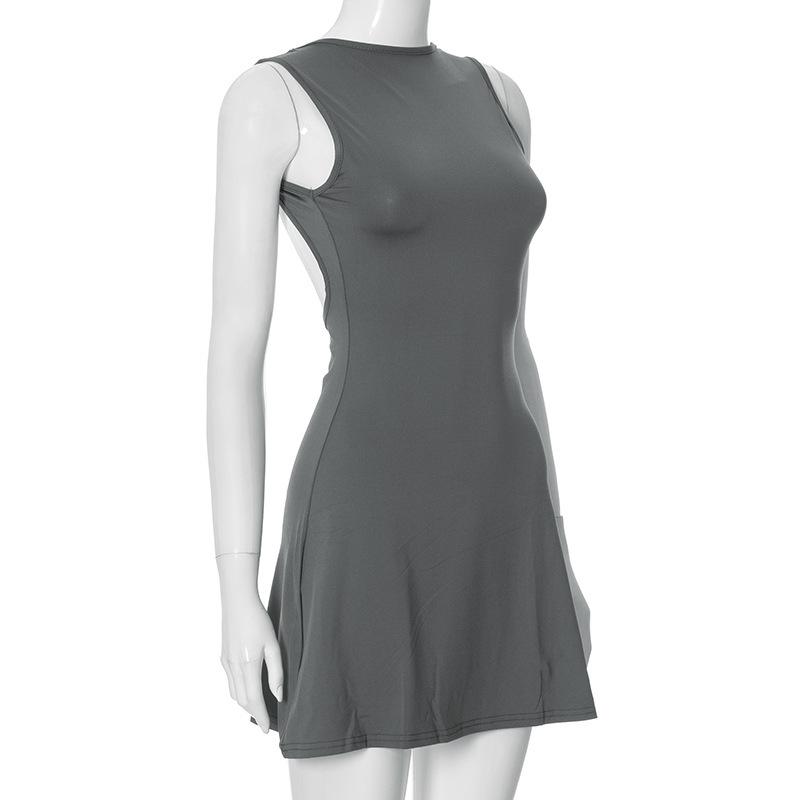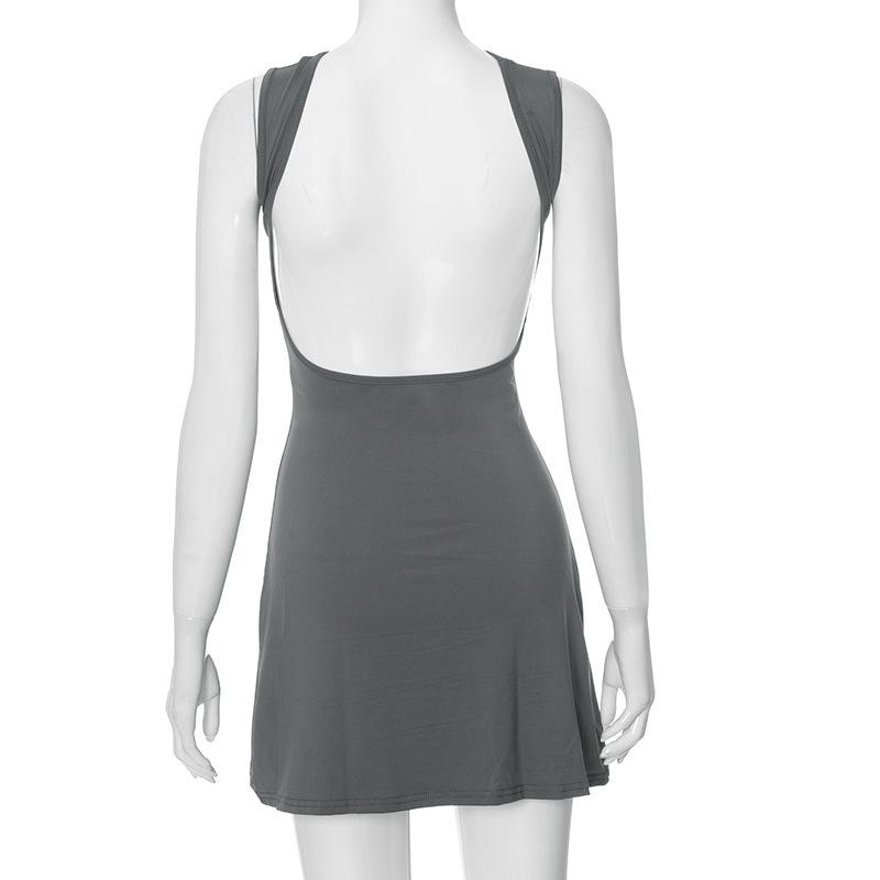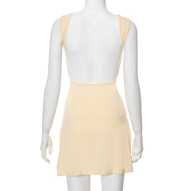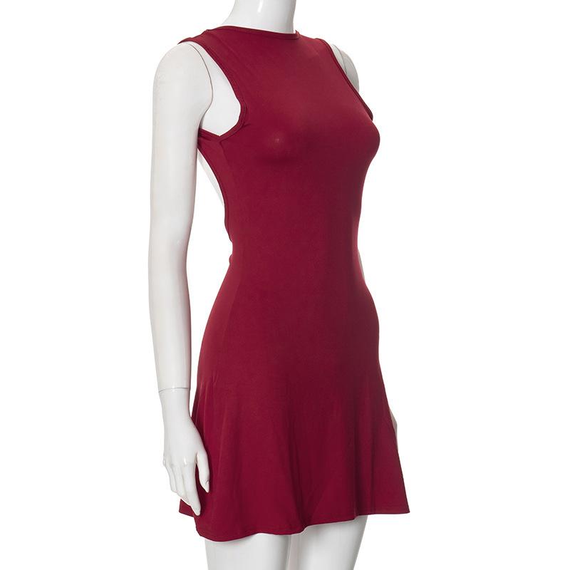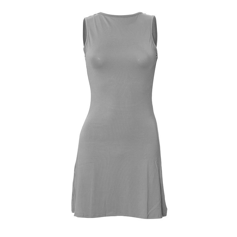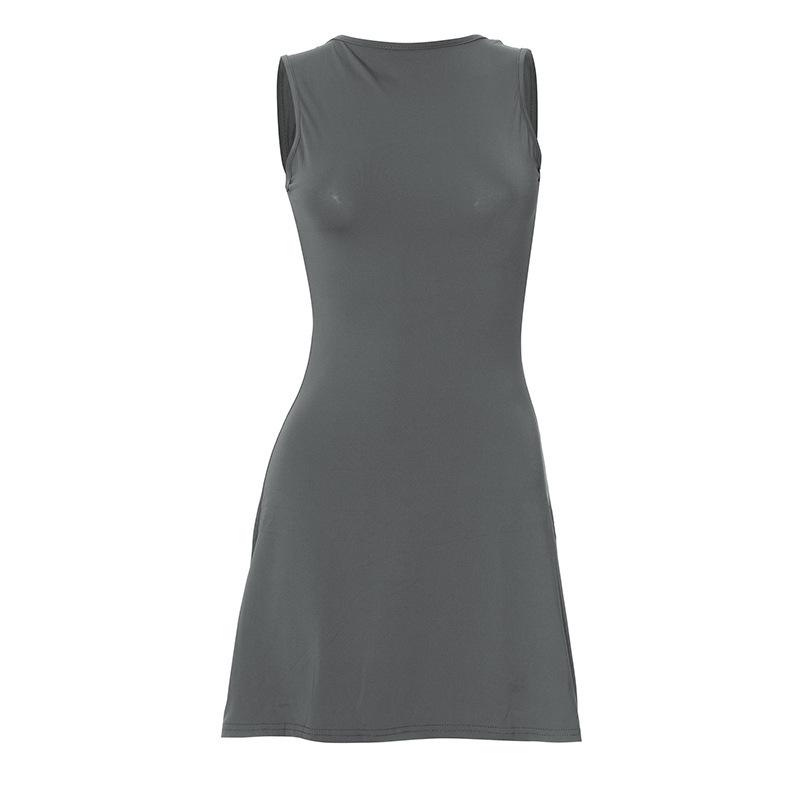 Europeo y Americano Nuevo Verano para Mujer Color Sólido Espalda Descubierta Cuello Redondo Sin Mangas Casual Elegante Vestido de Cadera Venta al por Mayor Transfronteriza
