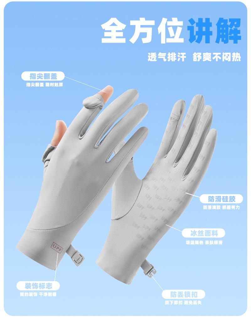 Guantes de Protección Solar de Verano para Mujer, Secado Rápido, Guantes Anti-UV para Conducir y Ciclismo, Ligeros, Transpirables, Guantes de Seda Helada sin Dedos