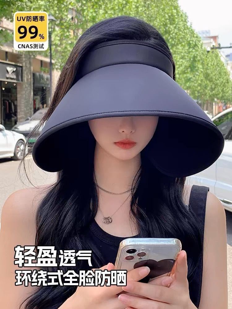 Sombrero de Sol Cubre-Rostro Envolvente para Mujer Verano Sombrero de Sol de Ala Ancha para Exterior Equitación Anti-UV Sombrero de Sol de Seda de Hielo