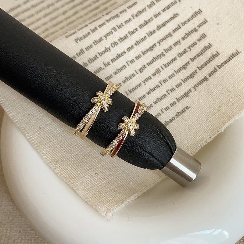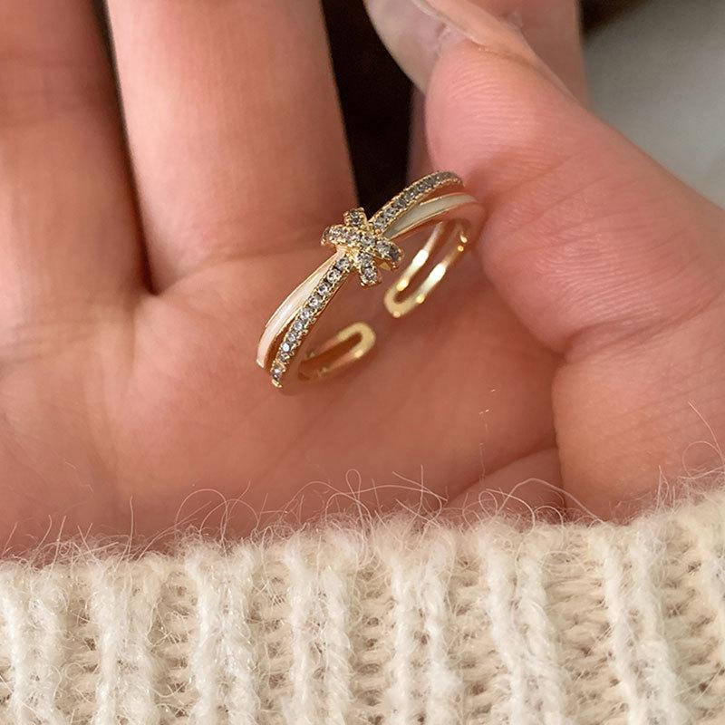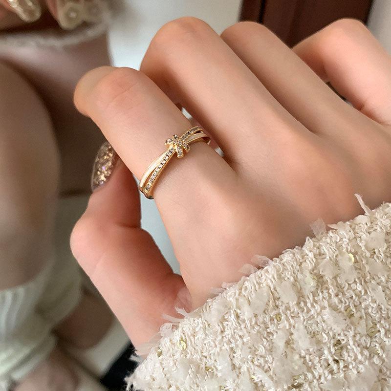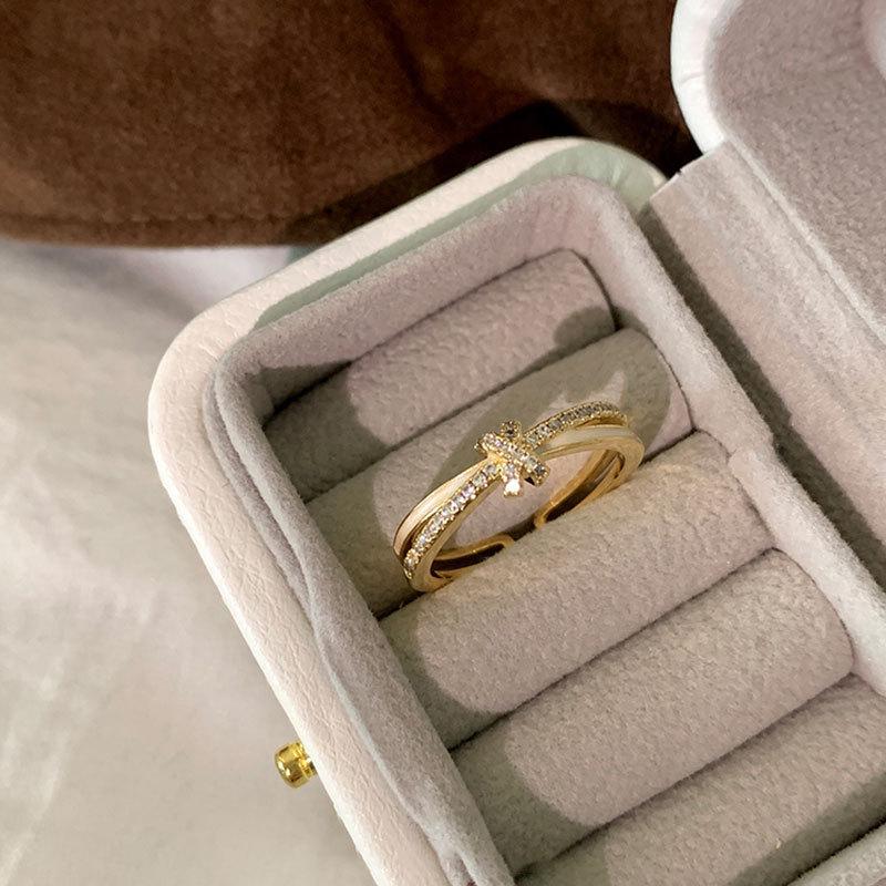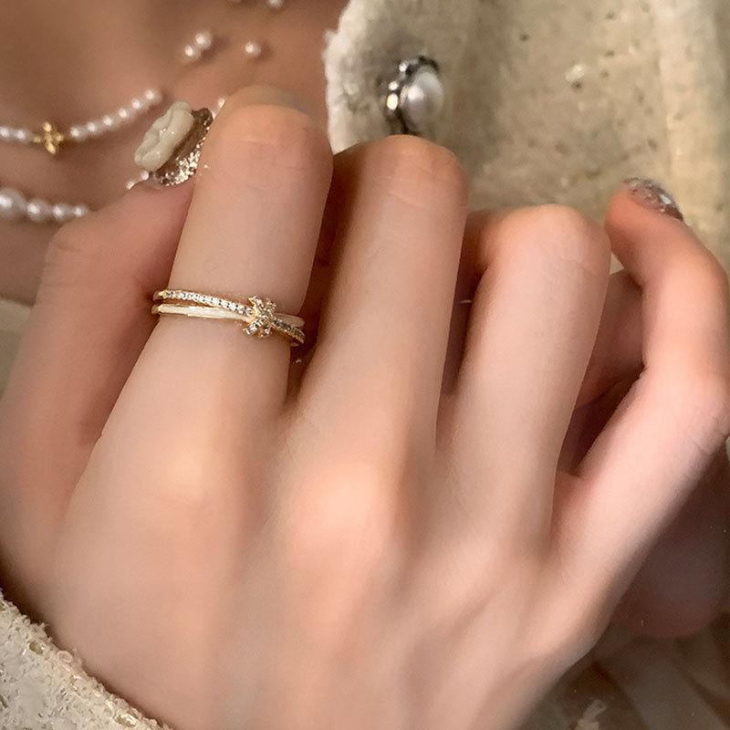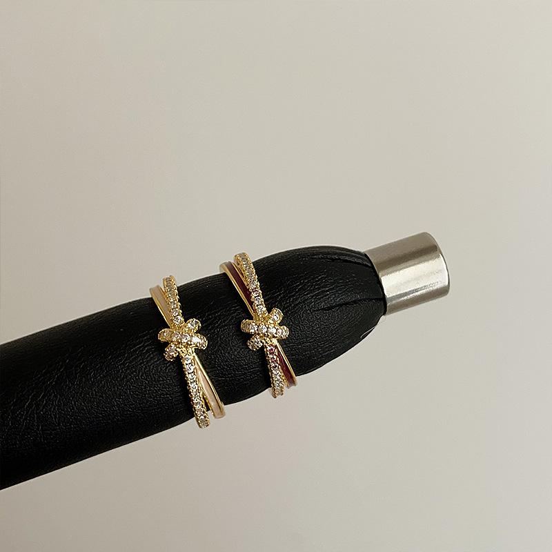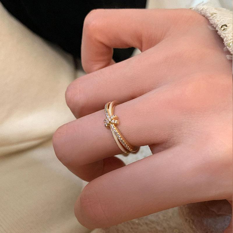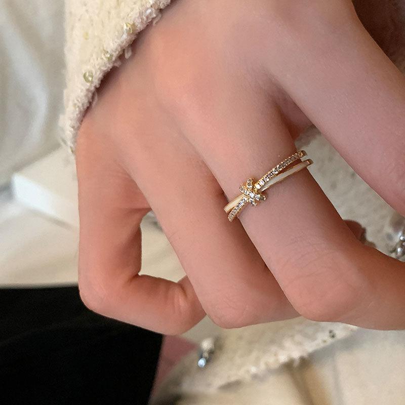 Anillo de Nudo de Doble Capa con Apertura, Diseño Nicho, Zirconia con Gota de Aceite, Exquisito, Moda, Elegante, Versátil
