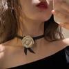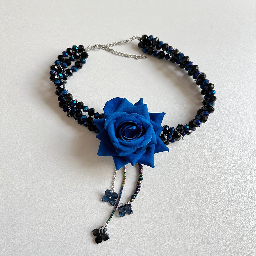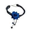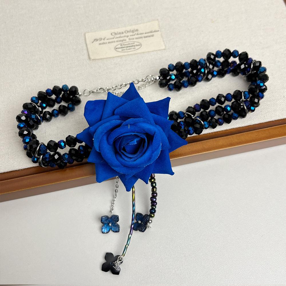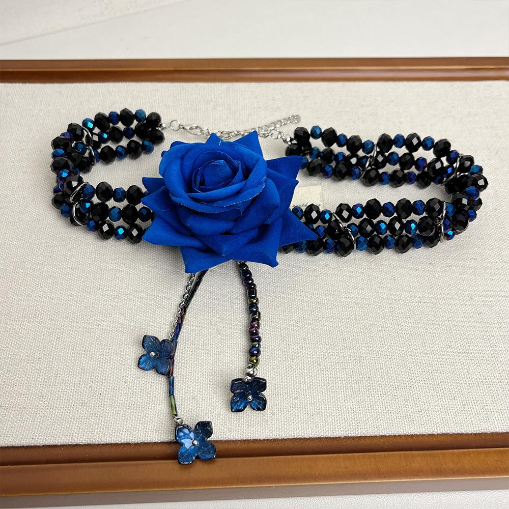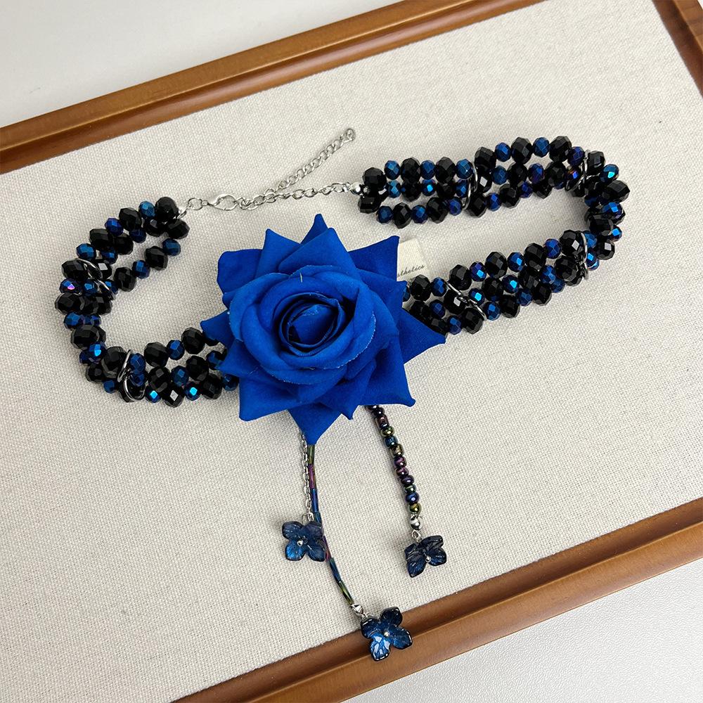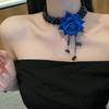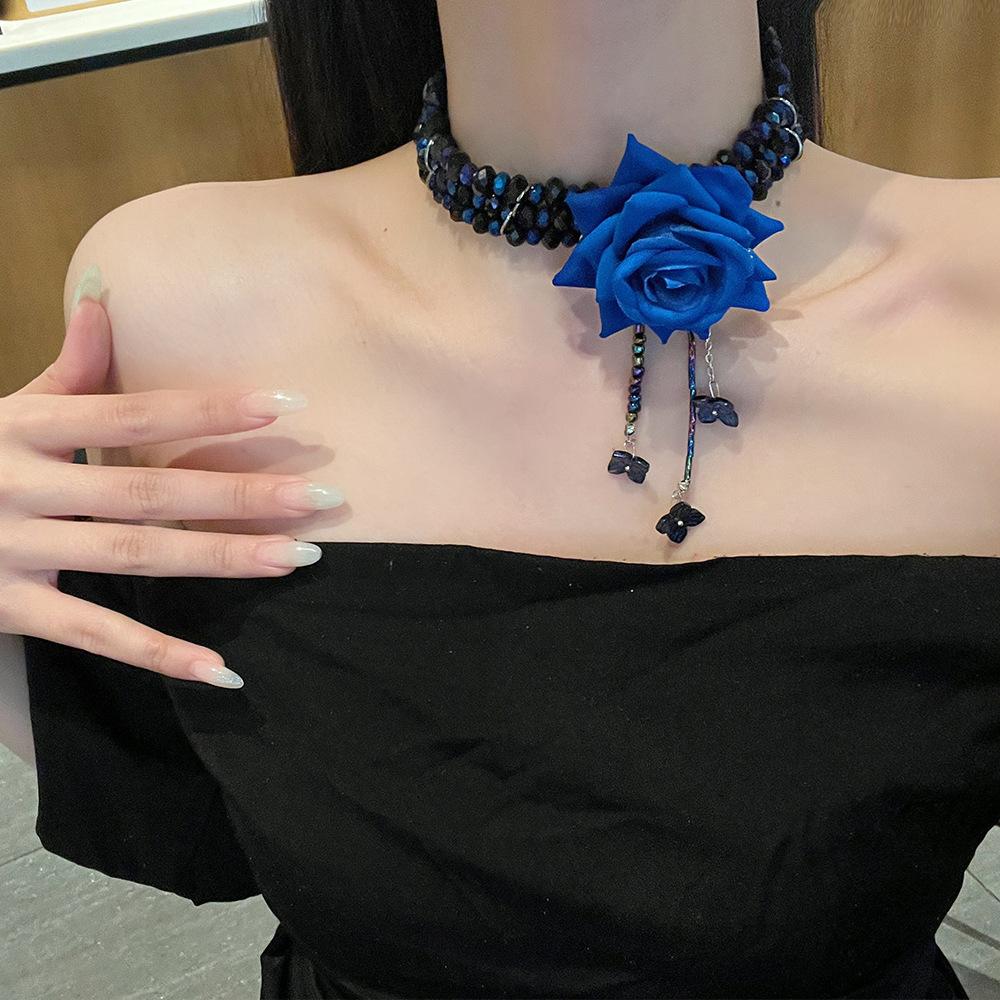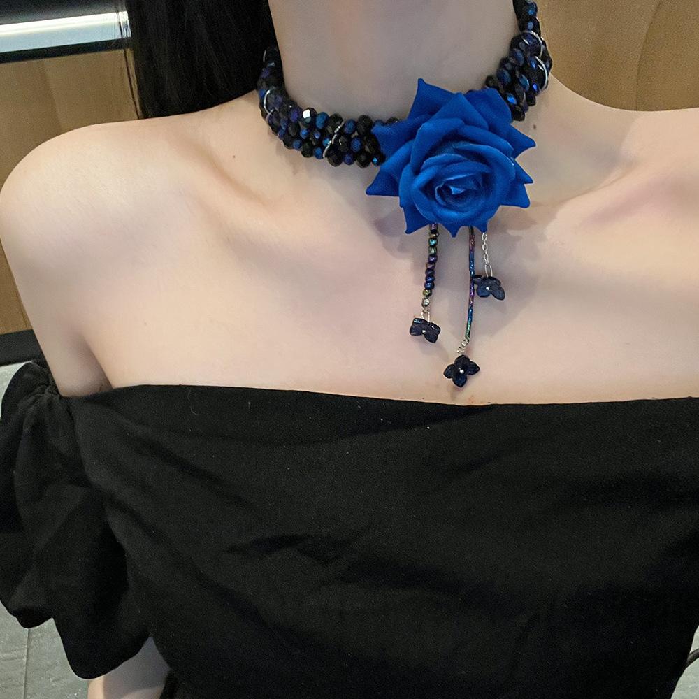 Azul Oscuro Nuevo Collar Flor Vintage Rosa Borla Versátil Collar de Moda Anti-cristal Cadena Clavícula Collar para Mujer