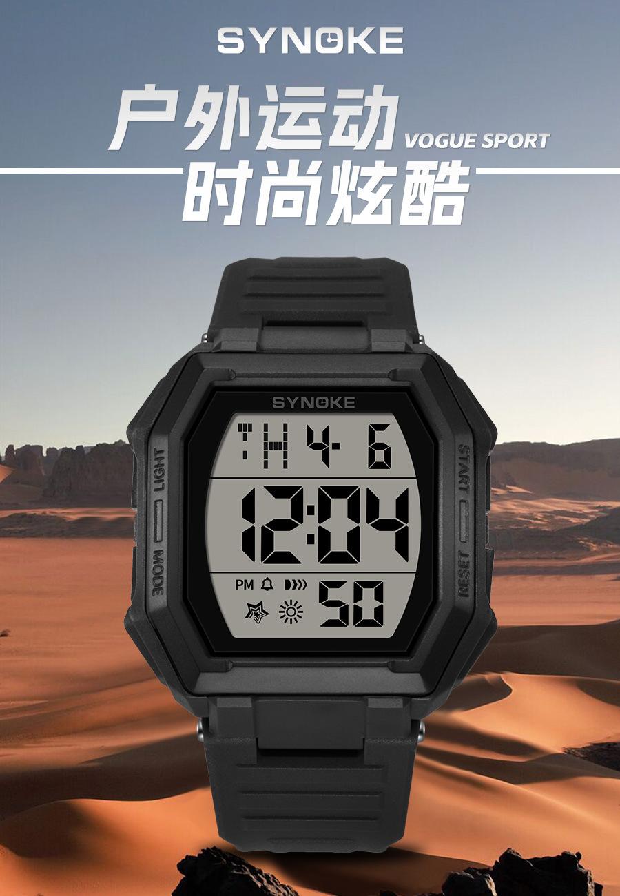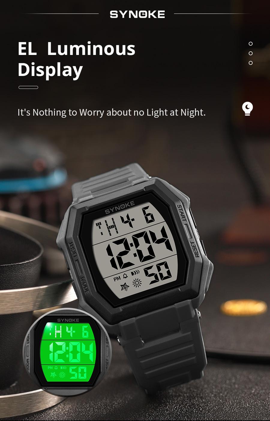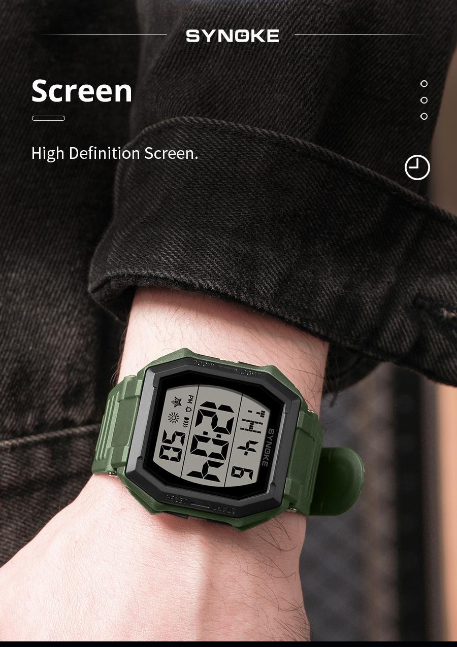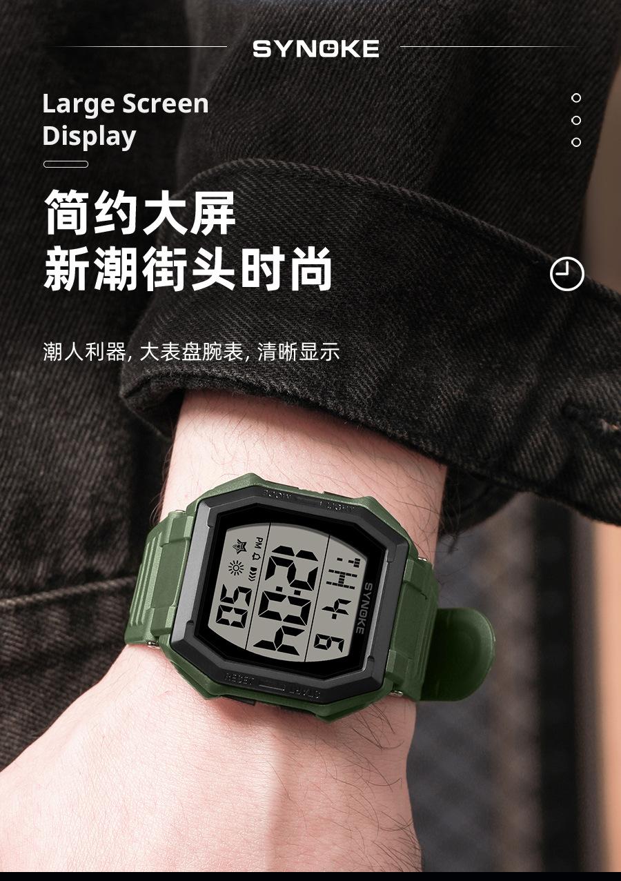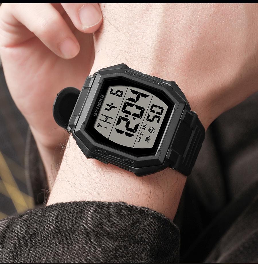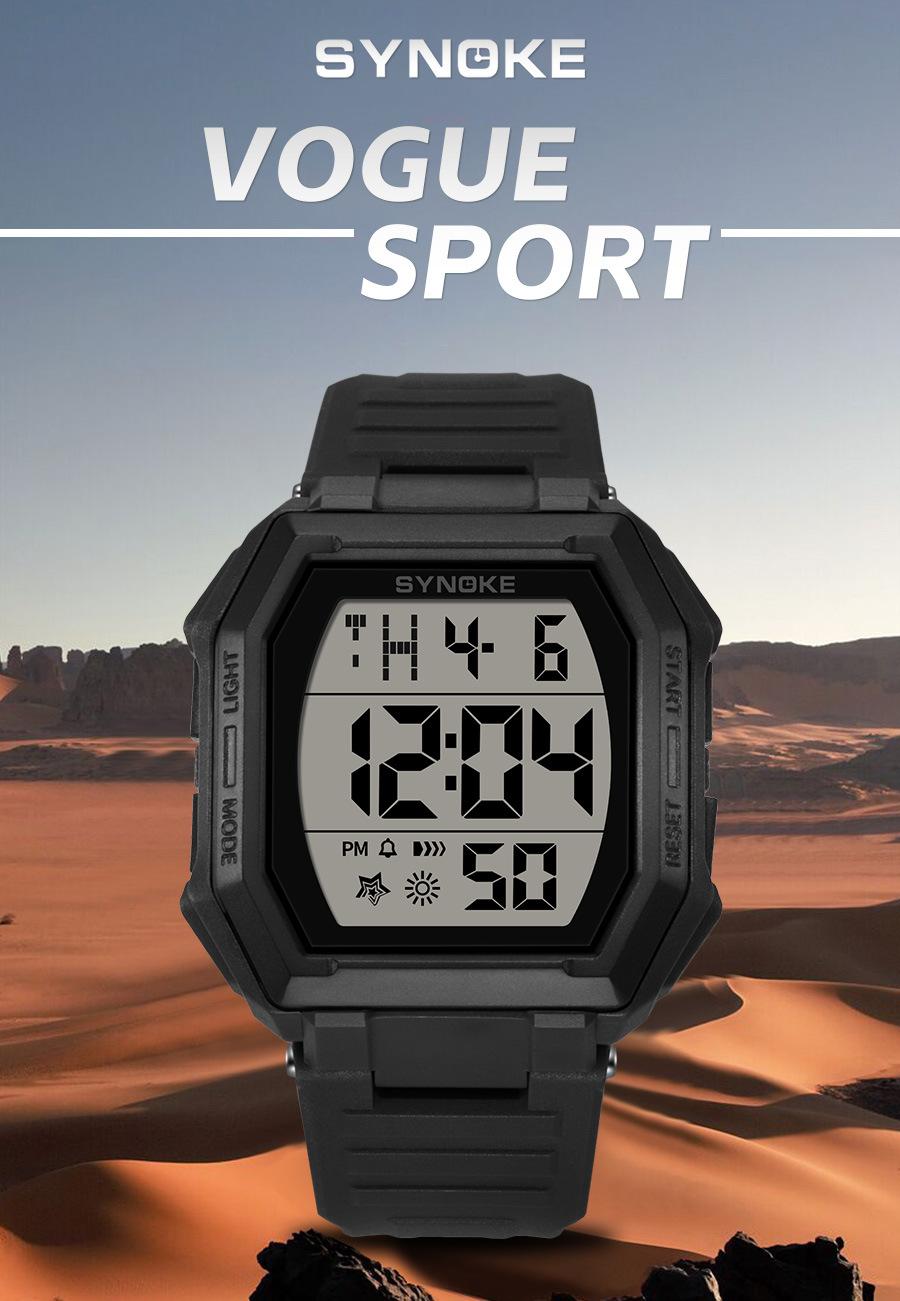 SYNOKE Hora y Hora Nueva Pantalla Grande Tendencia de Moda Reloj Electrónico Deportivo para Hombre Estudiante Multifuncional Resistente al Agua
