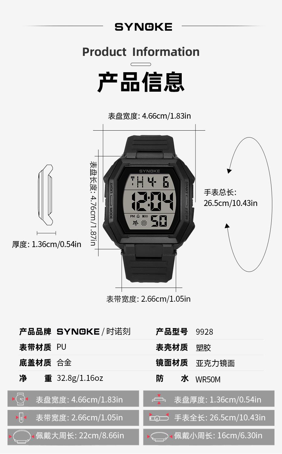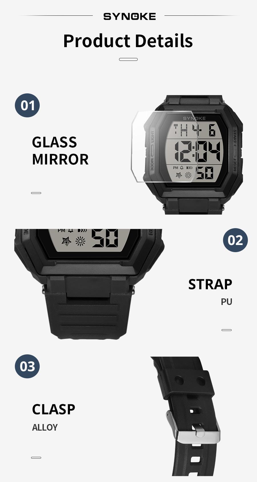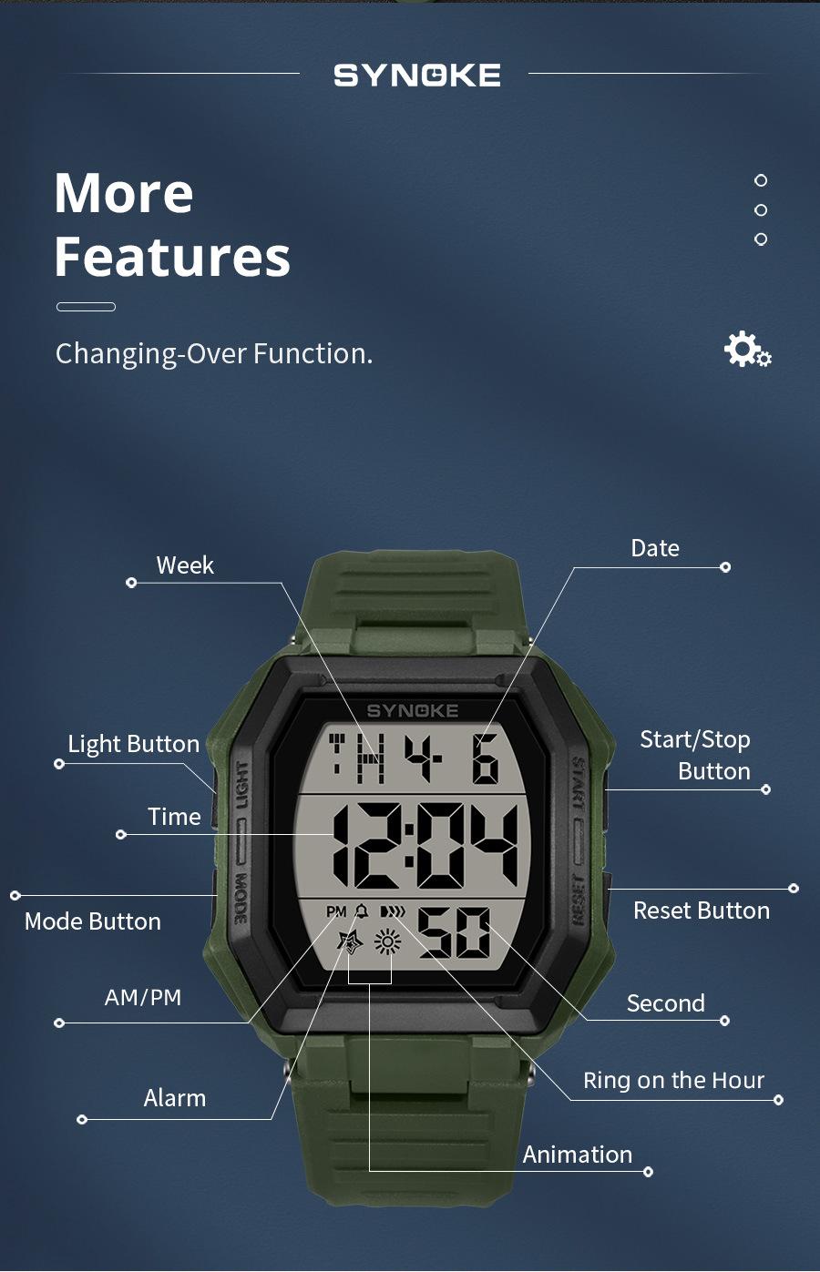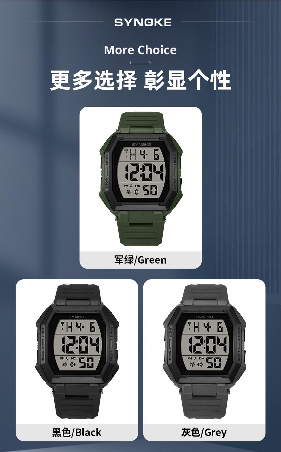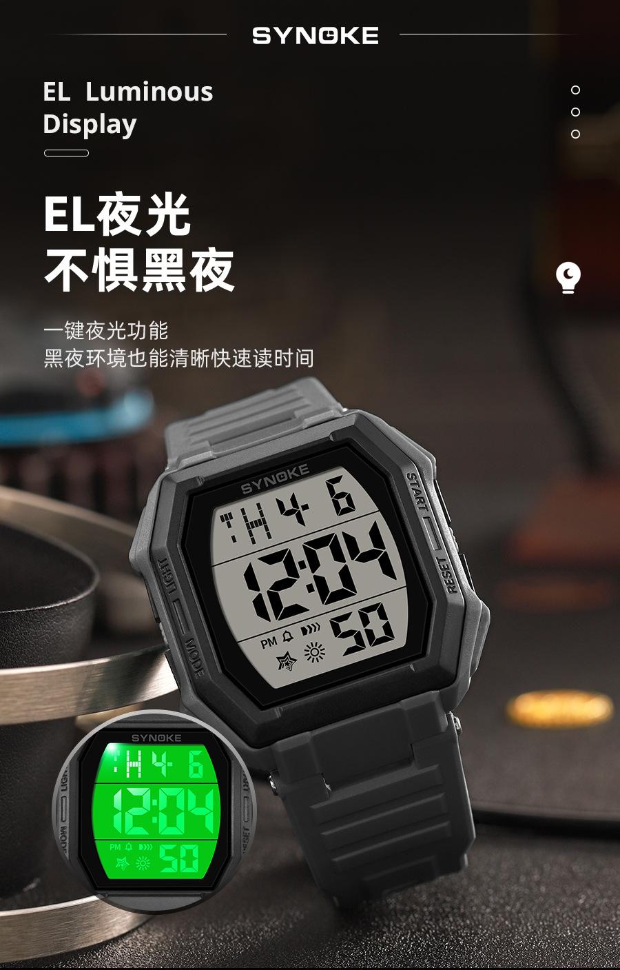 SYNOKE Hora y Hora Nueva Pantalla Grande Tendencia de Moda Reloj Electrónico Deportivo para Hombre Estudiante Multifuncional Resistente al Agua