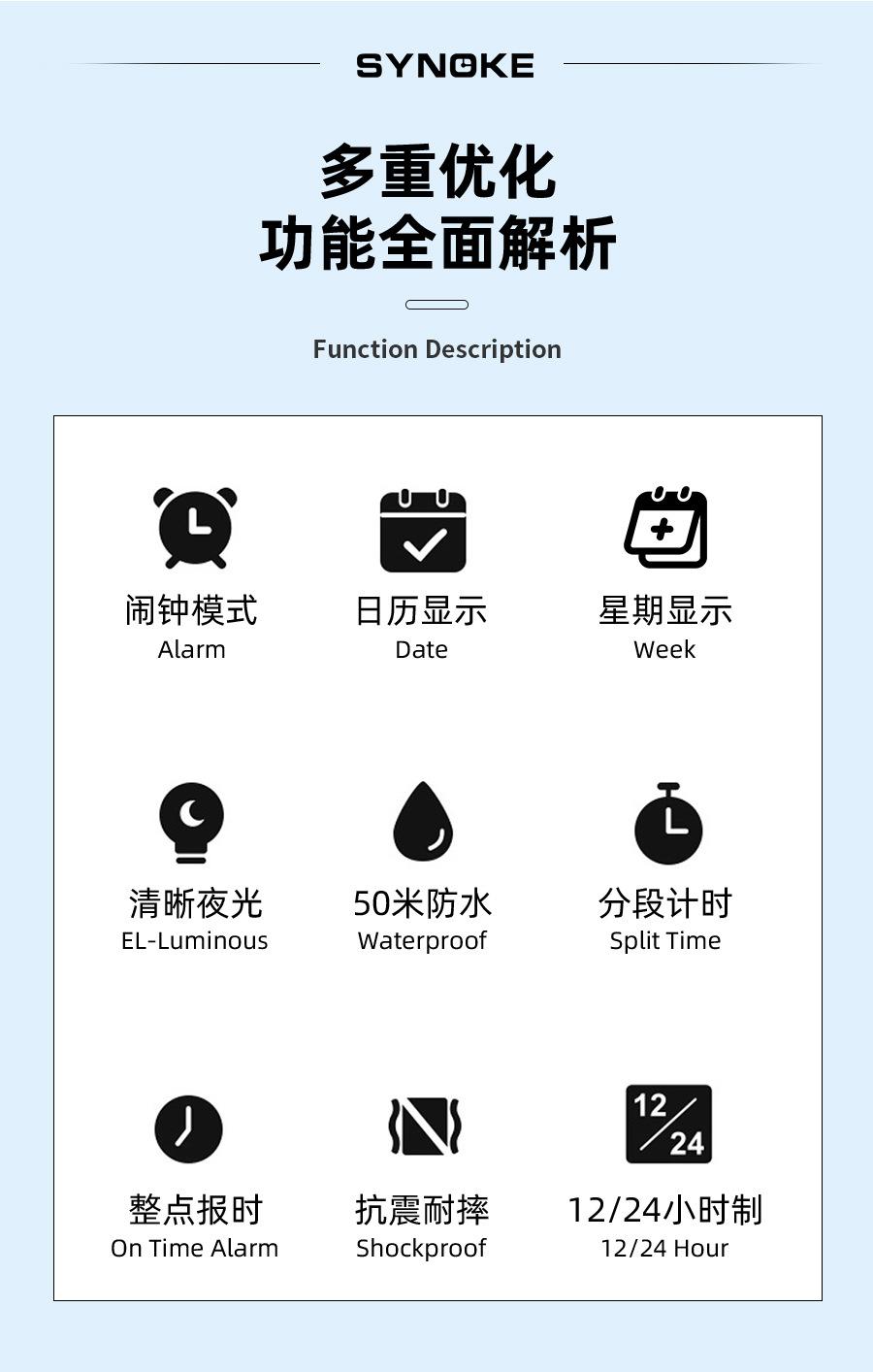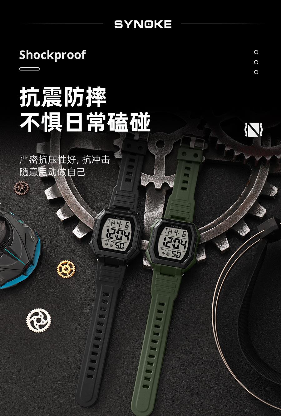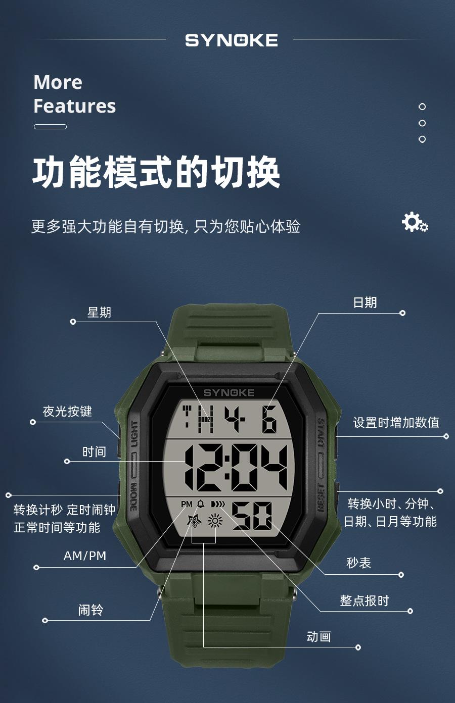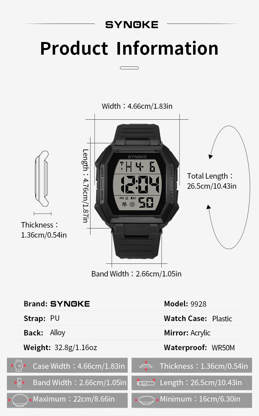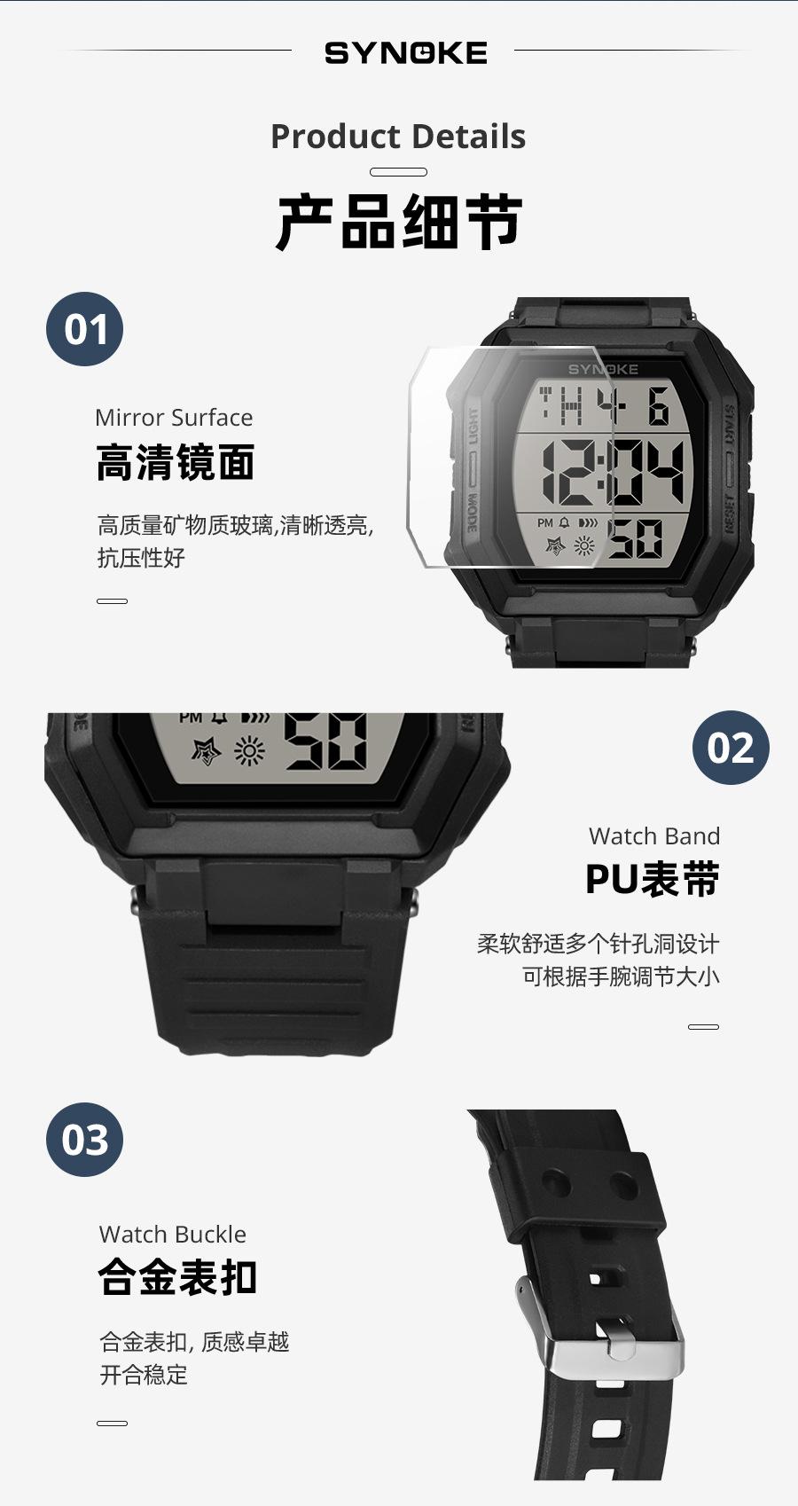 SYNOKE Hora y Hora Nueva Pantalla Grande Tendencia de Moda Reloj Electrónico Deportivo para Hombre Estudiante Multifuncional Resistente al Agua