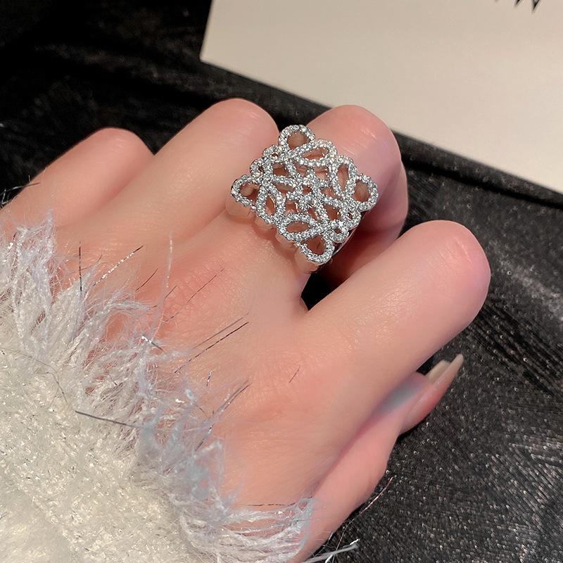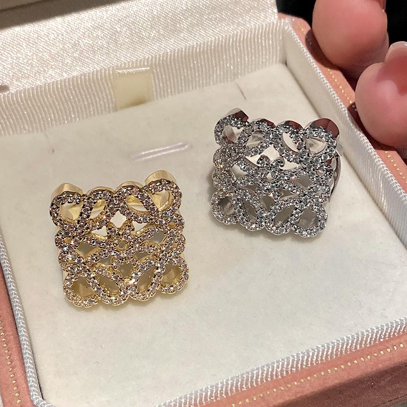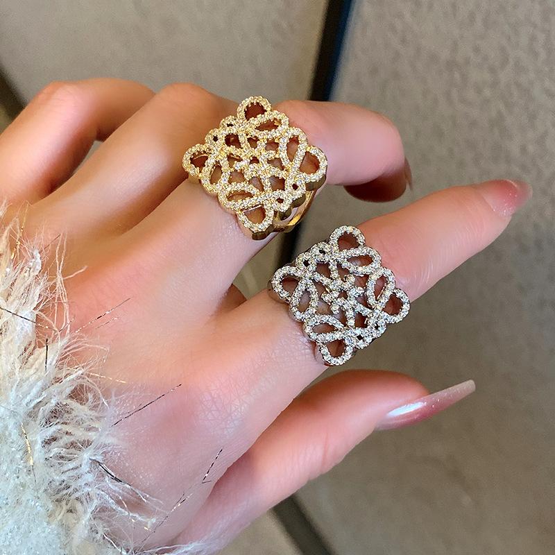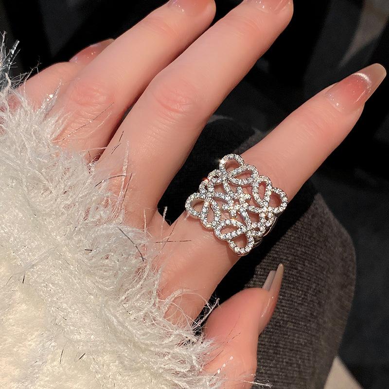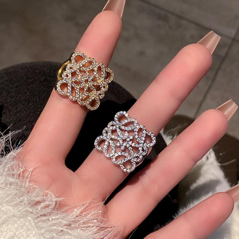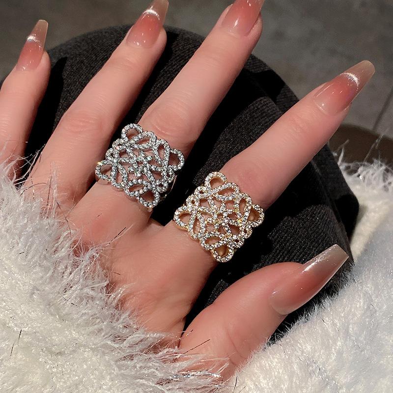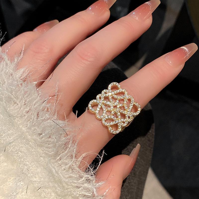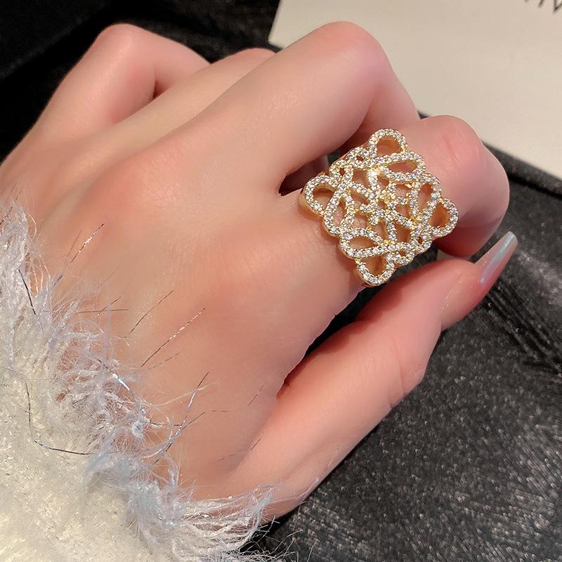 Anillo de Diamante Geométrico Hueco de Metal Europeo y Americano Ins Anillo de Moda Versátil de Lujo Ligero de Alta Gama