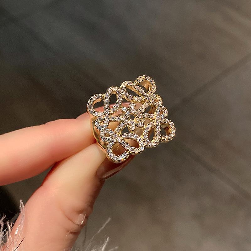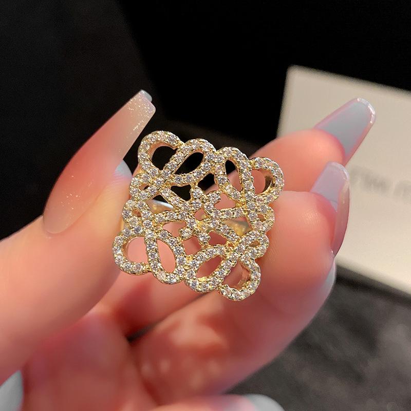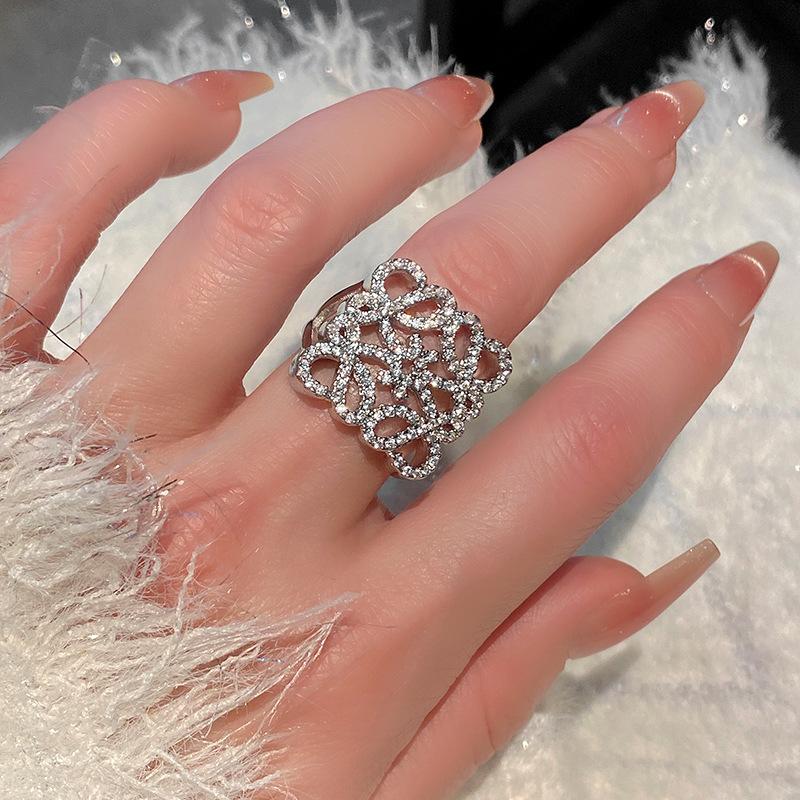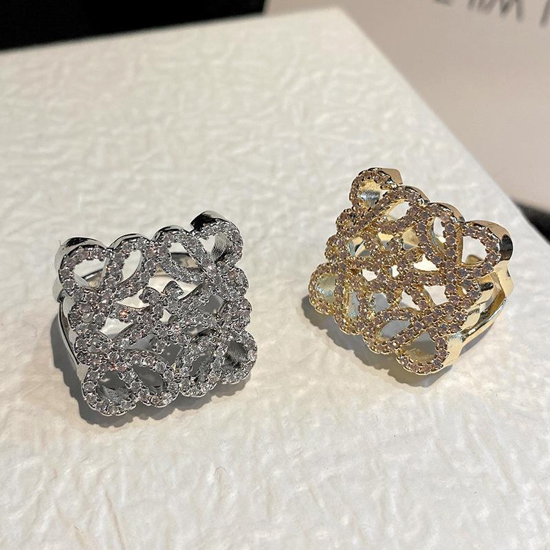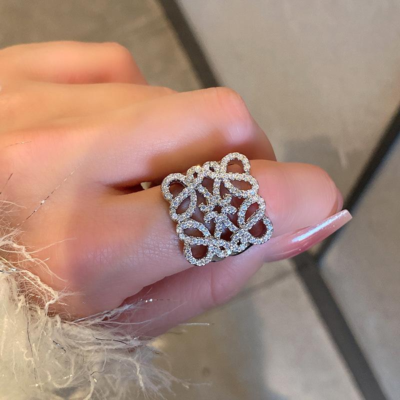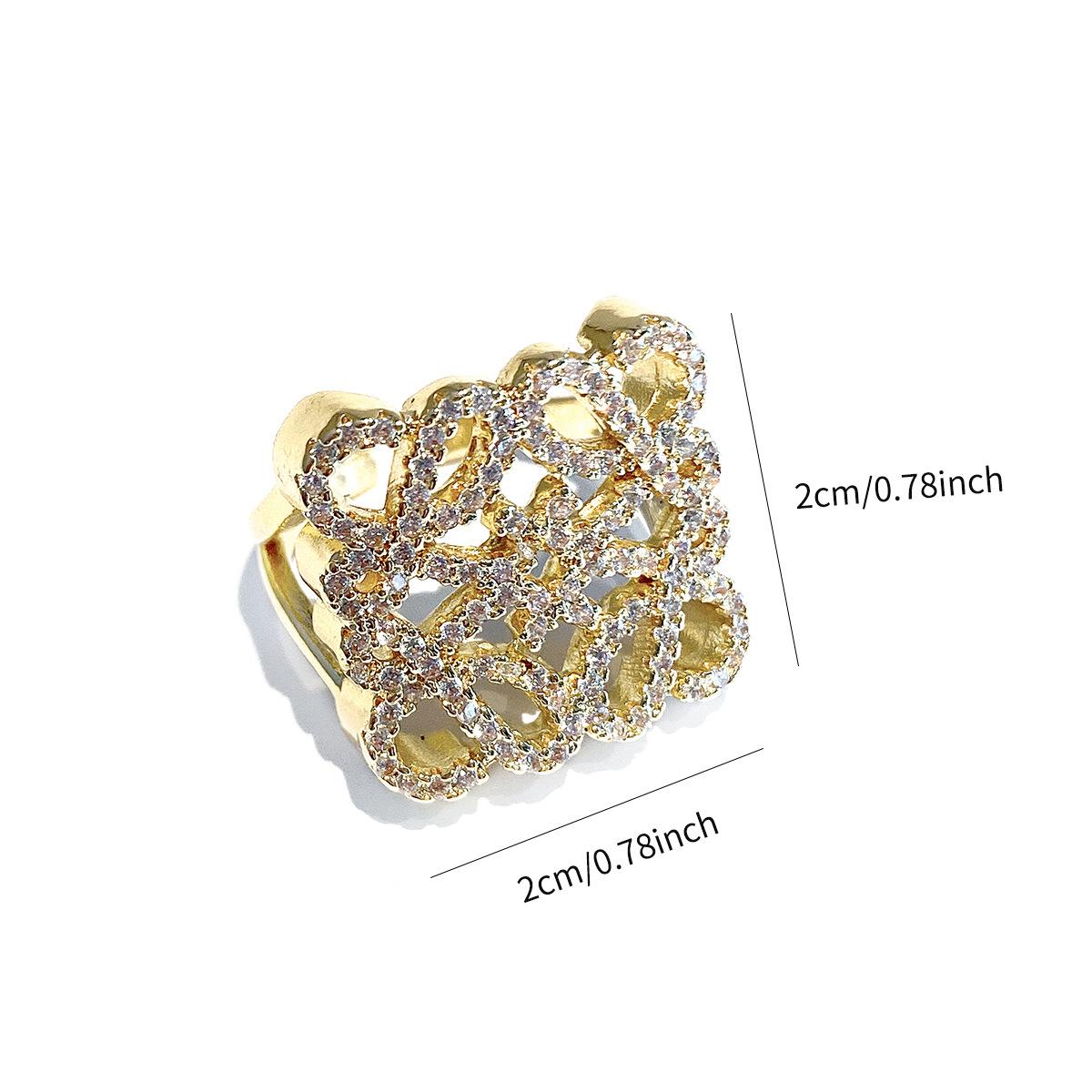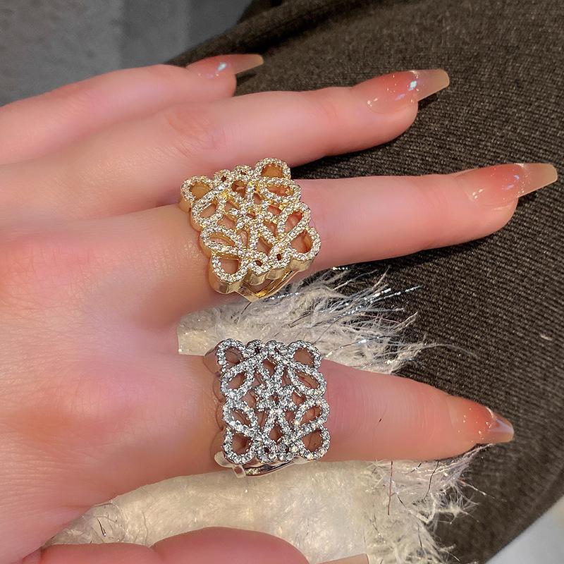 Anillo de Diamante Geométrico Hueco de Metal Europeo y Americano Ins Anillo de Moda Versátil de Lujo Ligero de Alta Gama
