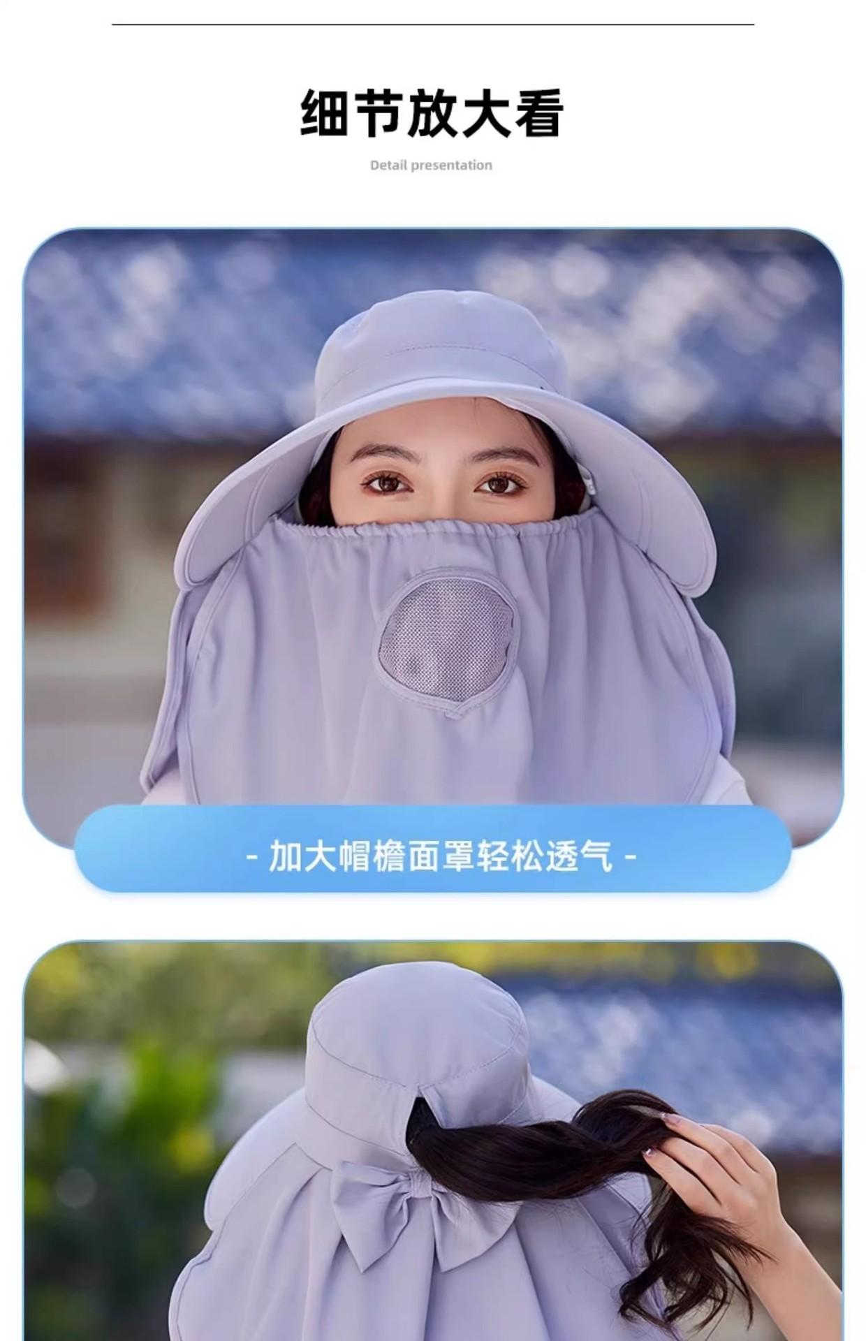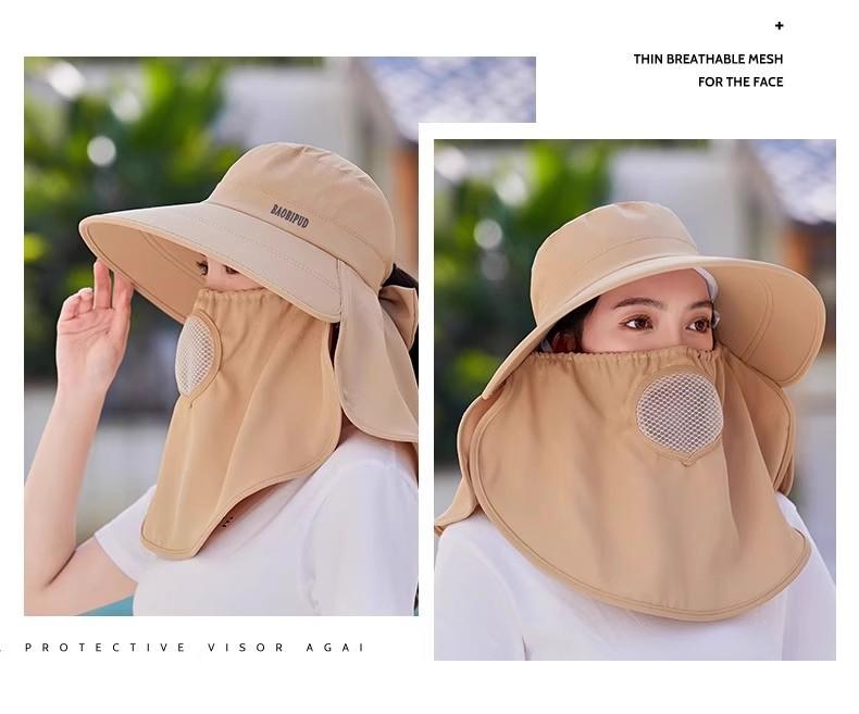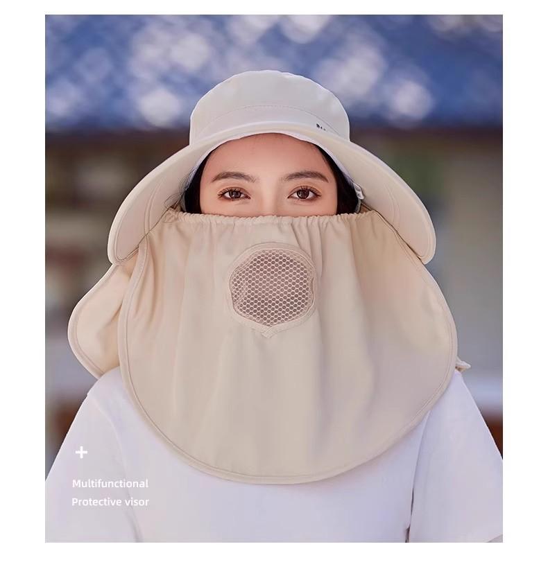 Sombrero de Nuevo Estilo Sombrero Protector Solar para Mujer UV Ala Grande Transpirable Mascarilla Facial Completa Sombrero para el Sol Recolección de Té Sombrero para el Sol para Exteriores
