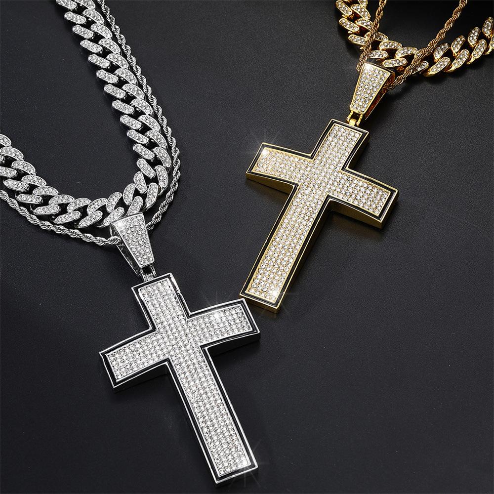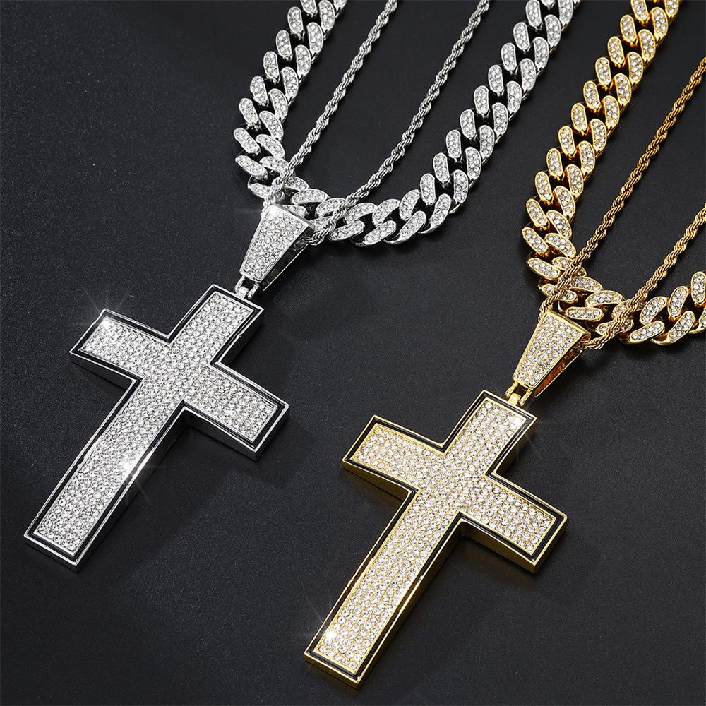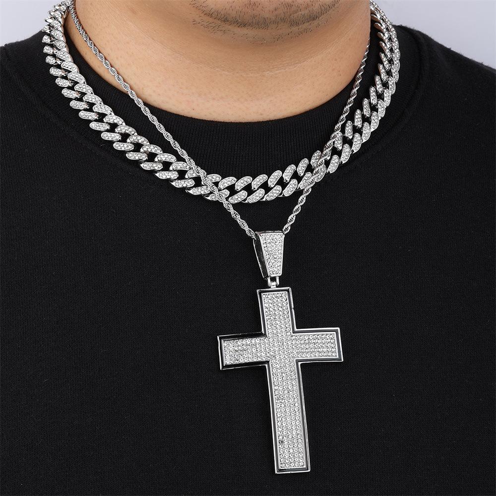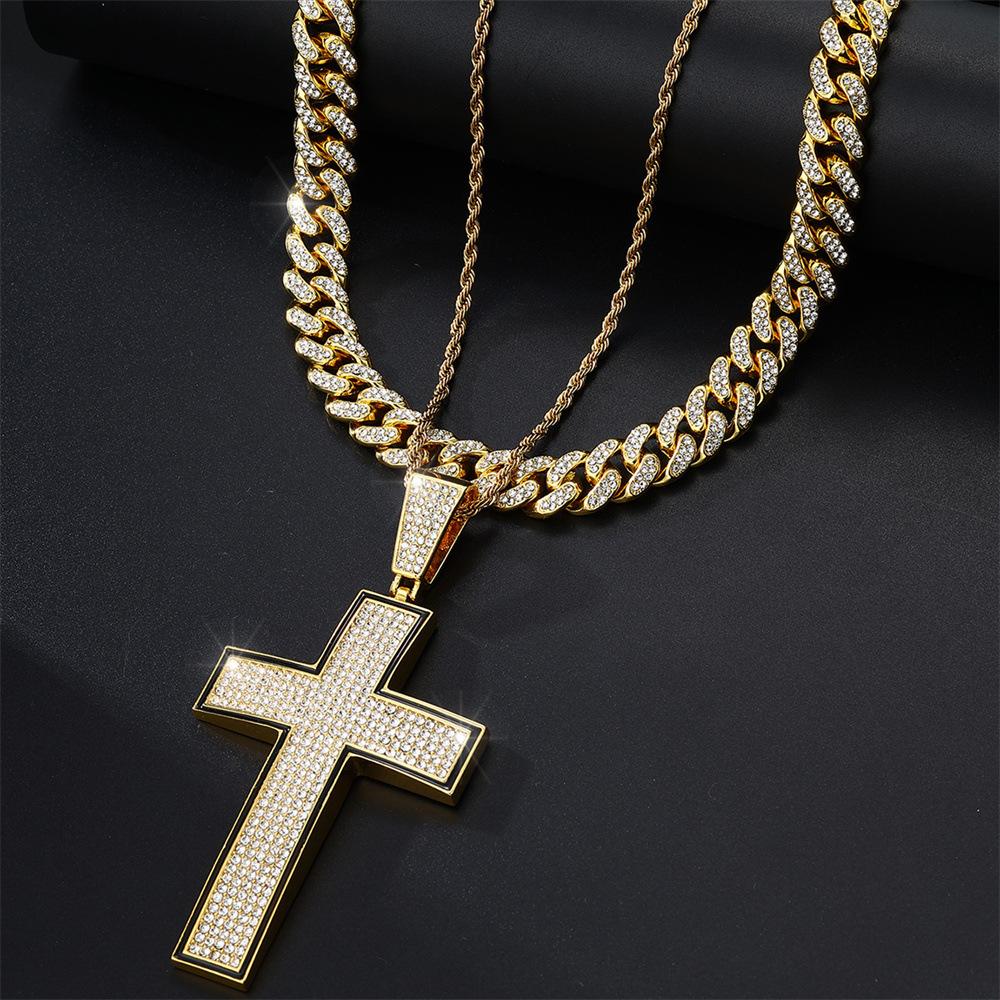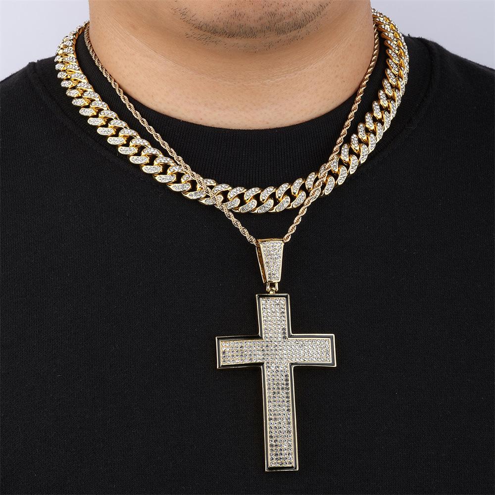 Colgante de cruz de diamantes con cadena cubana para hombre, estilo hip hop europeo y americano, accesorios de moda, joyería hip hop