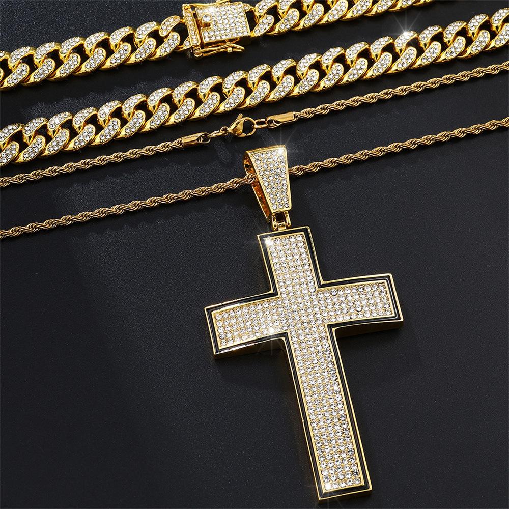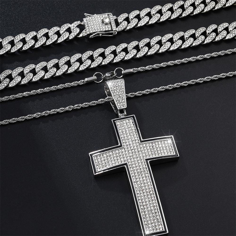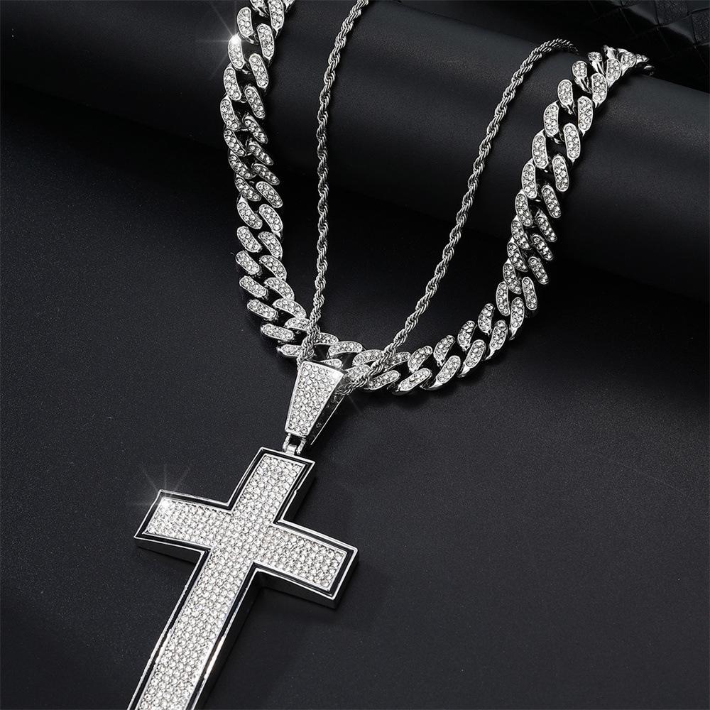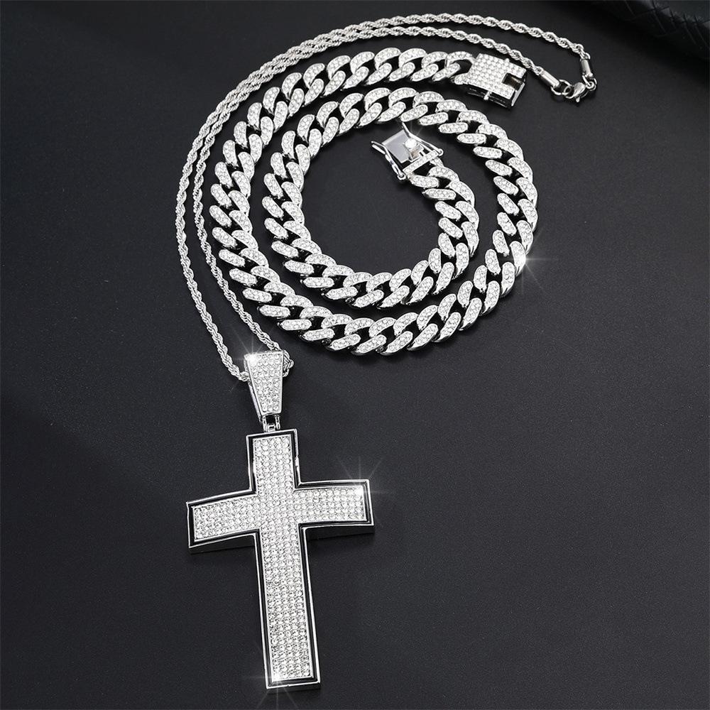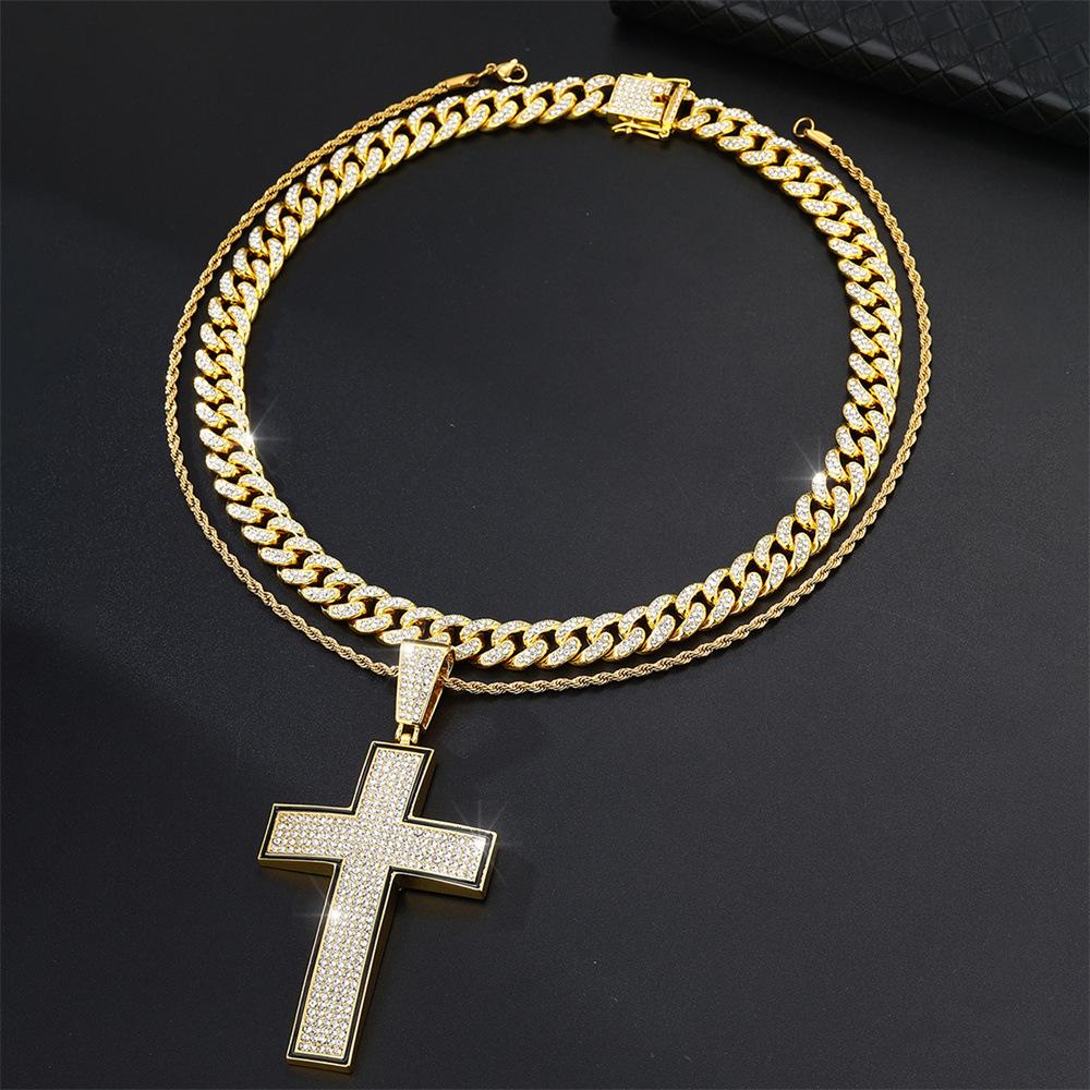 Colgante de cruz de diamantes con cadena cubana para hombre, estilo hip hop europeo y americano, accesorios de moda, joyería hip hop