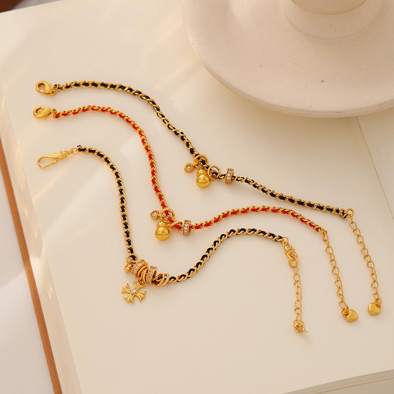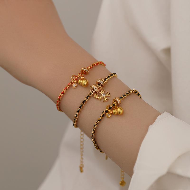 Nueva Pulsera de Cuerda Roja Trenzada de Circonita de Lujo Accesible, Moderna y Exquisita para Mujer, Retro, Versátil, Elegante, Pulsera de Cruz