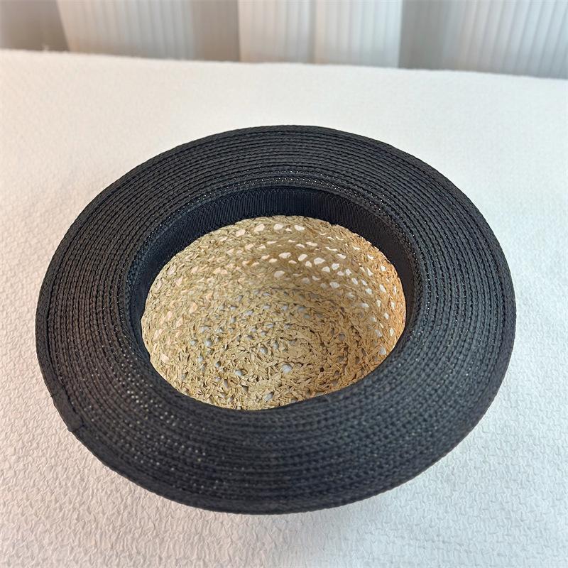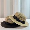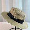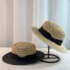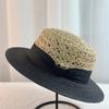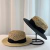 Sombrero de paja de verano para mujer, sombrero de playa con protección solar, sombrero de copa, sombrero parasol retro francés, sombrero de copa plana hueca de rafia.