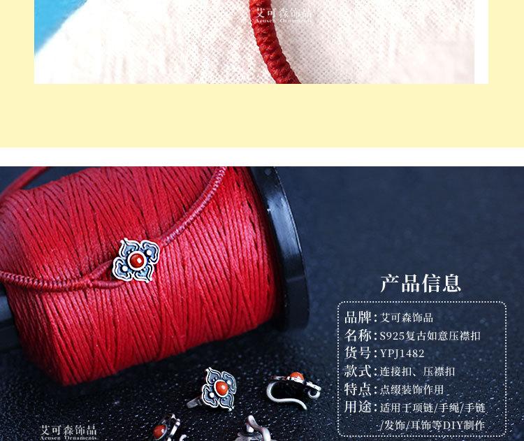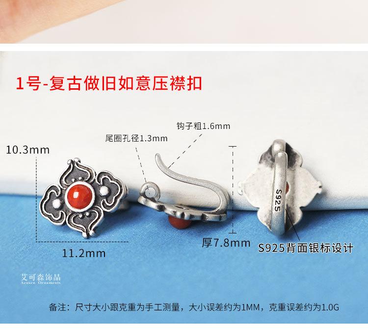 Plata Esterlina S925 Hebilla de Solapa Prensada Ruyi Rojo del Sur Hebilla de Conexión Accesorios Tejidos a Mano DIY Collar Pulsera