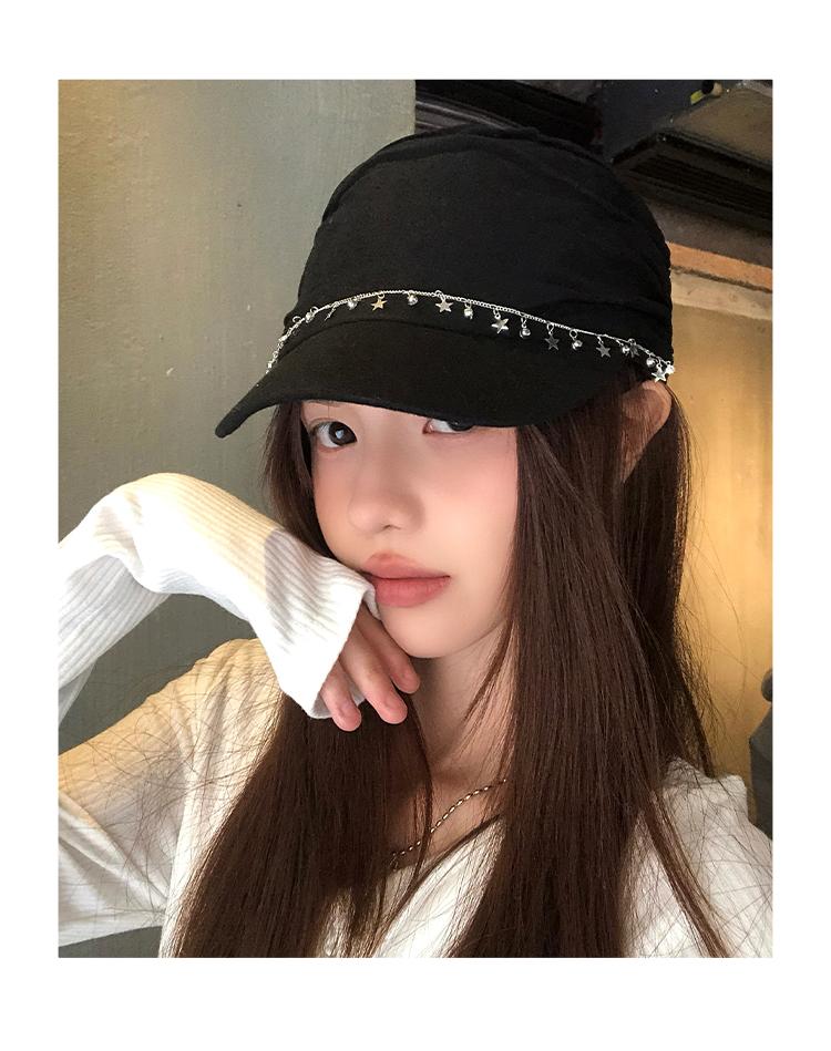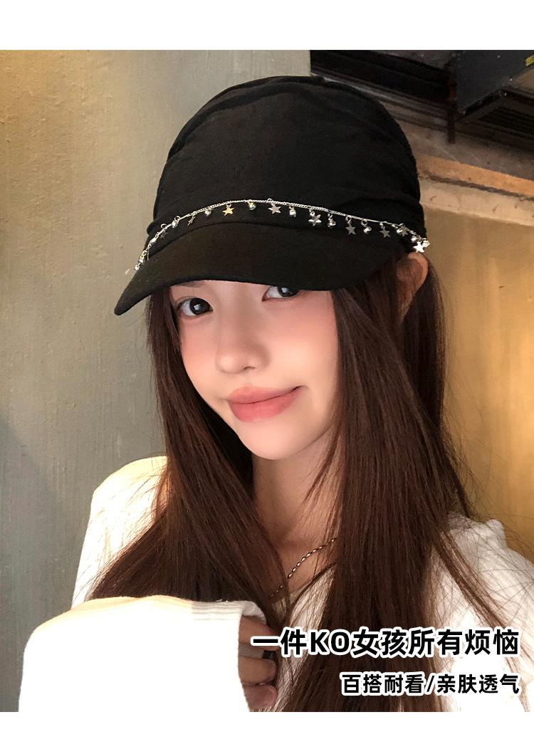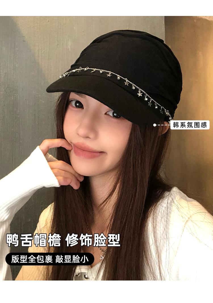 Boina negra estilo británico para mujer, primavera, estilo retro, estilo relajado, con lengüeta de pato hacia adelante, gorra pequeña que combina con todo y cara visible.