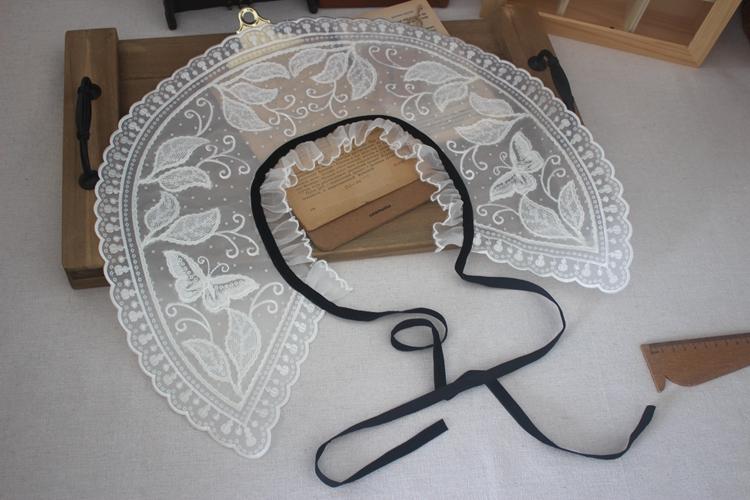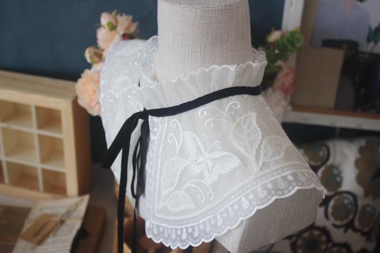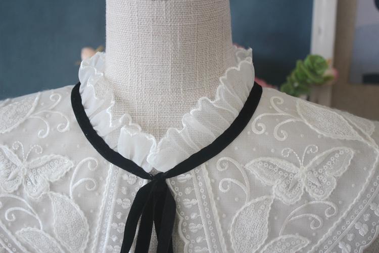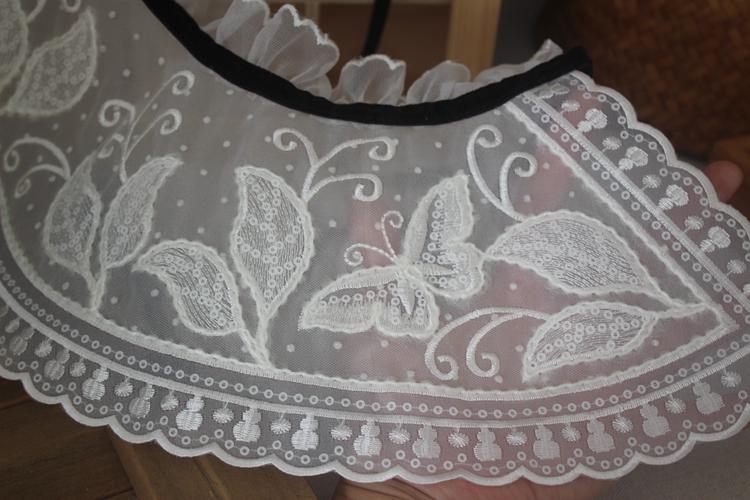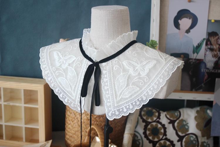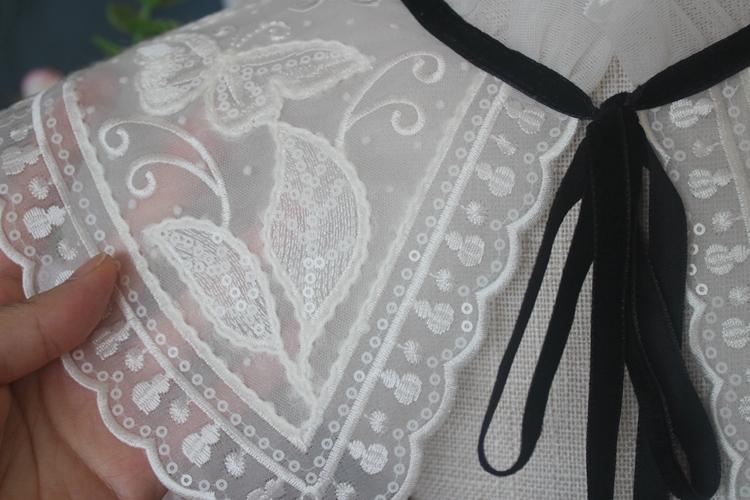Venta al por mayor Nuevo Encaje de Correa Negra con Cordones Blanco Bordado Moda Versátil Chal Cuello Falso Adorno de Encaje Accesorio de Cuello Decorativo