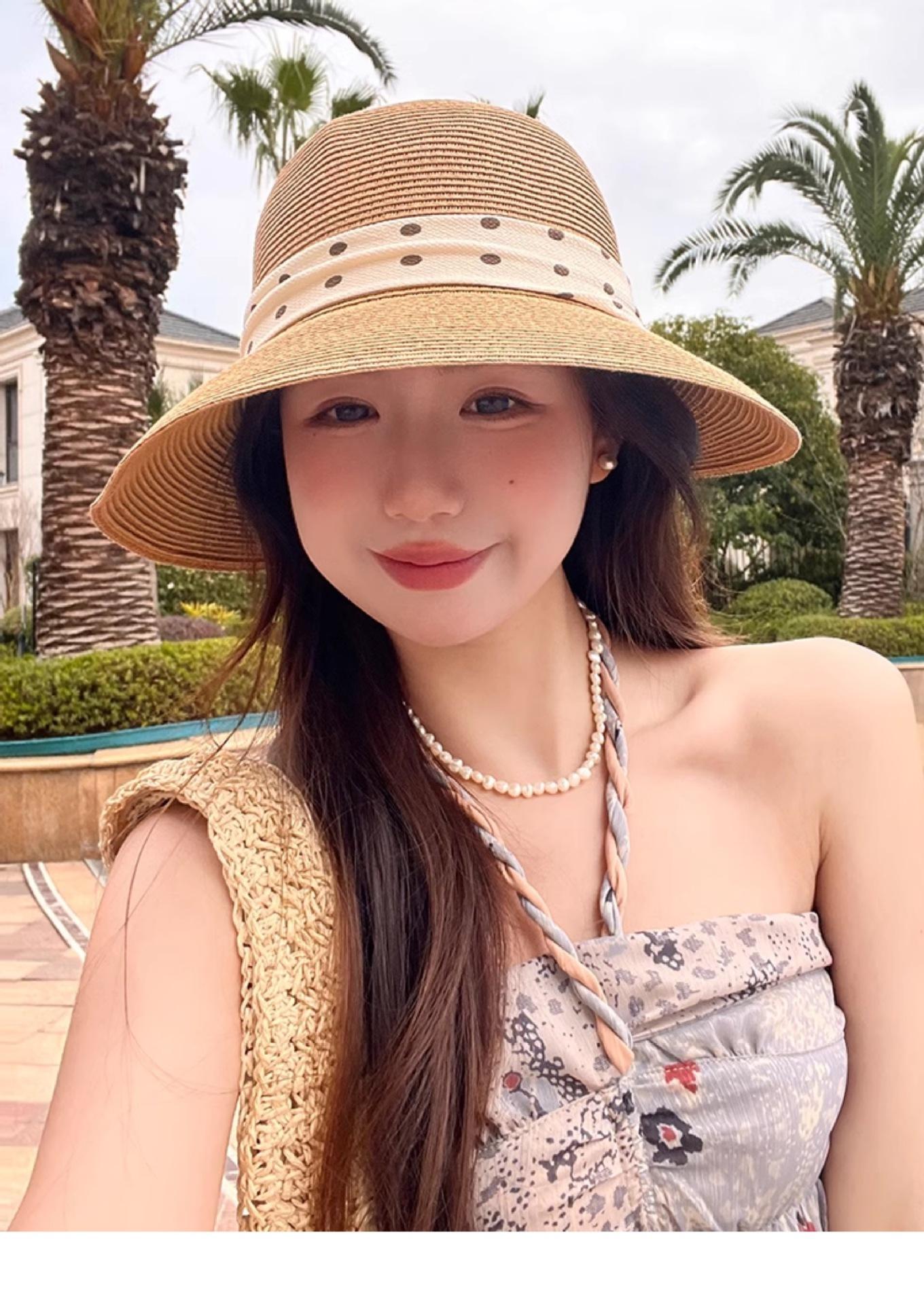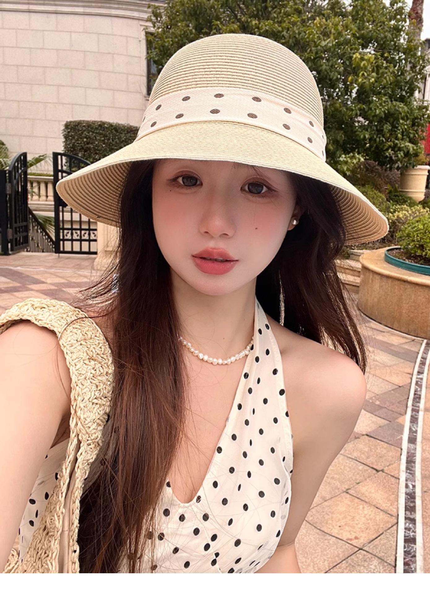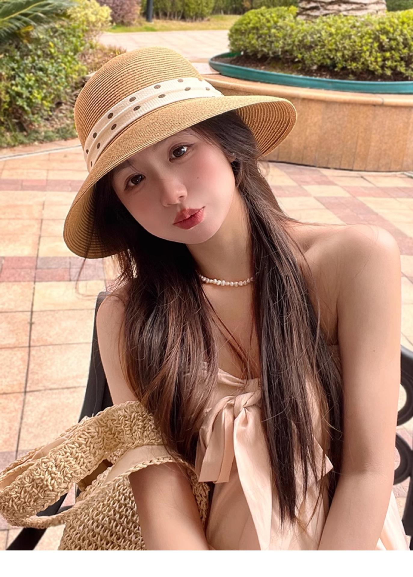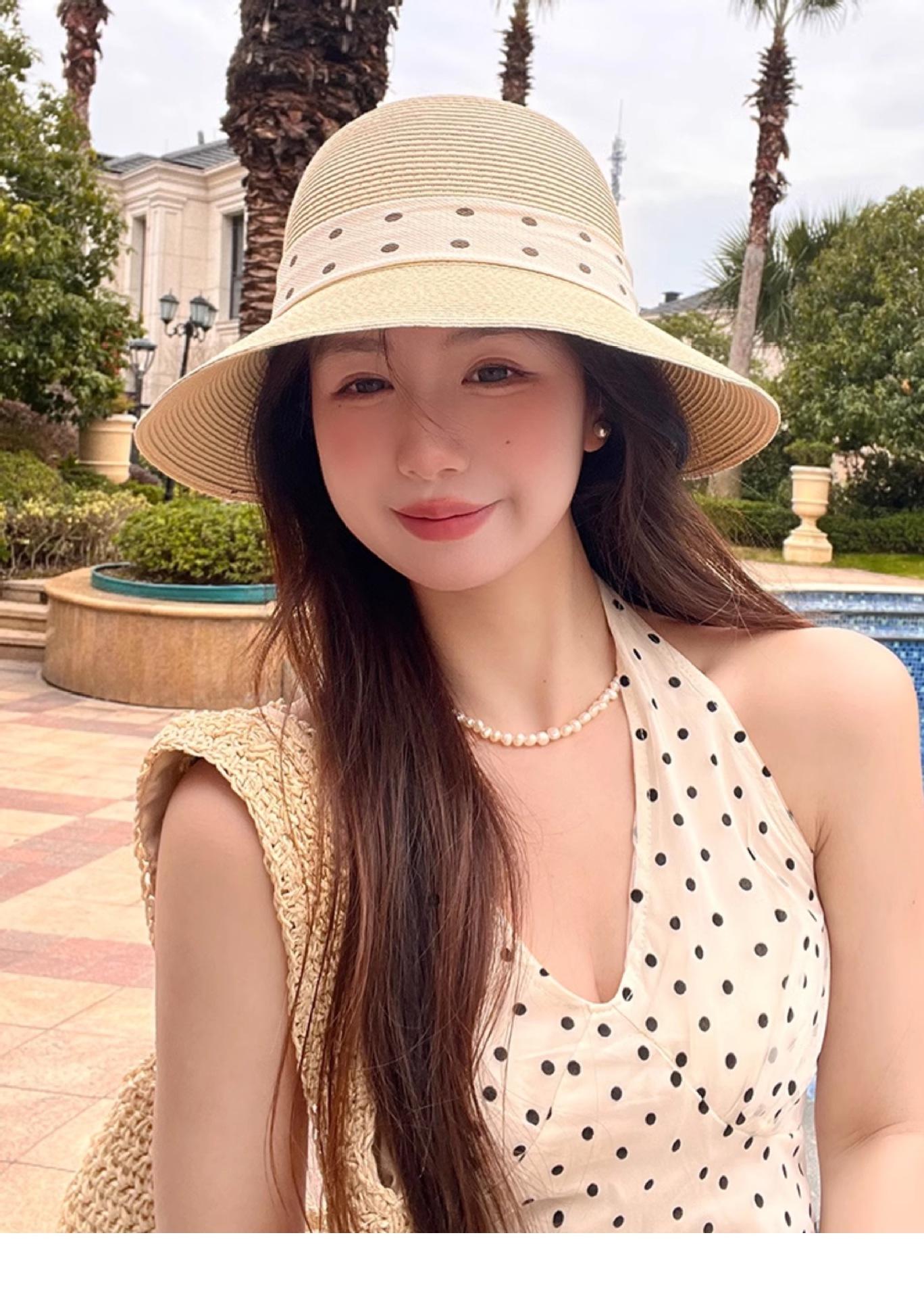 Apricot beige (polka dot back groove straw hat), Oatmeal color (polka dot back groove straw hat), Khaki (polka...