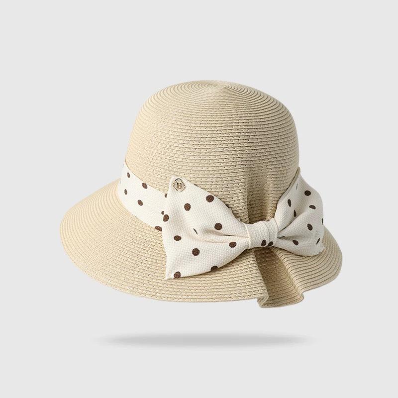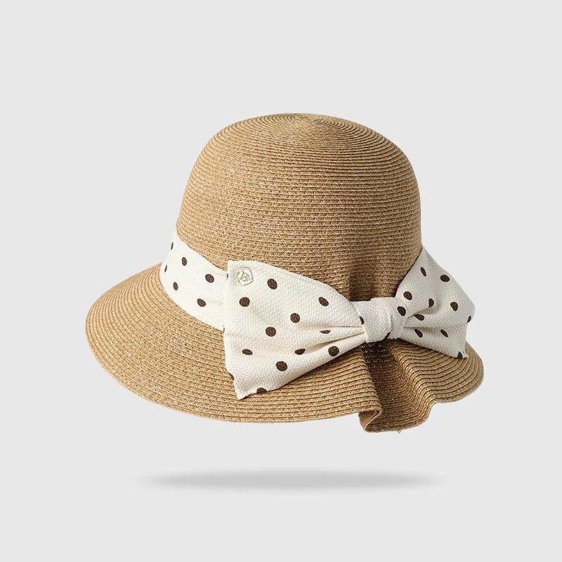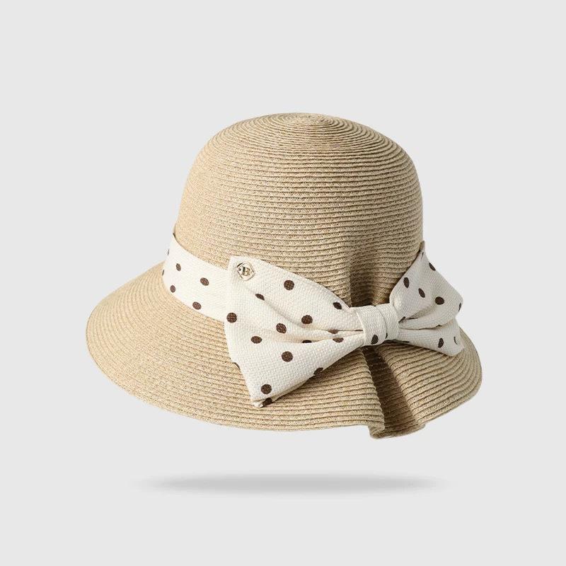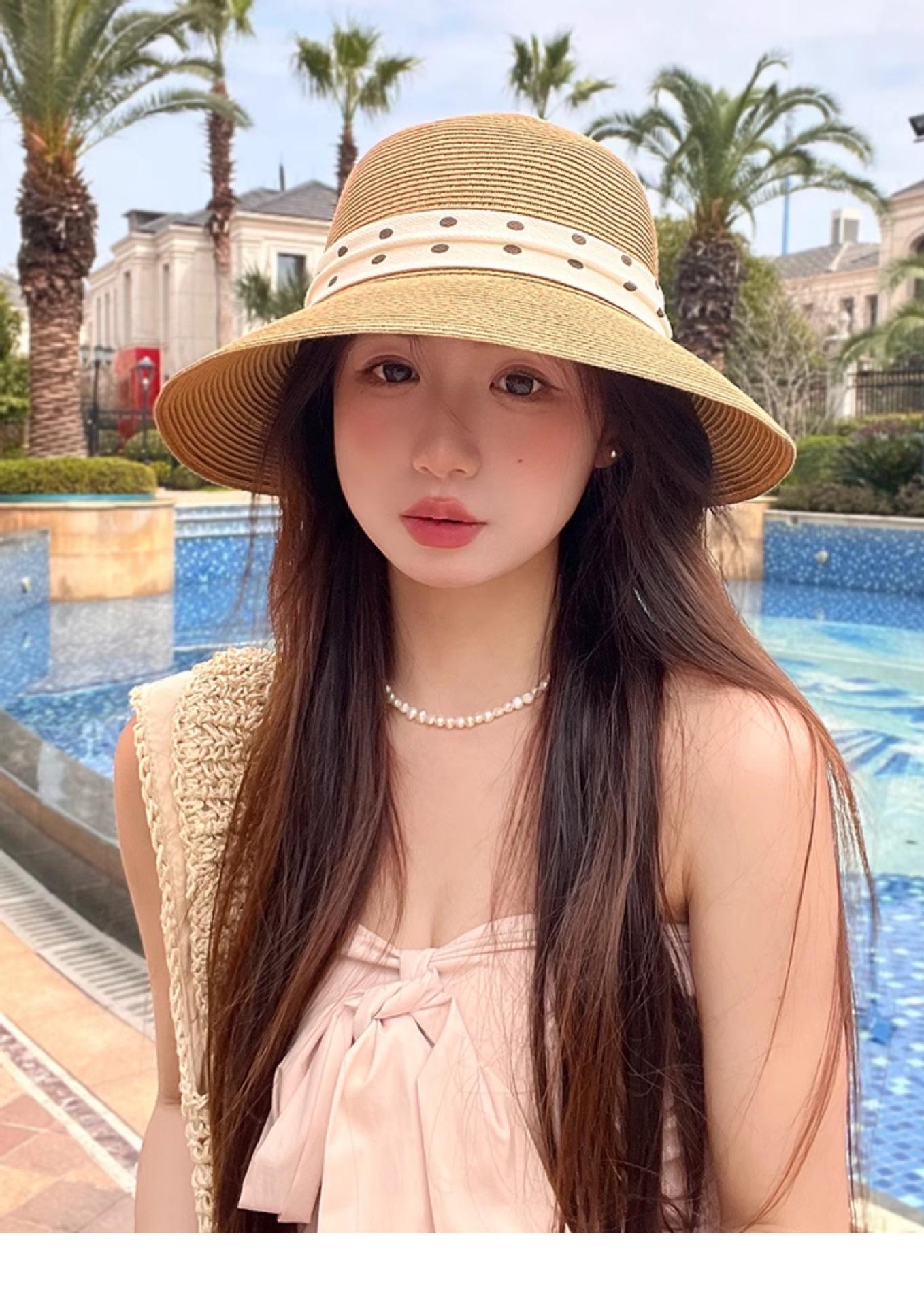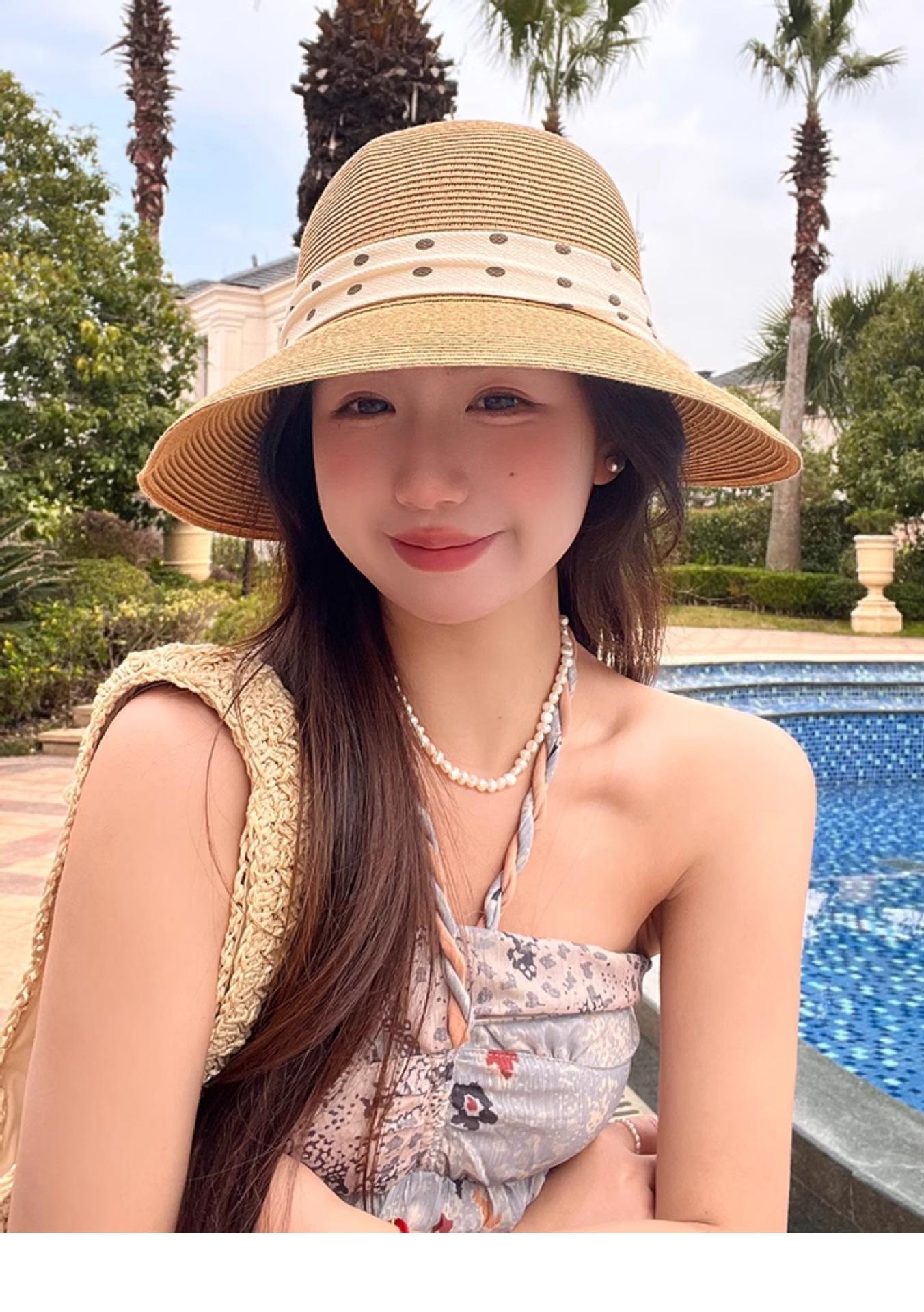 Apricot beige (polka dot back groove straw hat), Oatmeal color (polka dot back groove straw hat), Khaki (polka...