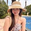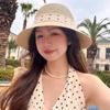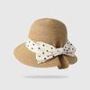 Sombrero de Paja Ola Coreana Lunares Lazo Sombrero de Pescador de Paja Sombrero de Sol de Verano para Viaje de Mujer Vacaciones en la Playa Sombrero para el Sol