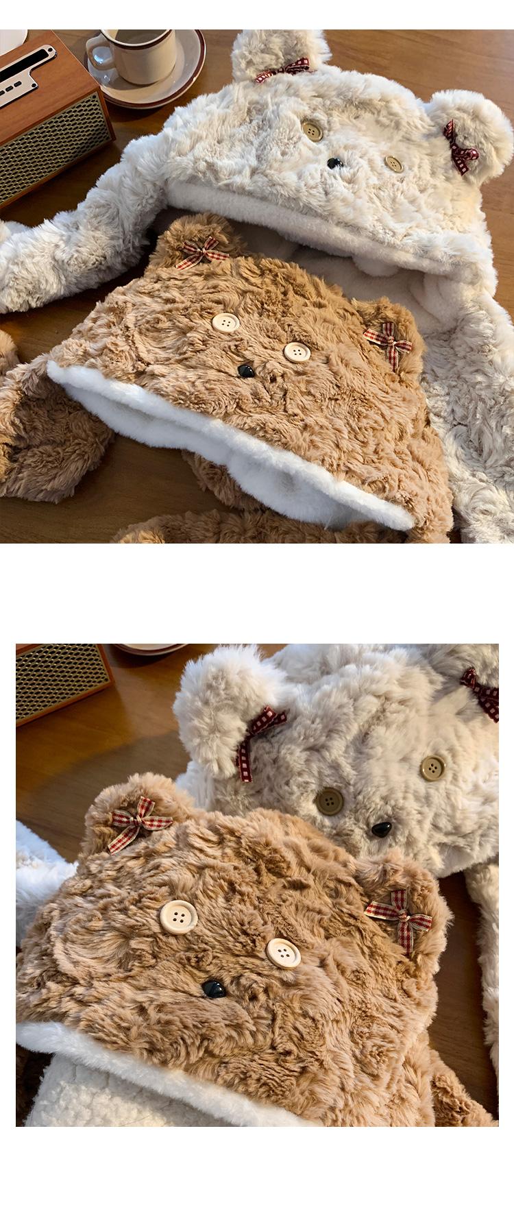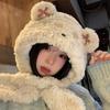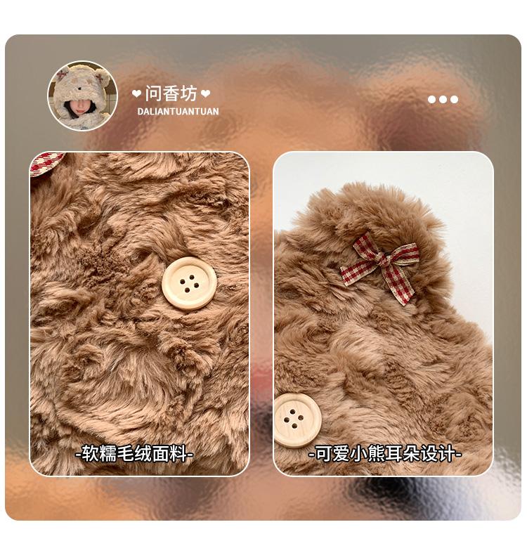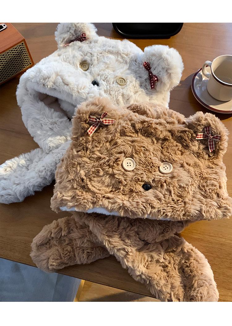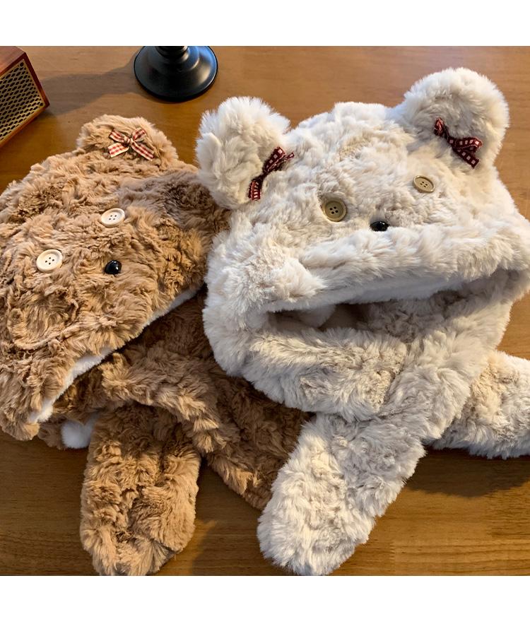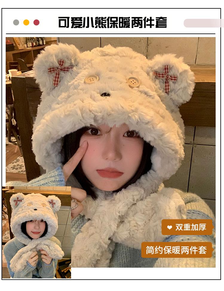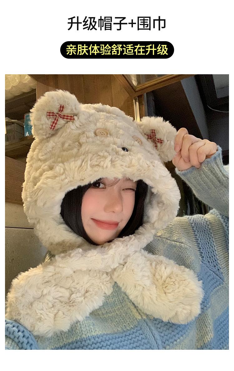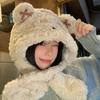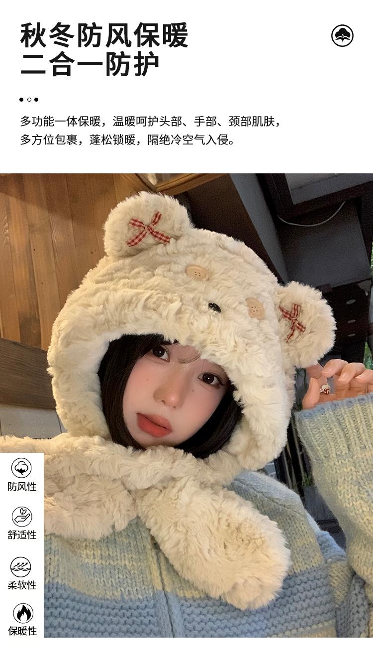 Lindo Gorro Peludo de Oso con Botones para Mujer 2024 Invierno Gorro Bufanda de Una Pieza Grueso Cálido Protección para las Orejas Sombrero Lei Feng